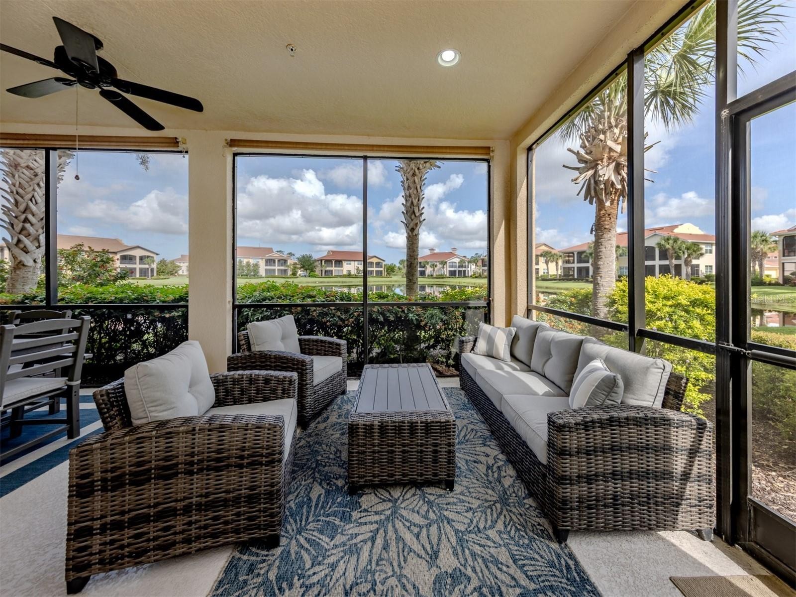 Come live the MAINTENANCE-FREE lifestyle in this beautifully designed Corsica model condo TURN- KEY FURNISHED Carriage home, perfect for everyday comfort and effortless entertaining. This spacious IMPECCABLY MAINTAINED 3 bedroom, 2-bath home offers 1,744 sq ft of open, airy living space with serene views of a tranquil pond and water feature. Start your mornings with coffee at the breakfast bar, in the café-style dining nook, or out on the screened lanai, all overlooking peaceful water vistas. Natural light fills the space through sliding glass doors from the great room, café, and owner’s suite, creating a warm and inviting atmosphere. The open kitchen features light cabinetry, granite countertops, stainless steel appliances, and tile flooring, flowing seamlessly into the great room and formal dining area—ideal for both relaxed living and entertaining. Tray ceilings in the formal dining room, owner’s suite, and second bedroom add a touch of elegance throughout. The owner’s suite includes a custom, walk-in closet, dual sinks, and a walk-in shower, offering a comfortable and private retreat. Upgrades include plantation shutters and crown molding. Located in the sought-after Venetian Golf and River Club in North Venice—just 10 minutes from Gulf beaches and shopping—this community offers a vibrant and active lifestyle. The River Club features fine dining with views of a 70-acre nature park along the Myakka River. Residents have access to a full fitness center, aerobics studio, lap pool, resort-style pool with cabana bar, six Har-Tru tennis courts, and newly added pickleball courts. Golfers will appreciate the scenic 18-hole championship course that winds through the lush surroundings. Just minutes from downtown Venice and the beaches, this light-filled condo offers more than just a home...it is a lifestyle. Come see it for yourself and take in the view.