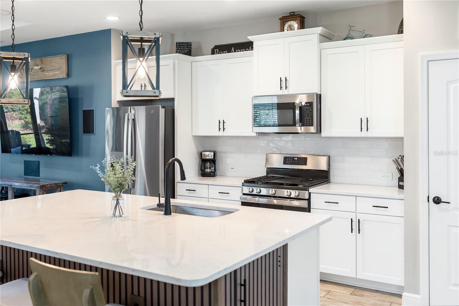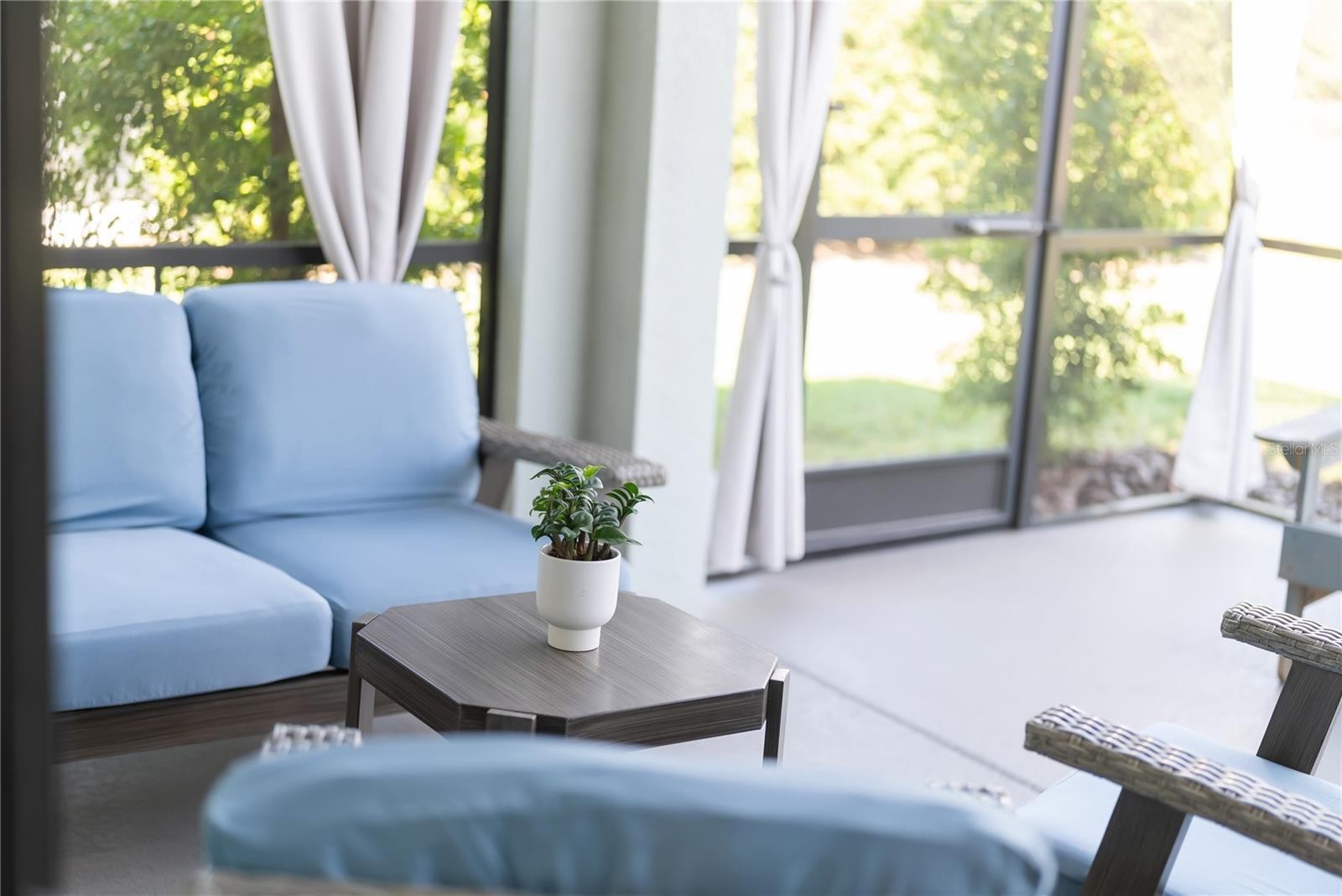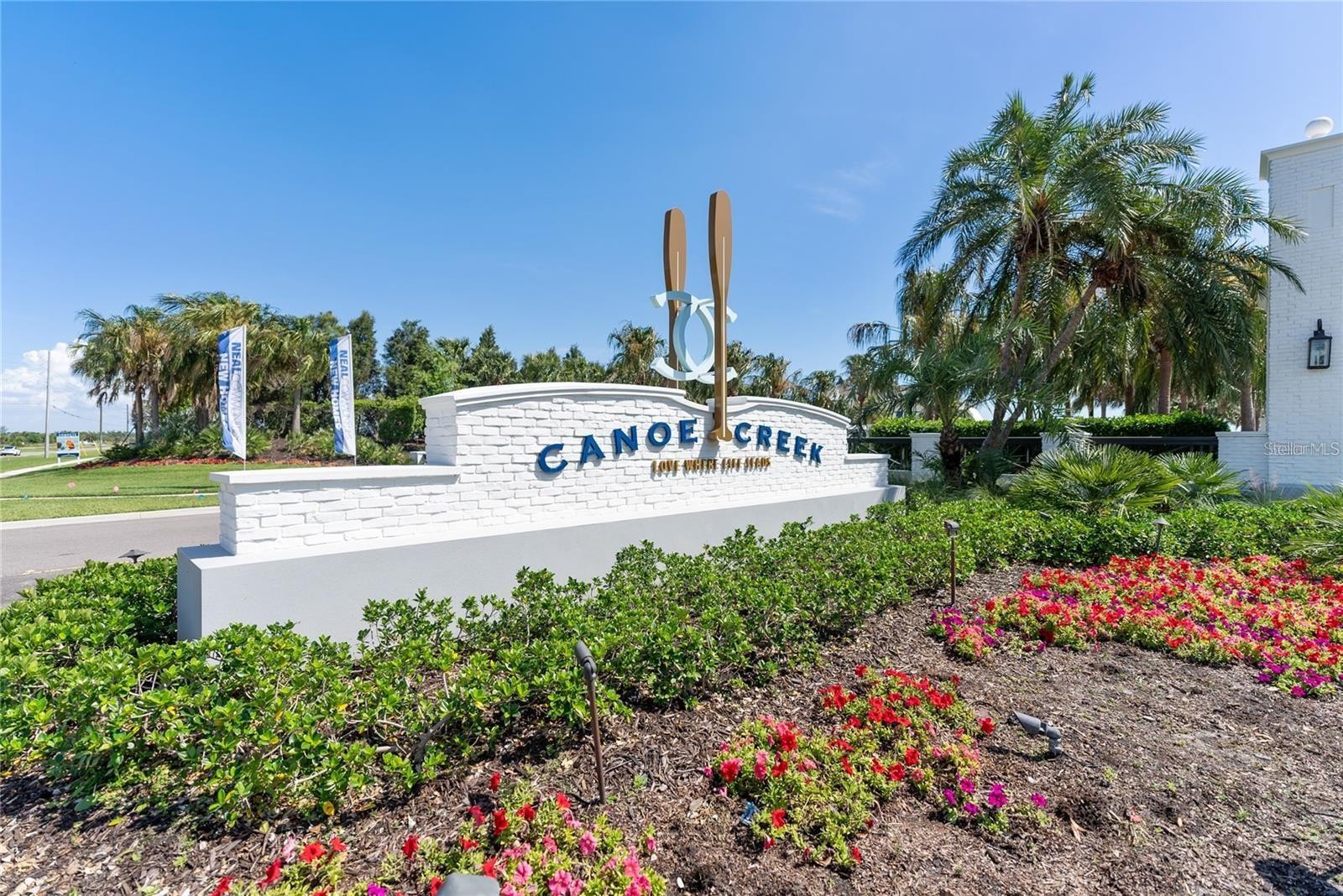 Experience refined coastal living in one of Parrishs most desirable communities. This beautifully designed residence in Canoe Creek welcomes you with bright natural light, an open concept layout, and luxurious designer finishes throughout. The expansive kitchen is a true showpiece, featuring an oversized quartz island, custom pendant lighting, upgraded cabinetry, stainless steel appliances, gas cooking, a stylish tile backsplash, and abundant storage. It opens gracefully into a spacious living area with tray ceilings, a custom accent wall, large sliders, and luxury surround sound speakers that enhance both everyday living and entertaining. The primary suite is a tranquil retreat with elegant double barn doors leading to a spa inspired ensuite, along with two generous walk in closets that provide exceptional storage and comfort. The versatile flex room is located separately from the bedrooms and offers amazing space for a home office, lounge, fitness area, playroom, or guest setup, allowing you to tailor the home to your lifestyle. Throughout the residence you will find wood look tile, neutral tones, and thoughtful designer touches that bring warmth and sophistication to every corner. The screened lanai offers soft breezes, privacy curtains, and peaceful views that create the perfect place to unwind or gather with family and friends. The garage includes two overhead storage systems, each measuring four by eight feet, ideal for seasonal items or personal belongings, and especially convenient for anyone relocating who may prefer avoiding an off site storage unit. Living in Canoe Creek means enjoying exceptional amenities including a resort style pool, fitness center, pickleball courts, clubhouse, dog park, walking trails, and a vibrant social community. The location provides quick access to shopping, dining, schools, and convenient travel to Lakewood Ranch, Sarasota, St Pete, and Tampa. This residence offers a true luxury lifestyle with comfort, style, and community at every turn.