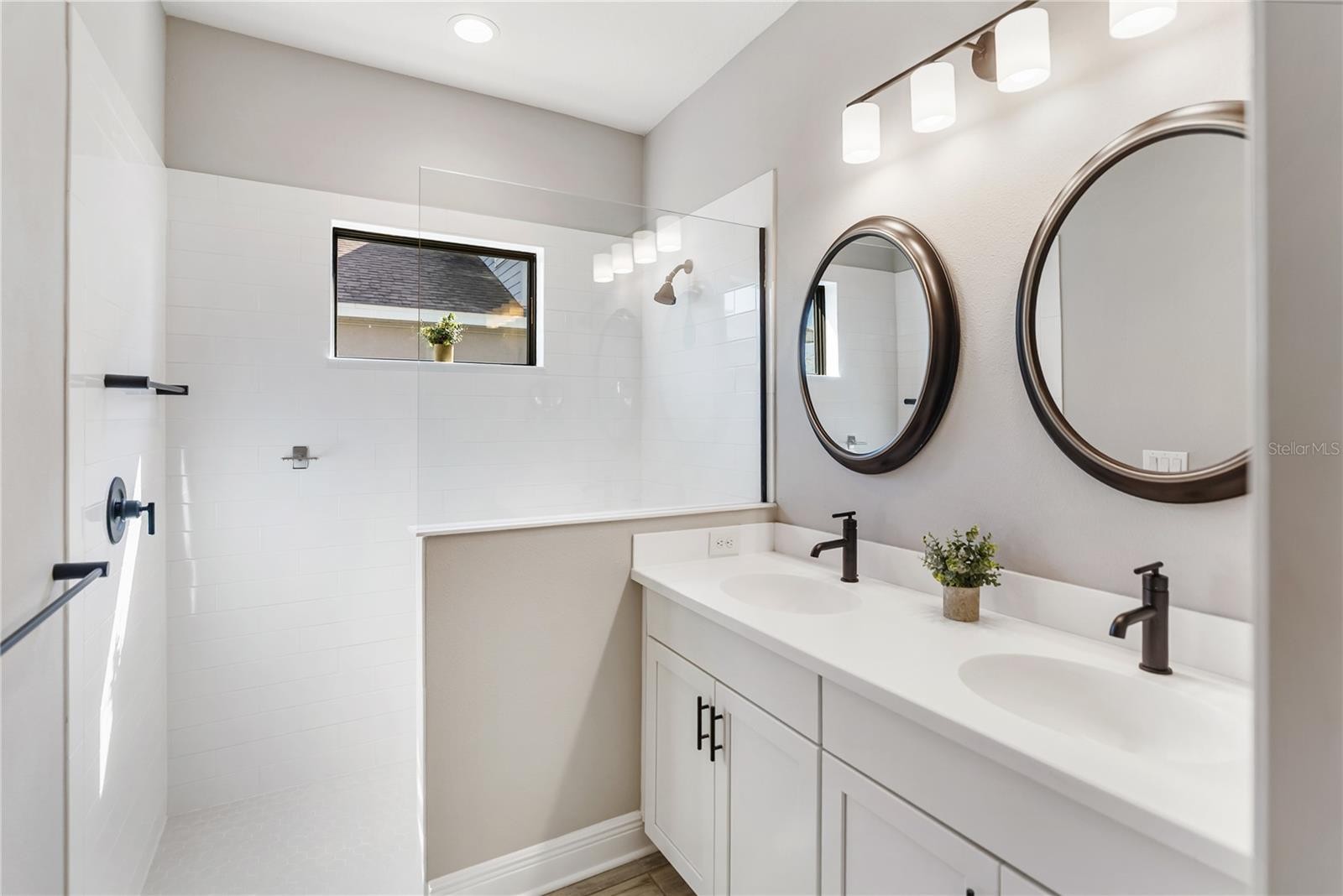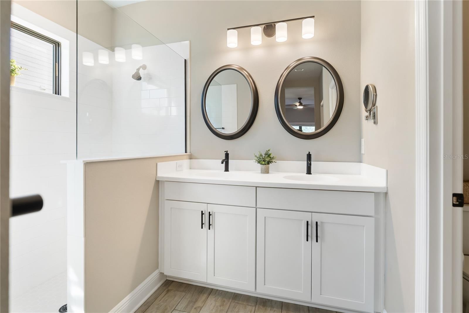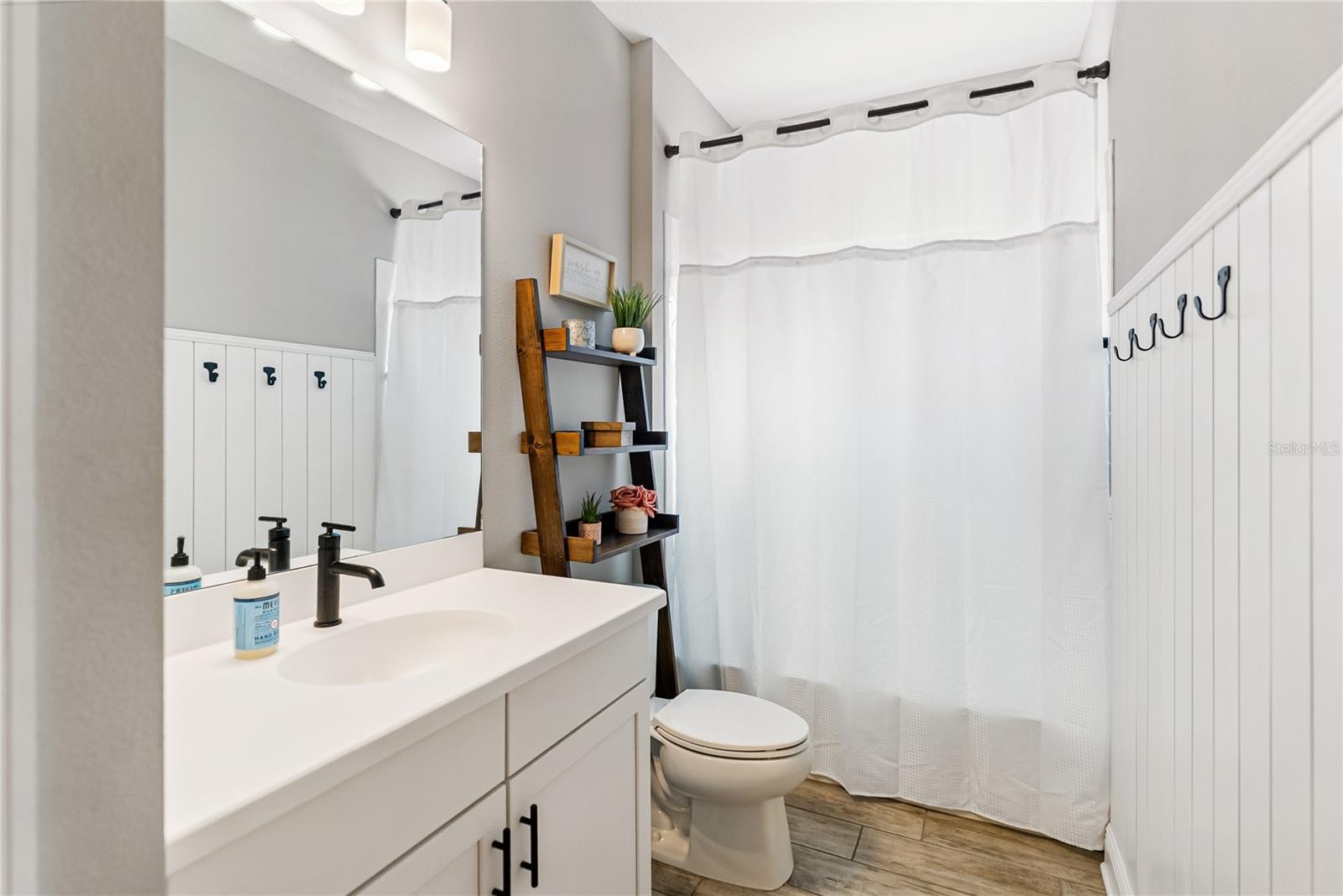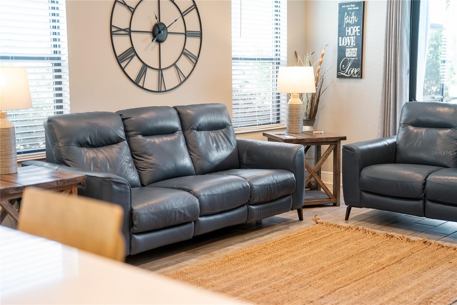 Experience refined coastal living in one of Parrishs most desirable communities. This beautifully designed residence in Canoe Creek welcomes you with bright natural light, an open concept layout, and luxurious designer finishes throughout. The expansive kitchen is a true showpiece, featuring an oversized quartz island, custom pendant lighting, upgraded cabinetry, stainless steel appliances, gas cooking, a stylish tile backsplash, and abundant storage. It opens gracefully into a spacious living area with tray ceilings, a custom accent wall, large sliders, and luxury surround sound speakers that enhance both everyday living and entertaining. The primary suite is a tranquil retreat with elegant double barn doors leading to a spa inspired ensuite, along with two generous walk in closets that provide exceptional storage and comfort. The versatile flex room is located separately from the bedrooms and offers amazing space for a home office, lounge, fitness area, playroom, or guest setup, allowing you to tailor the home to your lifestyle. Throughout the residence you will find wood look tile, neutral tones, and thoughtful designer touches that bring warmth and sophistication to every corner. The screened lanai offers soft breezes, privacy curtains, and peaceful views that create the perfect place to unwind or gather with family and friends. The garage includes two overhead storage systems, each measuring four by eight feet, ideal for seasonal items or personal belongings, and especially convenient for anyone relocating who may prefer avoiding an off site storage unit. Living in Canoe Creek means enjoying exceptional amenities including a resort style pool, fitness center, pickleball courts, clubhouse, dog park, walking trails, and a vibrant social community. The location provides quick access to shopping, dining, schools, and convenient travel to Lakewood Ranch, Sarasota, St Pete, and Tampa. This residence offers a true luxury lifestyle with comfort, style, and community at every turn.