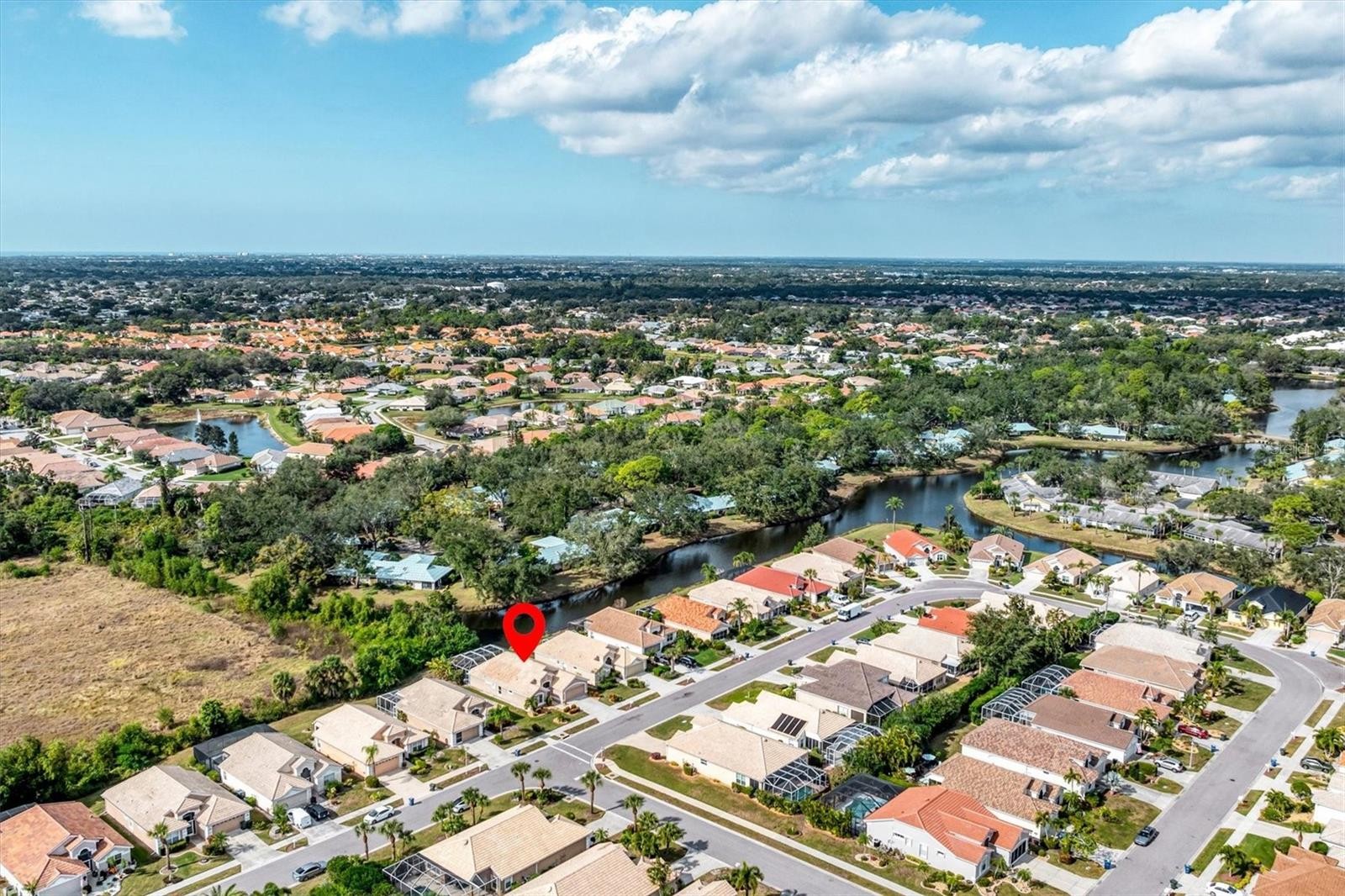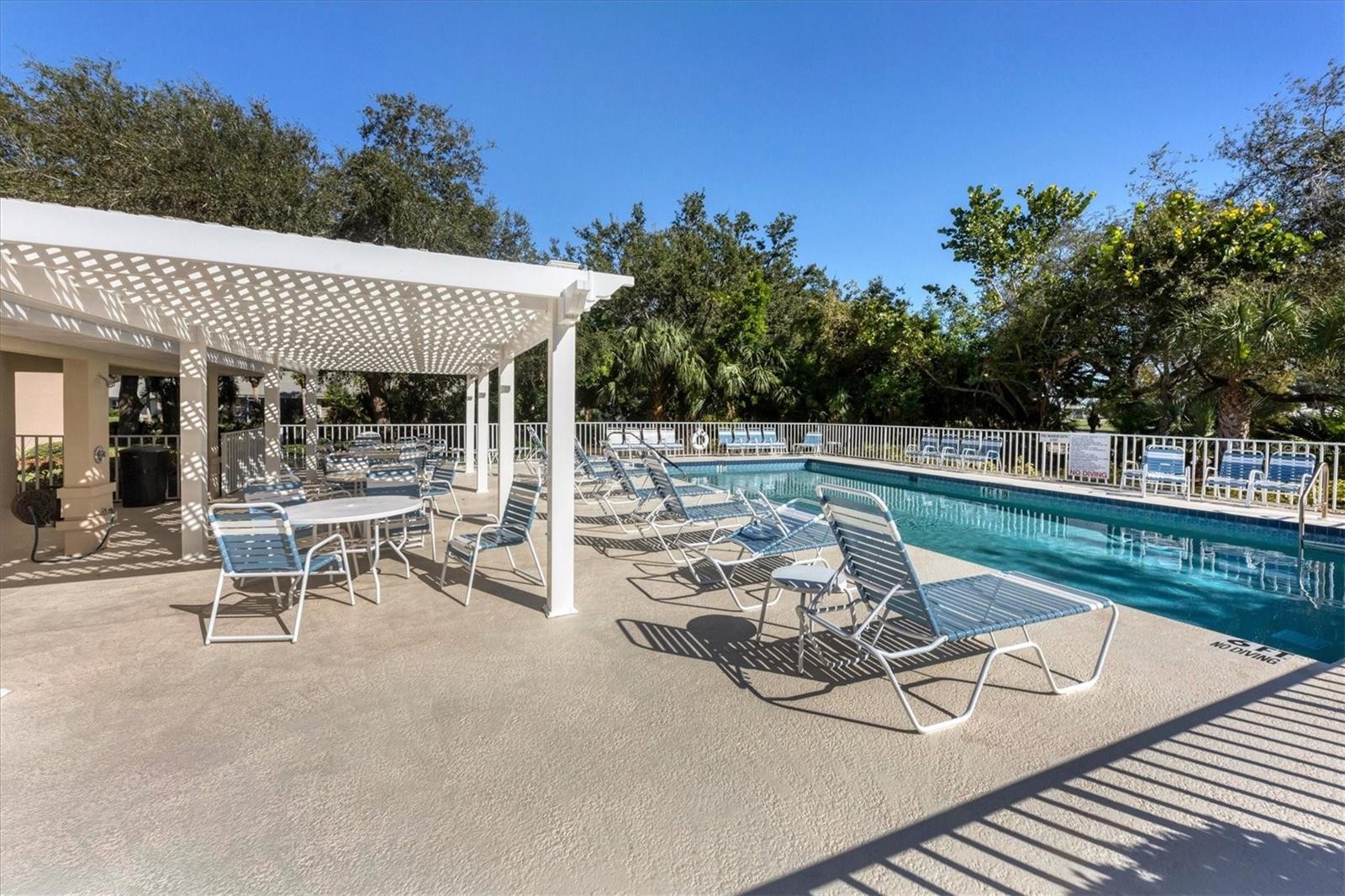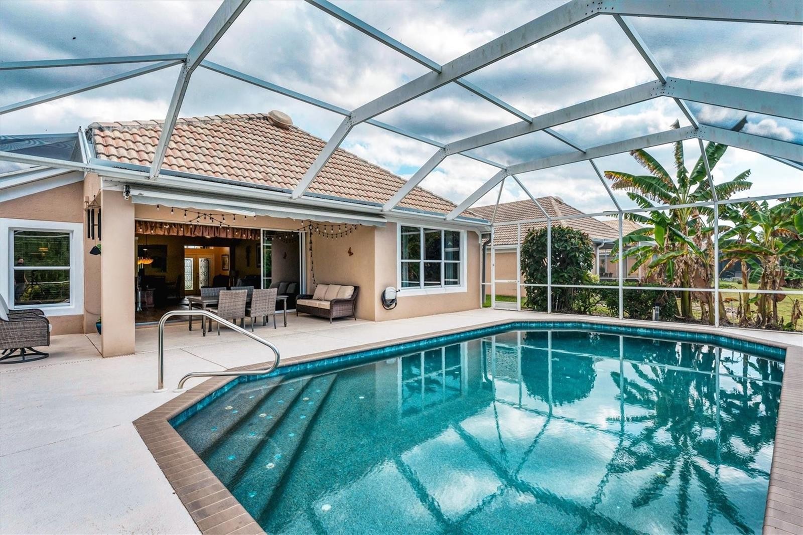 Welcome home to Wexford on the Green, an enclave nestled among mature trees and calm lakes. This is a one-owner home which has been lovingly maintained. This residence offers peace of mind with a brand-new tile roof currently being installed (January 2026) and a new HVAC system installed in 2022. As you enter the front door, you’re greeted by the bright and open living space featuring vaulted ceilings and large sliding glass doors that draw your eye straight to the pool and lanai beyond. The dining room sits conveniently to the right, perfect for entertaining or everyday meals. The semi-enclosed kitchen offers bar seating and a cozy breakfast nook, blending functionality with charm. The kitchen was updated in 2015 and features beautiful solid-wood cupboards. The primary suite is an inviting retreat, complete with an en-suite bathroom and a walk-in closet and a view of the pool and preserve. The second bedroom is located near a full bathroom with a tub and shower combination. A versatile flex room provides endless possibilities as a third bedroom, den, home office, or hobby space. The true star of the home is the expansive 16’ x 30’ pool and lanai, offering privacy thanks to the bordering preserve and peek-a-boo lake views. The pool has seen recent upgrades, including a PebbleTec surface, new pump, and cleaner, making it ideal for both relaxation and entertaining. It does have a heater which gives you the option to enjoy the pool all year. Rest easy with this well-managed Homeowners Association who not only maintains the community pool and clubhouse, but also does the lawn maintenance and pest control. Wexford on the Green is located within the Plantation Golf and Country Club – membership there is optional if you want to play tennis, pickleball, golf, etc. The location is excellent with plenty to do nearby. Immerse yourself in the dynamic energy of nearby Downtown Wellen Park and Historical downtown Venice. Both downtowns feature live music, shopping, dining, cultural experiences, festivals, walking paths, and more. Baseball enthusiasts will love the proximity to Cool Today Park, a state-of-the-art sports facility that hosts exciting events year-round. This home is only a short drive from the pristine Gulf of Mexico beaches, offering sun-soaked days and breathtaking sunsets. Embrace the coastal lifestyle, make memories, and turn this place into your vacation home or your forever home.