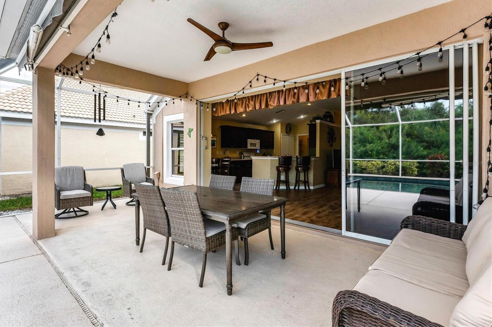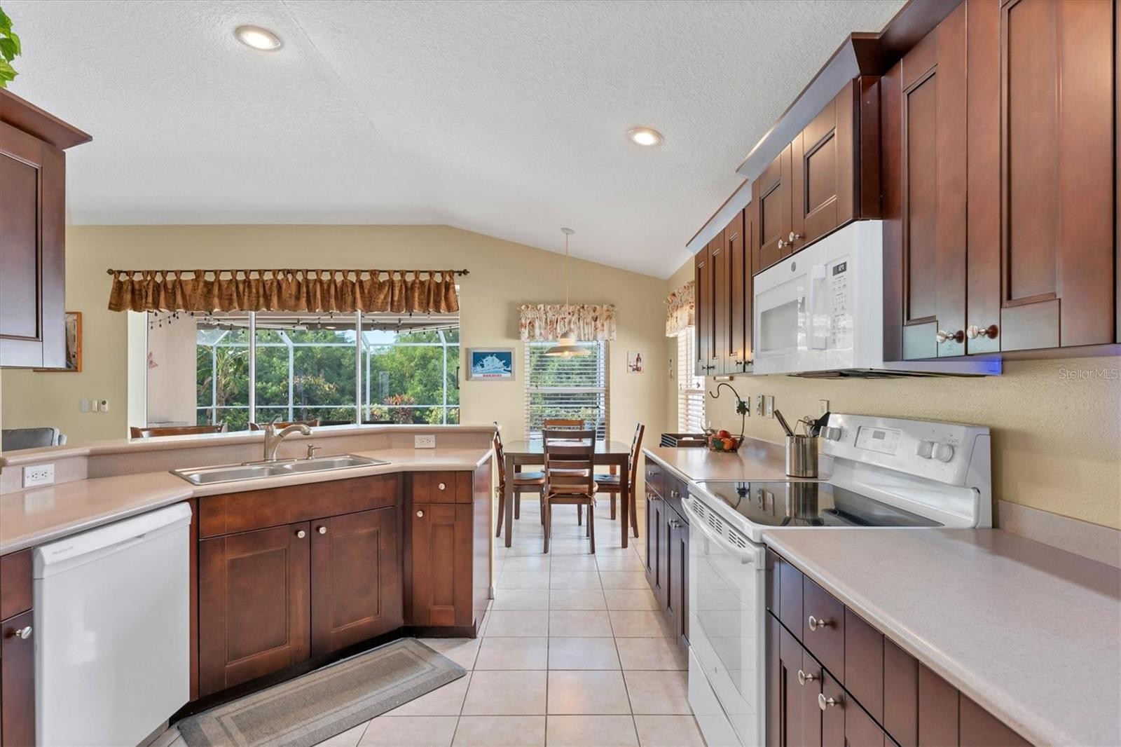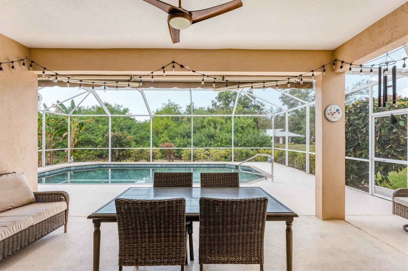 Welcome home to Wexford on the Green, an enclave nestled among mature trees and calm lakes. This is a one-owner home which has been lovingly maintained. This residence offers peace of mind with a brand-new tile roof currently being installed (January 2026) and a new HVAC system installed in 2022. As you enter the front door, you’re greeted by the bright and open living space featuring vaulted ceilings and large sliding glass doors that draw your eye straight to the pool and lanai beyond. The dining room sits conveniently to the right, perfect for entertaining or everyday meals. The semi-enclosed kitchen offers bar seating and a cozy breakfast nook, blending functionality with charm. The kitchen was updated in 2015 and features beautiful solid-wood cupboards. The primary suite is an inviting retreat, complete with an en-suite bathroom and a walk-in closet and a view of the pool and preserve. The second bedroom is located near a full bathroom with a tub and shower combination. A versatile flex room provides endless possibilities as a third bedroom, den, home office, or hobby space. The true star of the home is the expansive 16’ x 30’ pool and lanai, offering privacy thanks to the bordering preserve and peek-a-boo lake views. The pool has seen recent upgrades, including a PebbleTec surface, new pump, and cleaner, making it ideal for both relaxation and entertaining. It does have a heater which gives you the option to enjoy the pool all year. Rest easy with this well-managed Homeowners Association who not only maintains the community pool and clubhouse, but also does the lawn maintenance and pest control. Wexford on the Green is located within the Plantation Golf and Country Club – membership there is optional if you want to play tennis, pickleball, golf, etc. The location is excellent with plenty to do nearby. Immerse yourself in the dynamic energy of nearby Downtown Wellen Park and Historical downtown Venice. Both downtowns feature live music, shopping, dining, cultural experiences, festivals, walking paths, and more. Baseball enthusiasts will love the proximity to Cool Today Park, a state-of-the-art sports facility that hosts exciting events year-round. This home is only a short drive from the pristine Gulf of Mexico beaches, offering sun-soaked days and breathtaking sunsets. Embrace the coastal lifestyle, make memories, and turn this place into your vacation home or your forever home.