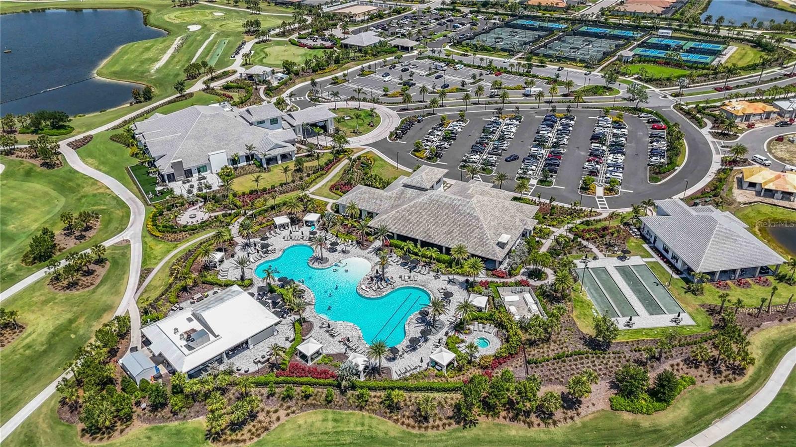 Live the resort lifestyle every day in this beautifully appointed and meticulously maintained Roma floor plan in Esplanade at Azario in Lakewood Ranch. Thoughtfully enhanced to the highest standards, this exceptional residence features professionally designed illuminated landscaping, a GAS-HEATED POOL & SPA, a 24 kW Generac whole-house generator with 7-year extended warranty, and an INCLUDED PREMIER GOLF MEMBERSHIP — all while enjoying true maintenance-free, lock-and-leave living with lawn care included by the HOA. Offering 2 bedrooms plus a den, 2 baths, and 1,689 square feet of thoughtfully designed living space, this home blends comfort, elegance, and privacy within one of Lakewood Ranch’s most sought-after gated communities. A private side entry welcomes you into an open-concept layout ideal for entertaining and everyday living. The designer kitchen overlooks the spacious great room and dining area and showcases GE Café stainless steel appliances including a gas range, French door refrigerator with hot water dispenser, quartz countertops, tile backsplash, New Haven cabinetry throughout, soft-close doors and drawers, under-cabinet lighting, and pull-out shelving. Wood-look plank tile flooring flows seamlessly through the main living areas, complemented by upgraded lighting, ceiling fans, 8-foot doors, pocket doors, and a convenient floor outlet for flexible furniture placement. The private primary suite offers a peaceful retreat with a bay window, walk-in closet, dual vanities, frameless glass shower enclosure, and private water closet. The den features a transom window for added natural light and architectural character, while the secondary bedroom and full bath are thoughtfully positioned for guest privacy. Outdoor living is equally impressive. The extended paver lanai showcases a gas-heated pool and spa with a powerful 400K heater upgrade, plus a natural gas connection for outdoor grilling. Recent enhancements include programmable multicolor pool cage lighting, exterior landscape lighting on three sides of the home, new professional landscaping, whole-yard soil and sod enrichment, and refreshed interior paint in several rooms — creating a truly move-in ready property. Additional highlights include a hurricane-impact glass front door with sidelight, extended garage with epoxy flooring, attic pull-down stairs, laundry room with cabinetry and sink, and paver driveway. Esplanade at Azario delivers an unmatched resort experience with its 18-hole championship golf course, Aqua driving range, pro shop, Bunker Bar, resort-style pool with Bahama Bar, full-service spa and wellness center, culinary center with teaching kitchen, Barrel House Bistro, Olive & Vine café, fitness center, tennis, pickleball, bocce, dog parks, walking trails, community garden, social clubs, and full-time activities director. Play golf in the morning, relax poolside in the afternoon, and enjoy dinner at the culinary center in the evening — all without ever leaving your community. A distinguished retreat where refined design meets a world-class golf and resort lifestyle — created for those ready to enjoy life at its finest.