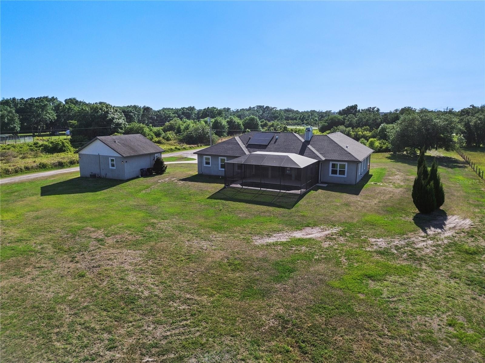 2 Houses, 5 acres, NO HOA, NO DEED RESTRICTIONS with pond, open acreage and wooded acreage with a dirt bike track. The main house is a gorgeous 3 bedroom w/den, 2.5 bath, 2 car garage with pool. Country style porch, entrance way with barn door den off to the right. Open concepts with great room centered around the fireplace and double french doors that lead to the pool. Enormous kitchen with an extended amount of cabinetry and huge island, cook top with hood, stainless steel appliances. Guest bedrooms on North end of house share an adjoining bath set up. Main bedroom has private access to the pool, an enormous closet and an absolutely fabulous bathroom with a free standing clawfoot tub, walk in shower and double vanities. Inside laundry room, garage has climate storage, closet, tesla power wall and solar panels that makes your power bill turn to pennies. Brand new water treatment system. Guest house is a 1 bedroom efficiency with full bathroom and laundry closet. Everything you need for separate living. Total of 3 car garage, 2 for the main house and 1 for the small house. Expansive yard, neighboring properties spaced far apart. Minutes from Moccasin Wallow exit and all the new amenities. Private country living with ability to bring all your vehicles, RVs and more. Use the guest house, for family, home office or a home based business. Come check this one out and make it your own.