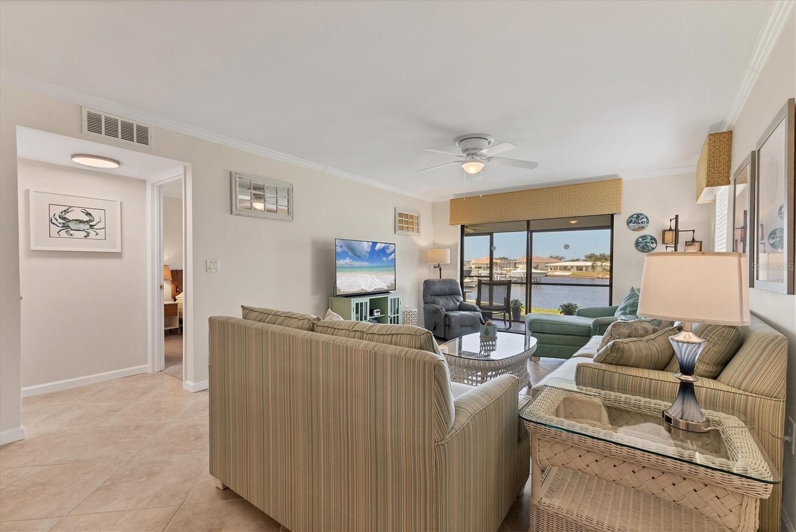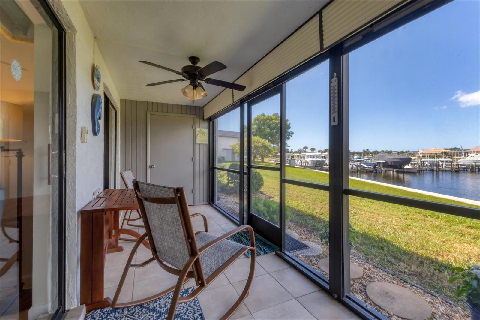 Welcome to a cozy waterfront living opportunity in the Marina Isles community, nestled within the scenic Englewood Isles development. This beautifully appointed 2 bedroom /2 bath condominium offers a rare combination of comfort, convenience, solitude and waterfront views. Located on the first floor, this end unit provides parking within steps to the front door and easy access to the waterfront from the lanai. No stairs to climb. The screened-in lanai faces the marina and waterway, presenting pleasing views and vibrant sunsets for your everyday enjoyment and where you can watch the dolphins and manatees up close and personal from the seawall when they visit. It is also an ideal place for AM coffee, meals, and cocktails. The Lanai also has large storage closets, power, lighting, and a ceiling fan along with storm shutters which easily pull down. Interior improvements include fresh paint, smooth textured walls and ceilings, new trim, ceramic tile flooring in living areas and new carpeting in the bedrooms. The kitchen is enhanced with stainless steel appliances and white cabinets. Two newly remodeled ensuite bathrooms, in-unit laundry, and smart interior touches round out the living experience along with the newly painted attractive exterior The unit is being sold turnkey furnished and equipped ready for immediate move-in. Water, sewer, cable and internet services are included in the monthly condo fee. A coveted garage – a rarity in this complex – is included giving you secure parking and more added storage. Residents enjoy the heated pool and hot tub, The pool area also serves as a gathering place for dinners, holiday celebrations, card games etc. on the covered patio. There are boat slip opportunities at association owned seawall docks and at an on-site private marina for direct access to the Intracoastal and Gulf waters — no fixed bridges. Jump in your boat and be out in the intracoastal in minutes. Marina Isles is a friendly and active community with low-traffic, green-space rich community tucked between Englewood and Venice, offering a peaceful retreat yet excellent access to Florida’s Gulf Coast amenities. Within approximately 3 miles you’ll find the beautiful sands of Manasota Beach. Enjoy all the area has to offer such as great beaches, farmers markets, spring training, golfing and much more. Marina Isles has a lot to offer so make your appointment to view soon.