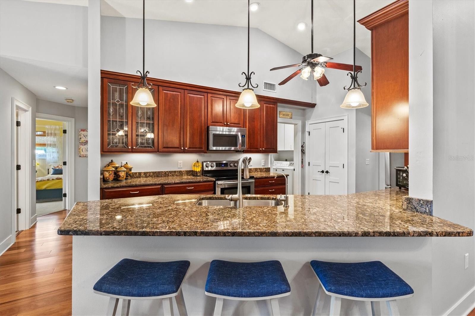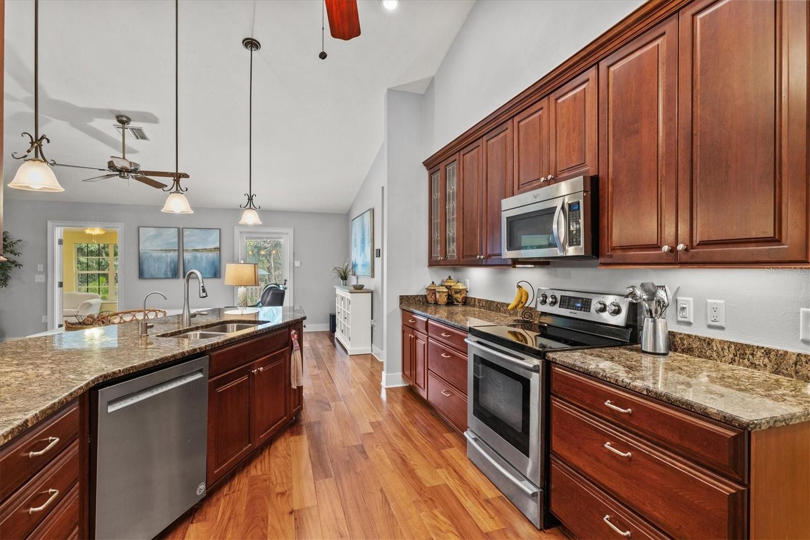 **THIS IS THE IDYLLIC HOME YOU'VE BEEN WAITING FOR!** NO HOA, NO DEED RESTRICTIONS! WELCOME HOME to unmatched southern charm in this custom-built home on a dead-end, cul-de-sac street. This ONE-OWNER dream property has been meticulously maintained both inside and out by the original owners. When you step onto the inviting front porch, you'll notice the pristine landscaping and flowerbeds lining your path. Your hurricane-rated impact front door provides additional safety features with a built-in triple lock system. Once inside, you are greeted by formal living and dining rooms that feature gleaming hardwood floors, 6" custom baseboards, and fresh, neutral paint. Plantation shutters on the IMPACT windows add the perfect finishing touch combined with peace of mind. The kitchen is adorned with custom 42" cabinets and granite countertops, which provide a timeless style and offer storage galore, a water filtration system under the sink, and a pantry with custom built-in shelving. Next to the family room and breakfast nook with vaulted ceilings, you will find your owner's suite with custom-built dual vanities in your en-suite bathroom, a walk-in closet with more custom built-ins and a BONUS room, easily used as a sitting room/office/nursery. Built-in benches, shelving and crown molding complete your owner's suite. Across the home, you will find a hall with two additional guest bedrooms and a guest bath. These bedrooms boast custom built-in storage systems in the closets. The third bedroom offers a walk-in closet with built-in desk, and shelving/cabinetry with ADDITIONAL desk built into the bedroom itself. This room is ideal for a student with homework, a craft room, or plenty of storage for when guests come. At the rear of the home, you will find a 23 x 13 BONUS family room that overlooks your backyard oasis. A French door leads outside to the Trex decking (installed 2022) on your multi-tiered custom deck. You may either descend the deck stairs to the right to your fully fenced lush backyard, (with a newly rebuilt storage shed in 2025), OR continue down two more deck layers to take a dip in your 35,000 gallon swimming pool with a depth of over 8 feet. With plenty of room for entertaining, this is the idyllic backyard for BBQs, birthday parties, or family reunions. There are even more outdoor custom cabinets with storage for pool toys and supplies. **All backyard furniture & umbrellas CONVEY with home.** More notable features include: a GENERATOR that powers entire home, TWO A/C units (main unit replaced in 2020), NEW water heater in 2023, SOLID WOOD custom doors on all closets and bedrooms, outdoor shower with HOT & COLD water, irrigation well with outdoor spigots for watering, and an Electrolux central vac system that works like a dream. Looking for top-rated schools? **This home will remain zoned for Venice High School in ALL scenarios.** The end of the cul-de-sac also has access to a private, paved bike path that goes straight to Laurel Nokomis School. It's truly the ideal Nokomis location - just a 10 MINUTE drive to EITHER Venice Beach or Nokomis Beach. With way too many features to list, you HAVE to come see this one for yourself! Schedule your showing TODAY!