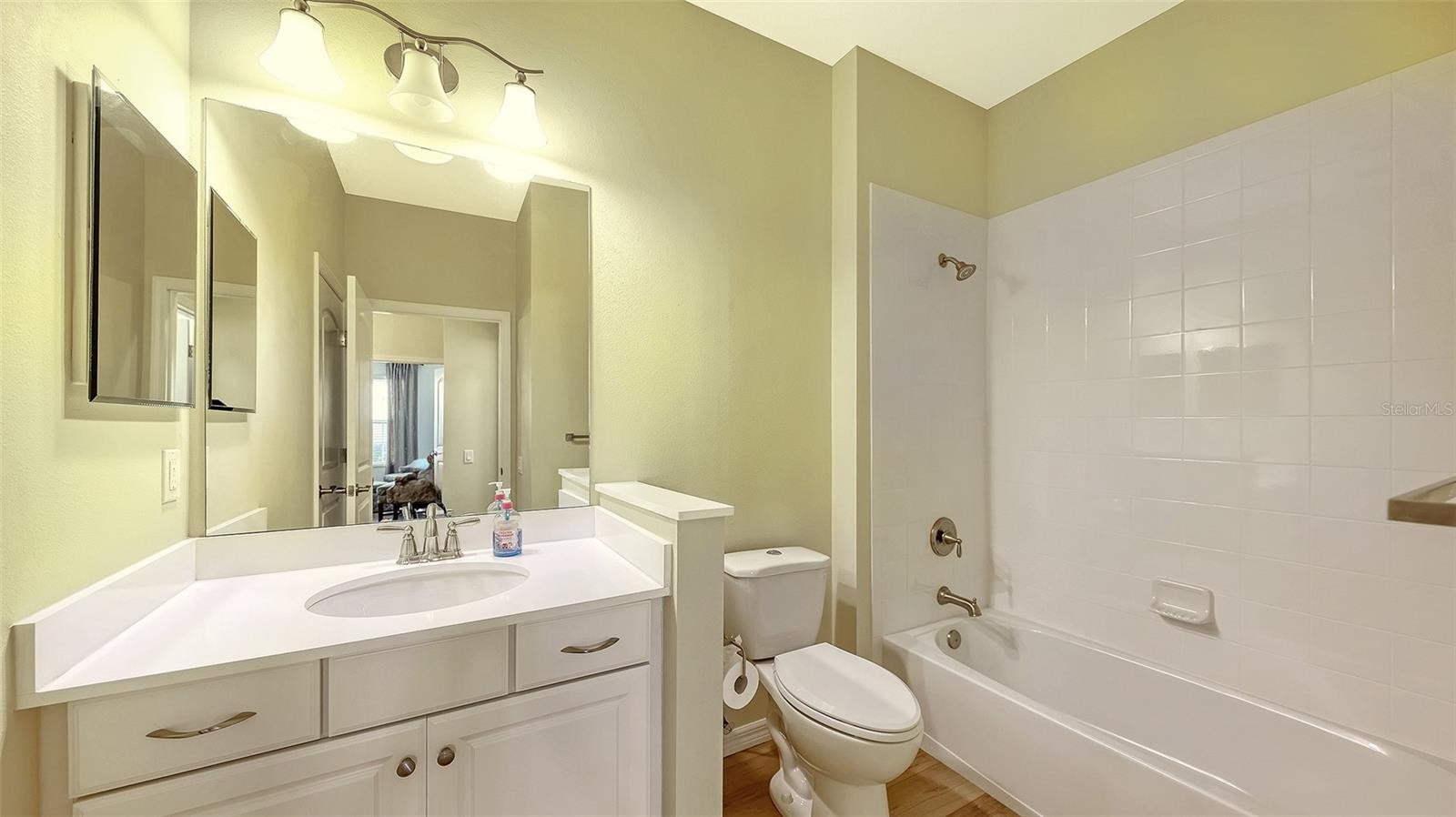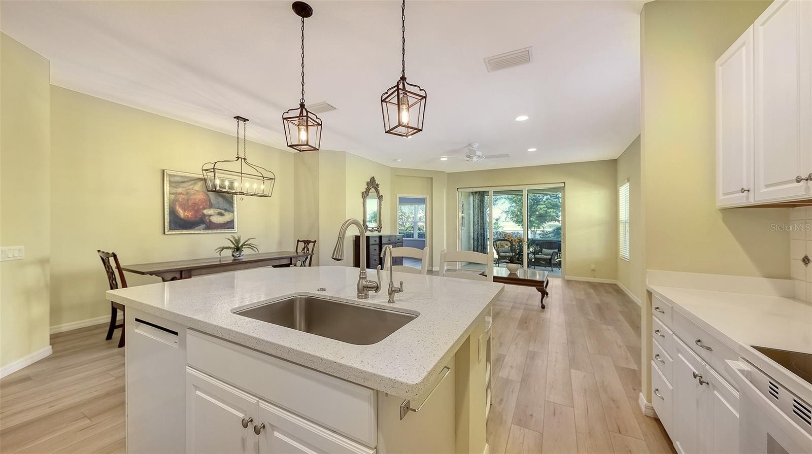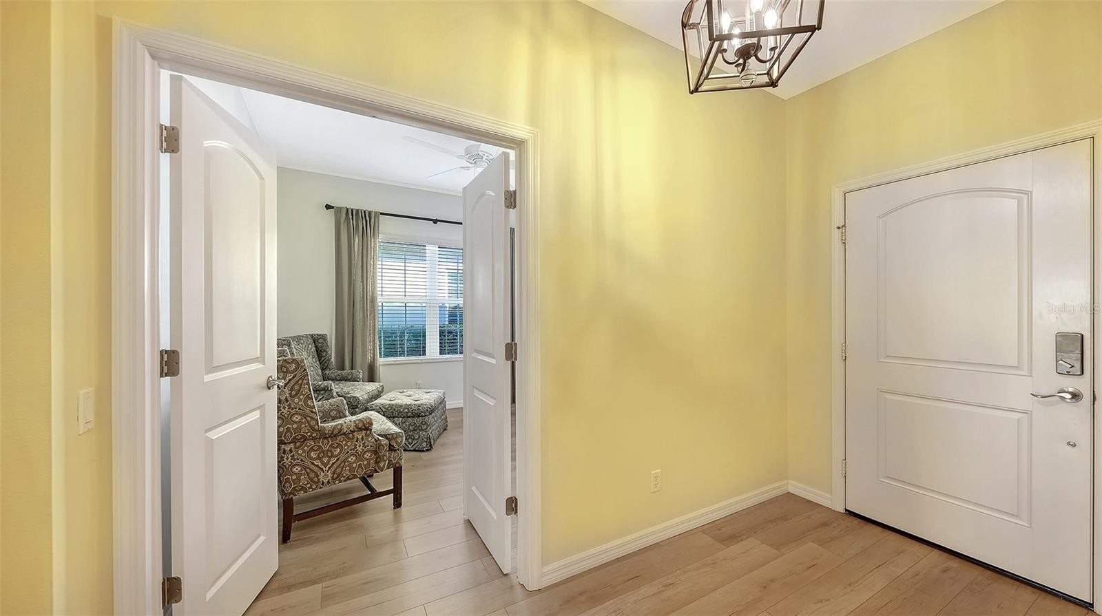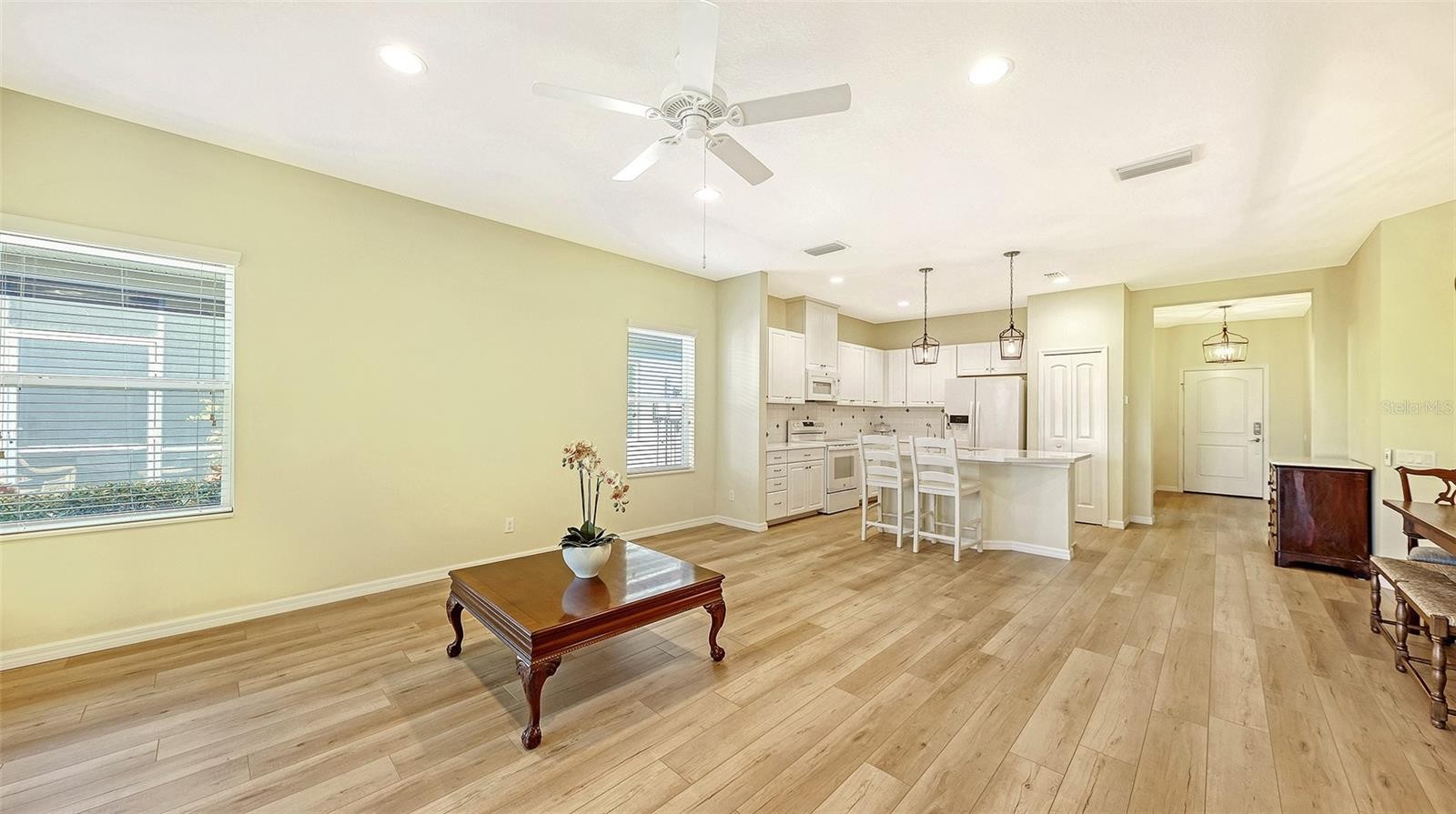 UPGRADES ABOUND in this immaculate, low maintenance, energy efficient villa in Mirabella at Village Green. Built in 2016 by Synergy Building Corp, Mirabella sits 22 ft above flood plain and is engineered to withstand 155 mph winds providing peace of mind during hurricane season. Just minutes from Anna Maria Island, Mirabella is an award winning LEED PLATINUM 55+ community designed for efficient, healthy living with reclaimed irrigation water, low flow plumbing, and high-performance MERV 8+ HVAC w/UV filtration. The bright, modern 1,525 sq. ft. interior includes 2 bedrooms + den, quartz countertops, high ceilings, 8 ft. doors, and gorgeous COREtec LVP flooring. Recent upgrades also include an impact triple slider, remote blind, upgraded lighting, and 2025 RANGE, MICROWAVE, DISHWASHER, DRYER, ADA PRIMARY TOILET, AC DUCT CLEANING, AND C02-SMOKE DETECTORS. The Refrigerator + Washer were replaced in 2022 and its epoxy-finished two car garage adds a clean, polished touch you will appreciate every day. Conveniently located 5 miles from Anna Maria Island and within 1.4 miles of Blake Medical Center, Mirabella’s community amenities include: pool and spa w/ clubhouse, fitness center, dog park, pickleball, sidewalks, park, playground, underground utilities, and great neighbors.