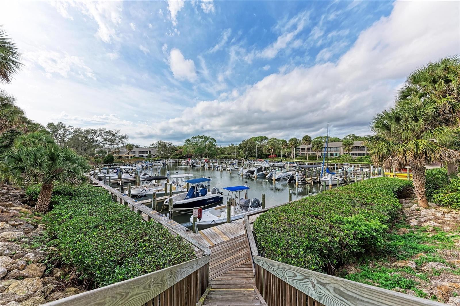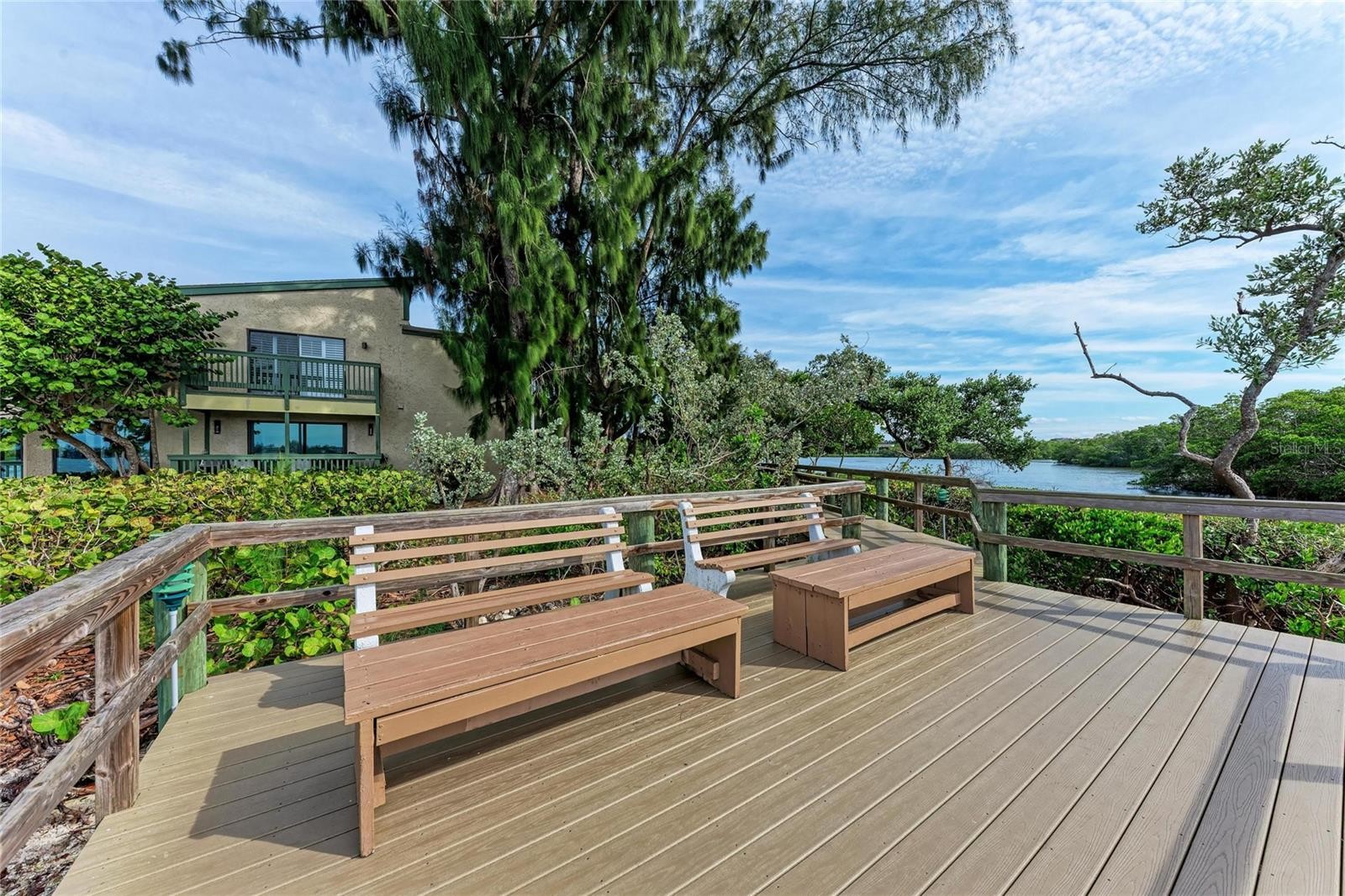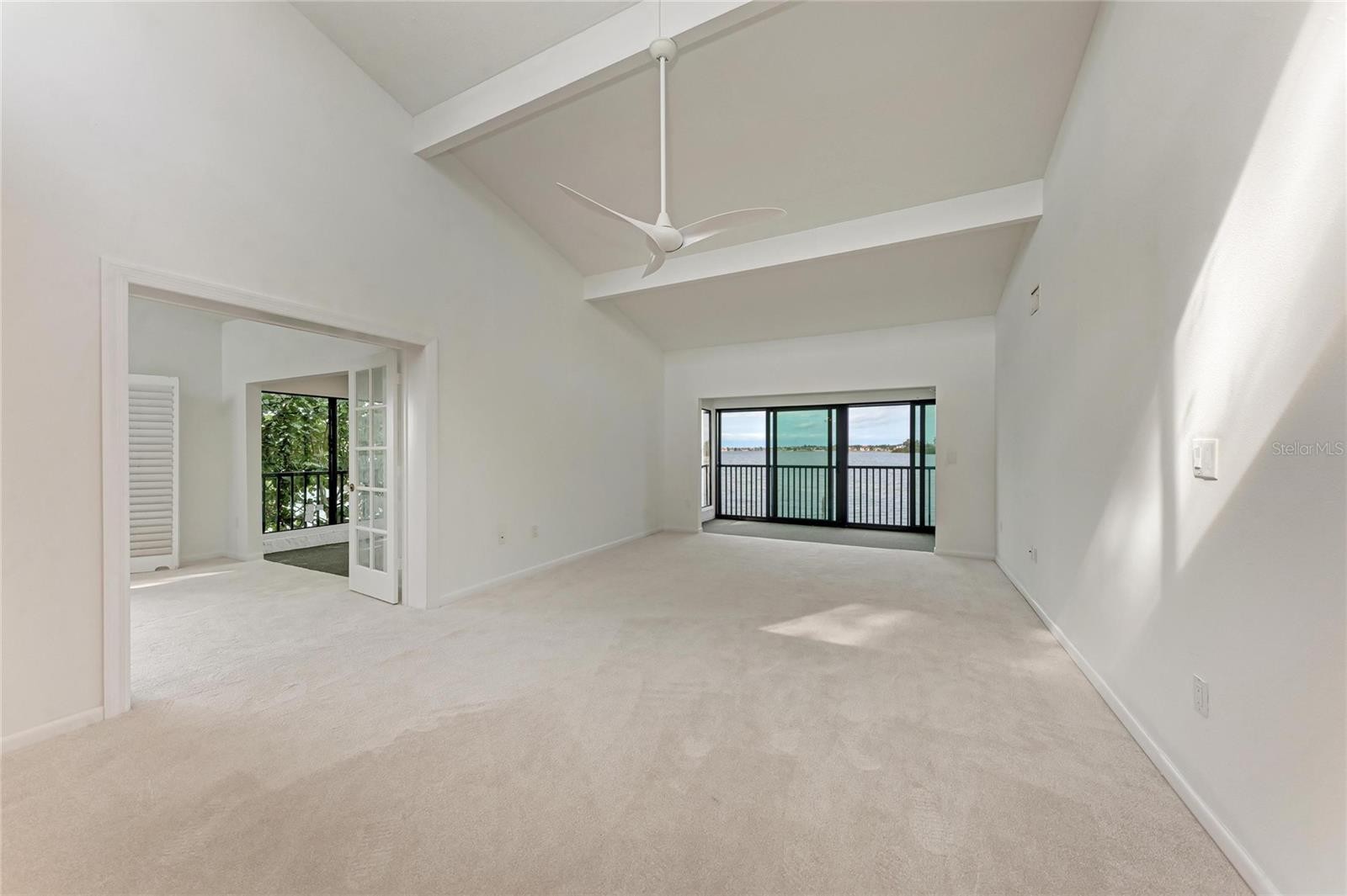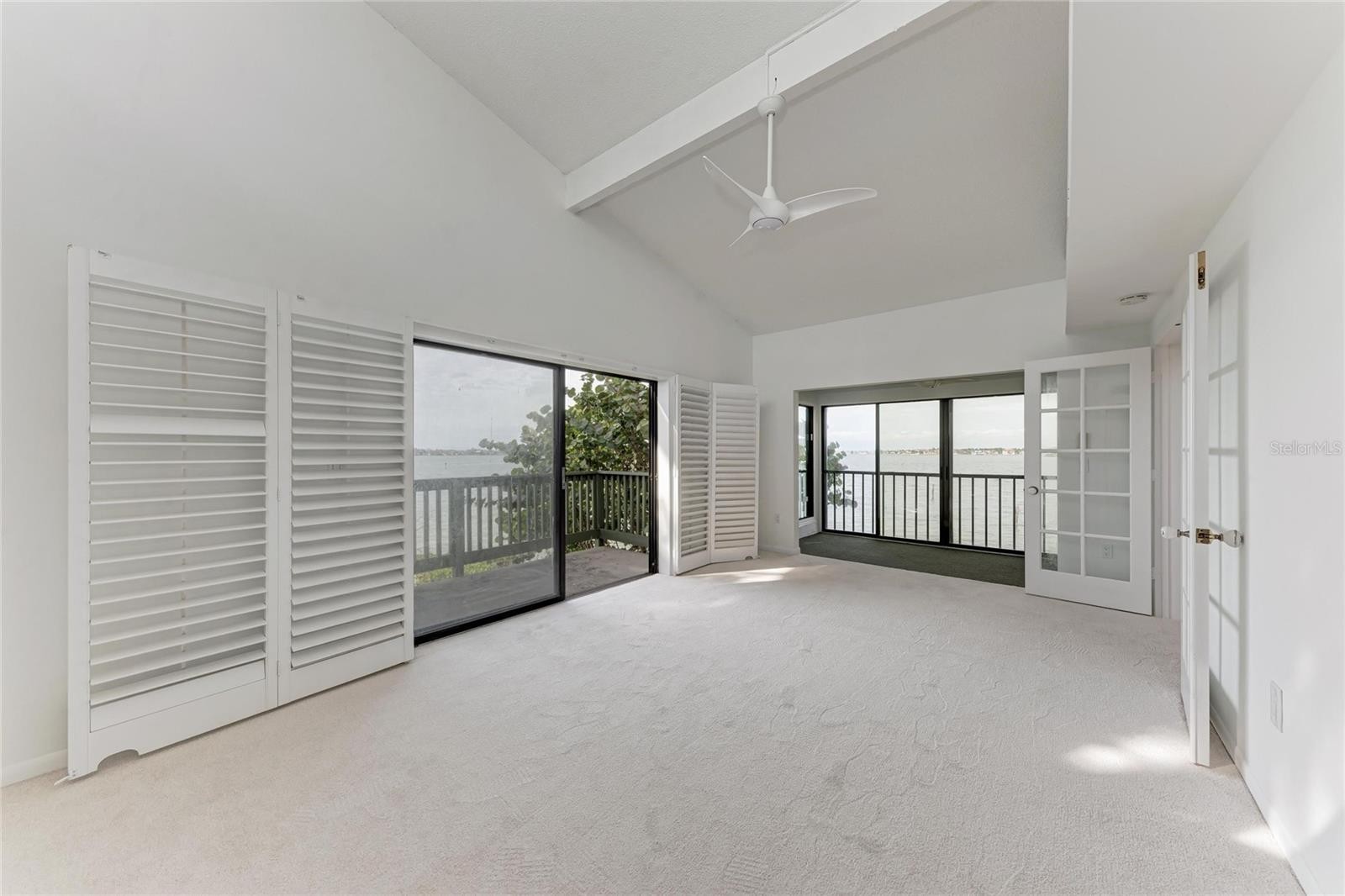 Positioned as the last and most western unit on the point in Pelican Cove, this largely private residence offers breathtaking 270° water views of Little Sarasota Bay, Pelican Cove, and the marina. With no neighboring unit beyond it, this exceptional location provides unmatched privacy, light, and water vistas from nearly every angle. Water views are enjoyed from every room, complemented by three distinct terraces one fully open-air and two screened and glassed creating seamless indoor-outdoor living. The expansive living and dining areas are filled with beautiful natural light and feature open access to a north-facing terrace, where sliding glass doors frame stunning bay views. A subtle step-down into the terrace and slightly lower dining ceilings create an inviting setting ideal for both entertaining and relaxed conversation. The kitchen offers a functional layout with a pass through window for entertaining, fresh paint, and connectivity to the main living spaces. This flexible floor plan includes two possible primary bedroom suites, along with an additional guest bedroom or office. The west wing primary suite showcases sweeping views of Little Sarasota Bay and Siesta Key, a walk-in closet, and access to two terraces one enclosed and one fully open air with sunset views. High moldings, clerestory windows, and privacy doors enhance the space, while the en suite bath features separate his-and-hers sinks and a private toilet and bath area. The east wing bedroom offers exceptional privacy with north-facing marina channel views, sliding glass doors, and a quiet interior location. A separate guest bedroom or office includes a built-in desk console and porch overlooking Pelican Cove waters. A southeast bathroom has received recent plumbing upgrades. Recent improvements include hurricane-rated glass on the main lanai, new clerestory windows replaced by the association, new sliding glass doors (Spring 2025), fresh paint throughout, drywall and trim replacement, new carpeting (2025), a recently replaced A/C system (August 2024), and updated electrical panel access. A small enclosed attic area provides additional storage. Residents enjoy Pelican Cove’s resort-style amenities, including multiple swimming pools, clubhouses, a fitness center, art studio, and marina access. The HOA covers water, grounds maintenance, exterior building maintenance, pest control, and community insurance for the exterior of the building (lanai window coverage obtained separately). This rare offering combines a premier end-of-point location with privacy, panoramic water views, and the best of coastal Sarasota living.