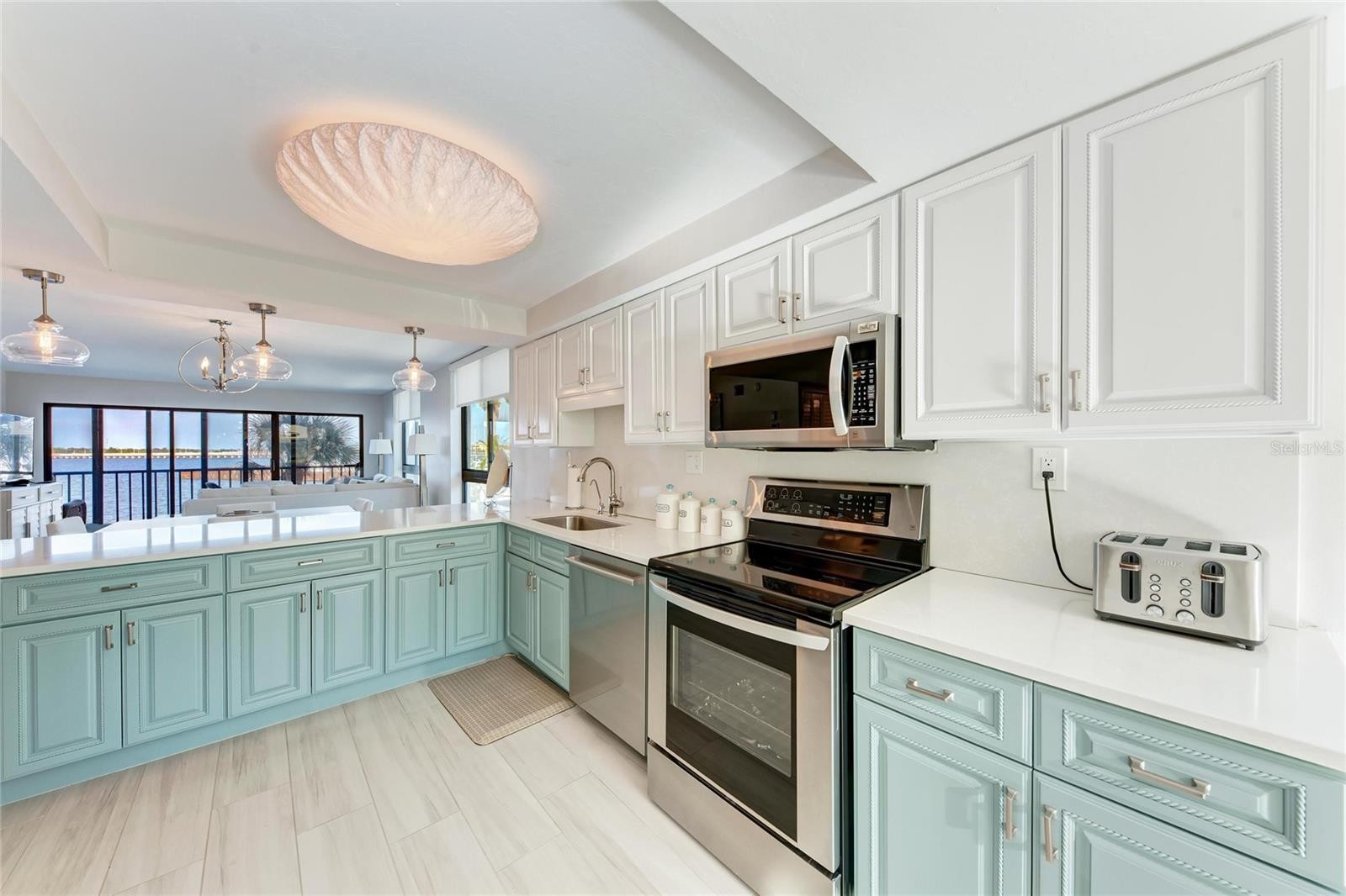 One of the best views in all of downtown Bradenton. Take the elevator to 2nd floor and walk into paradise, where you feel like you are on a cruise ship. Everything sparkles and shines with all the natural light from windows on three sides! Your own totally updated 2/2 END unit condo overlooking the Manatee River. End units rarely come up! Since this part of the river is saltwater, you can watch dolphins and manatees from your screened in lanai while sipping your coffee. Newer kitchen (cabinets, Sparkling white quartz counter tops, stainless steel appliances and even a reverse osmosis water filter on the kitchen sink). A perfect condo to entertain in. Tile flooring throughout. The master and living rooms have spectacular full river views. This unit also features hurricane impact windows. The HVAC is even upgraded with a UV light to improve indoor air quality. This is a small community with 33 units. One small pet is allowed. Complex features small beach, Community pool, hot tub, and community meeting room that has a sauna, kitchen and pool table. The building borders the Riverwalk that lines the waterfront of downtown Bradenton. It is an excellent area to exercise, stroll or just to have plain have fun. You are only a few short blocks to all the restaurants and bars. This is downtown living at its finest. This is one of the best buys on the Manatee River. The condominium passed their engineering milestone.