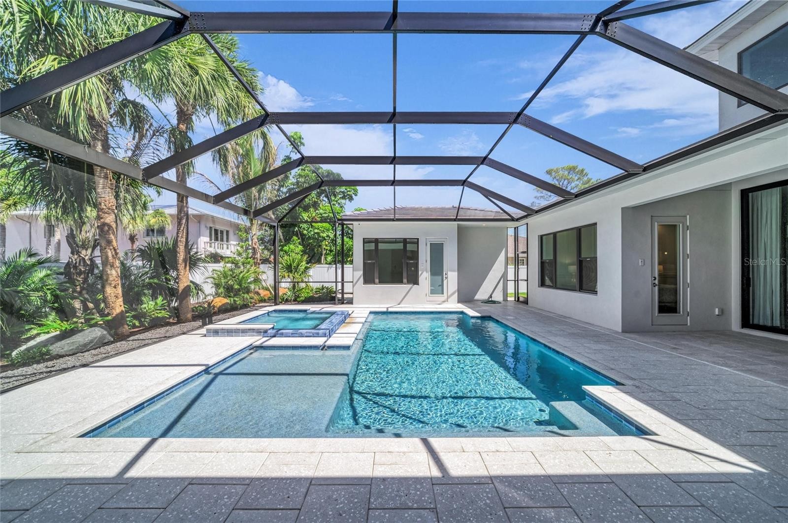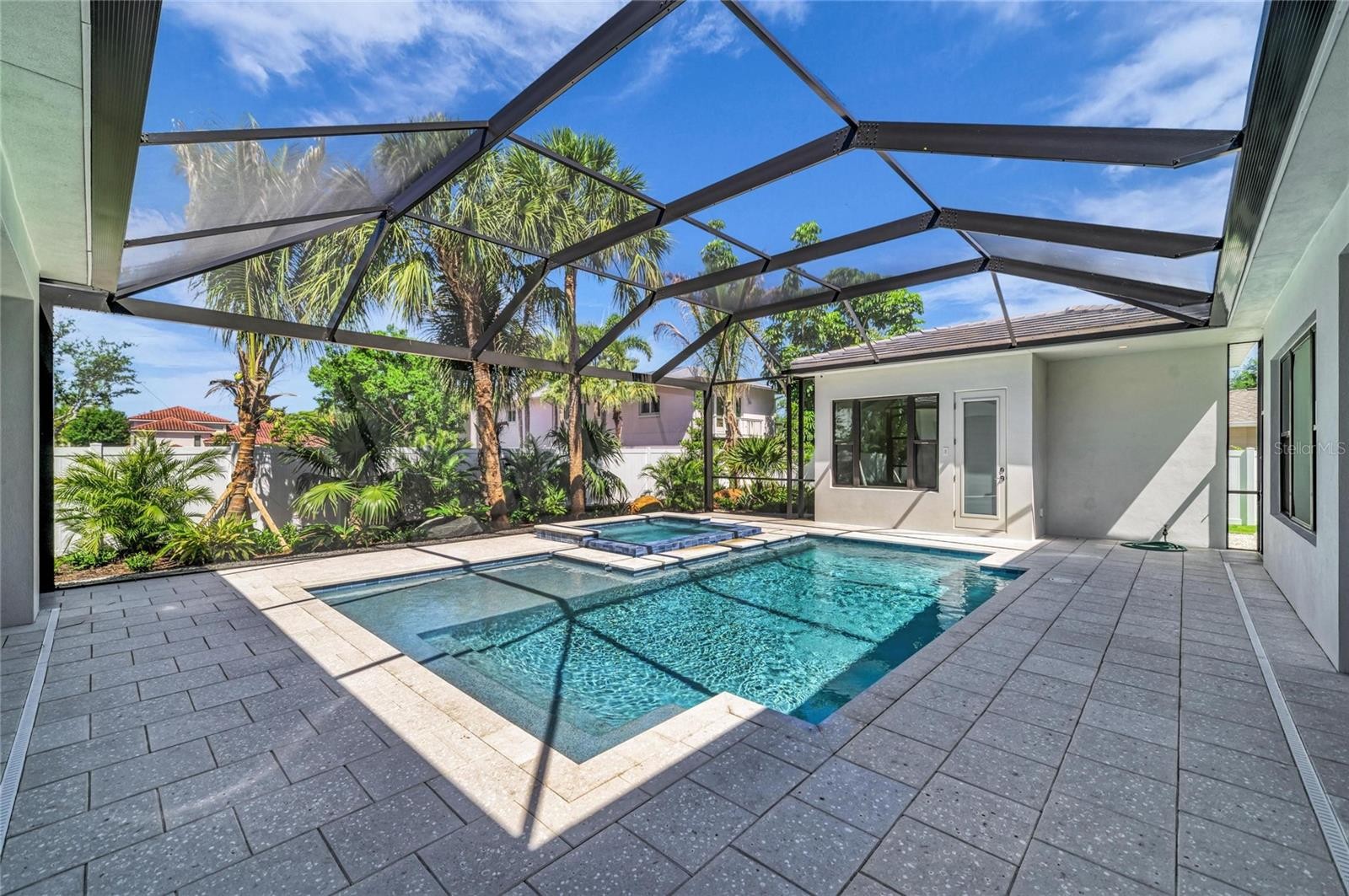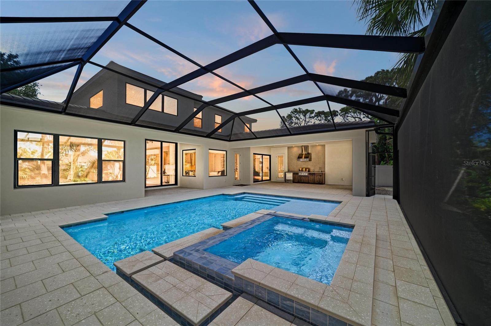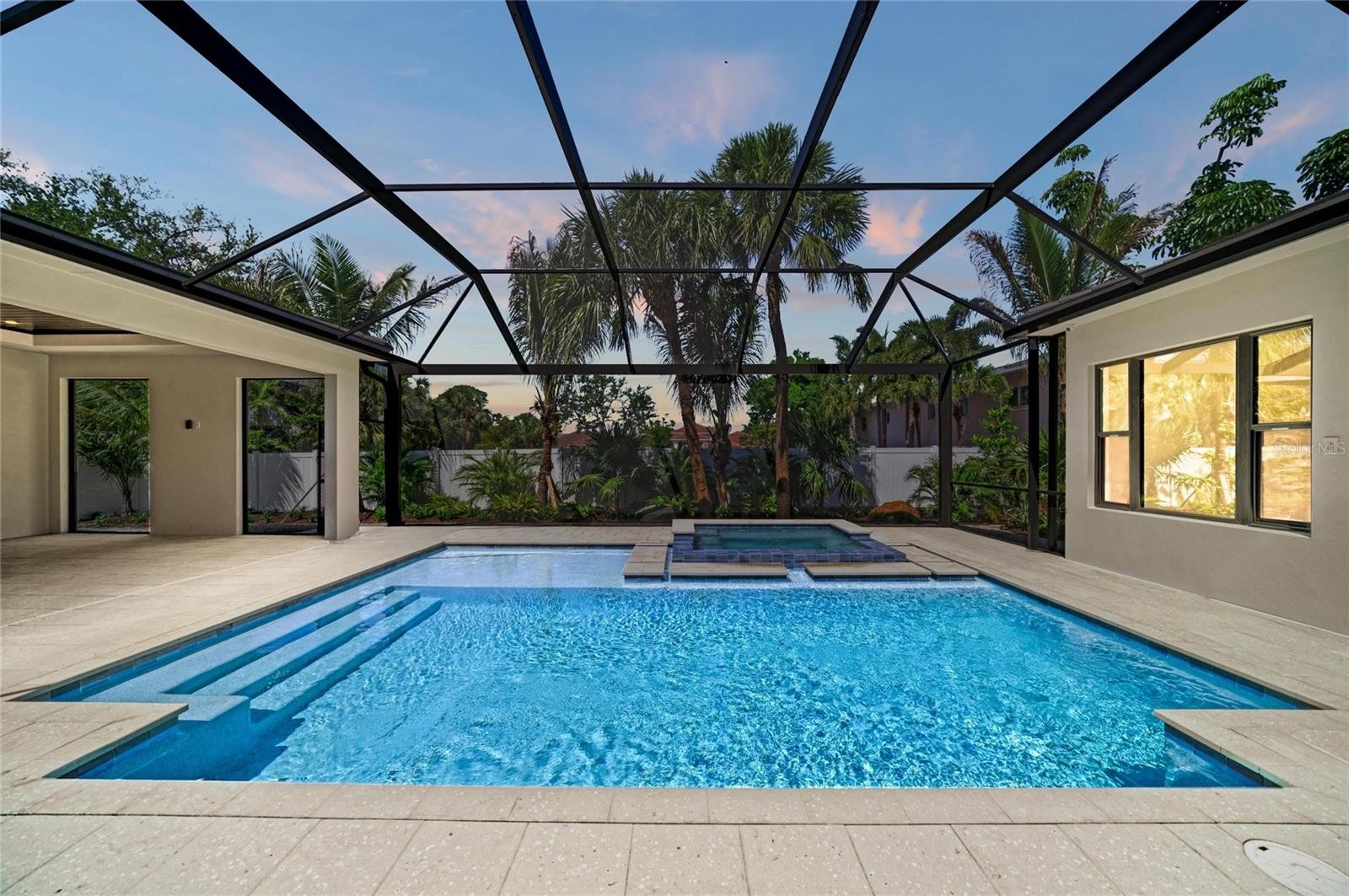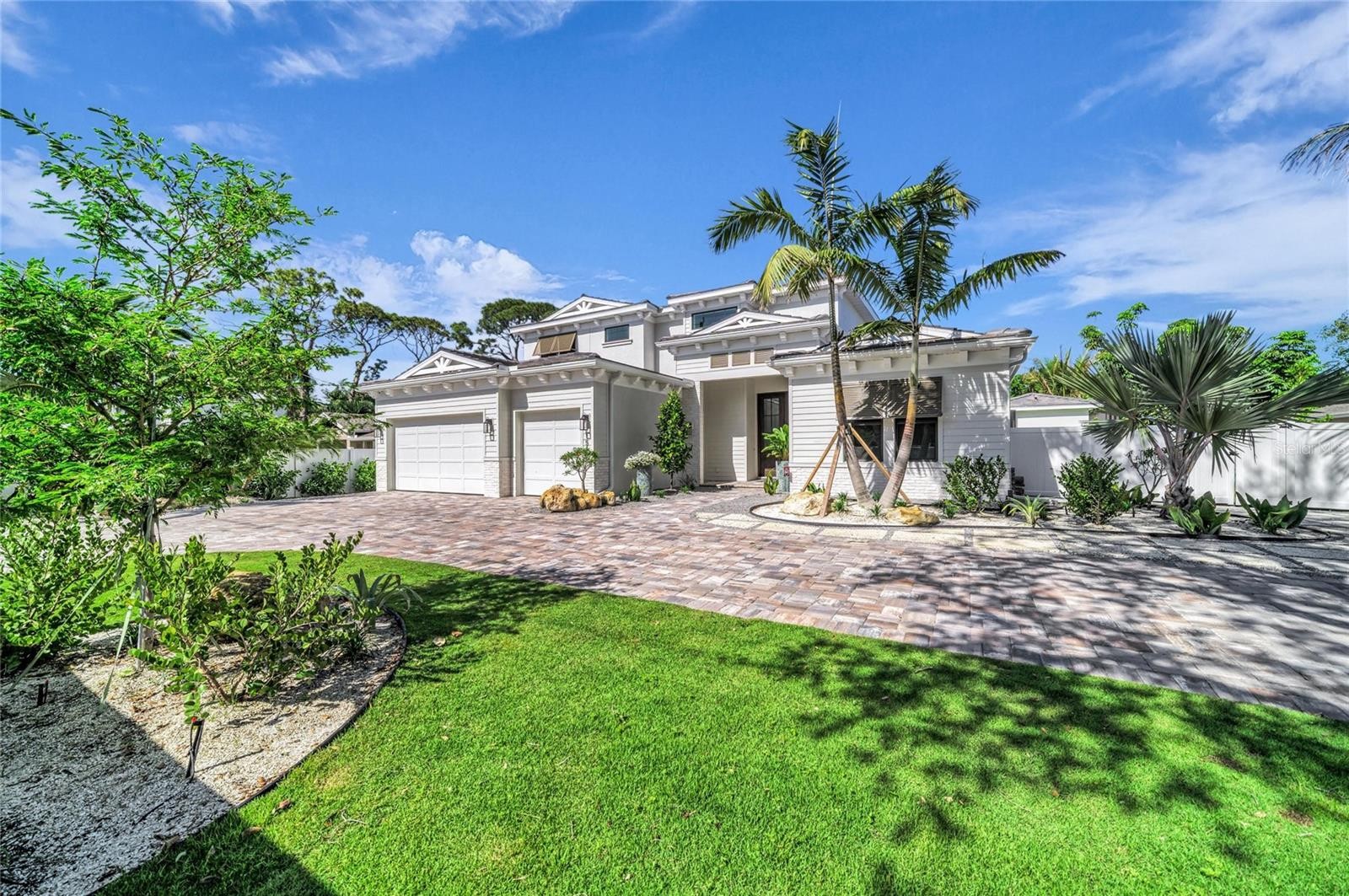 The highly-acclaimed team of professionals at Allegra Homes has yet again created a vision of luxury, elegance and simplistic functionality. A dynamic 4,224 sq. ft. open layout is rich in gorgeous details everywhere you turn. Feast your eyes on the “St. Michael,” a two-story beauty with stunning curb appeal and exciting interiors thoughtfully designed for grand-scale living. In addition to 4 bedrooms, there’s also a separate 254 sq. ft. casita ideally suited for in-laws or guests wanting to enjoy the fantastic Florida ambiance just a little longer. The extended foyer and great room feature an amazing 21-ft ceiling and invite you into a fascinating space with see-thru views out to the magnificent outdoors. Step into the heart of the home, where the great room exudes warmth and sophistication. A wood-beamed ceiling adds character and warmth, while clerestory windows flood the space with natural light, creating an inviting and airy ambiance. Triple sliders seamlessly connect the indoors to the covered poolside lanai. In the family room, a stunning stone-faced center wall serves as the focal point, flanked by built-in shelving with elegant lighting. The consummate chef will delight in the variety of accoutrements offered in this delectable space honed to perfection. A large stone-topped island easily seats 5 and the premium appliance package encompasses a 36” Wolf gas induction cooktop, a 42” Sub-Zero fridge, a Wolf oven with matching drop-down microwave, an ASKO dishwasher, a Sub-Zero wine cooler, and adequate counter and storage space including a pantry. Adding stylish flair to the dining room is a built-in buffet with full mirrored wall and wide windows overlooking the tropical pool setting. A separate dry bar with pass-thru is convenient to both the great room and kitchen for ease of serving family and friends. Overlooking the pool is a bonus room with a pool bath and wall of pocketing sliders opening wide to a covered 545 sq. ft. outdoor oasis with tongue-and-groove ceiling, nicely equipped summer kitchen, and abundant room for both dining and lounging. The pavered lanai is enclosed with ClearView screening and includes a 25’x19’ heated pool with 6 stepping pads, spill over spa, sun shelf, LED bubbler, salt conversion generator and Pebble Tec finish. The owner’s wing, with an adjacent study, may become your most prized room of the home with its drop tray ceiling, spacious seating area, soaking tub inside an exquisite large glass shower, separate dual vanities and water closet. An additional bonus room with wet bar, two bedrooms and a bath are located upstairs. Other honorable mentions include a 3-car garage with epoxy floor, tankless gas water heater, 10-ft ceilings, modern staircase with floating steps, recessed lighting, crown molding, brick paver drive and walkway, 8’ interior solid core doors, professionally landscaped, and irrigation system. Poised on over a 1/3 acre lot in prestigious Harbor Acres with a sought-after central location near the arts, entertainment, dining, shopping, beaches, boating, golf and other year-round adventures. For families with elementary school-age children, top-ranked Southside School celebrates 120 years of excellence in academic achievement. This stately new residence has been masterfully crafted inside and out, and will add a sense of pride and joy to an already perfect lifestyle.
