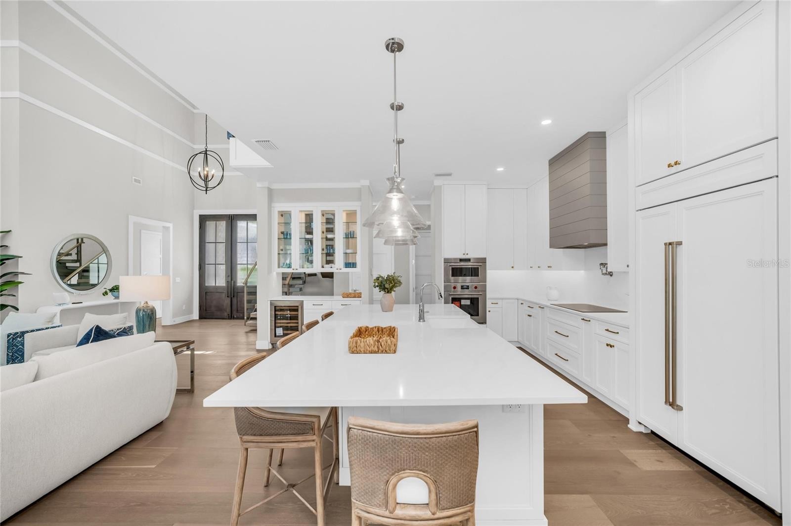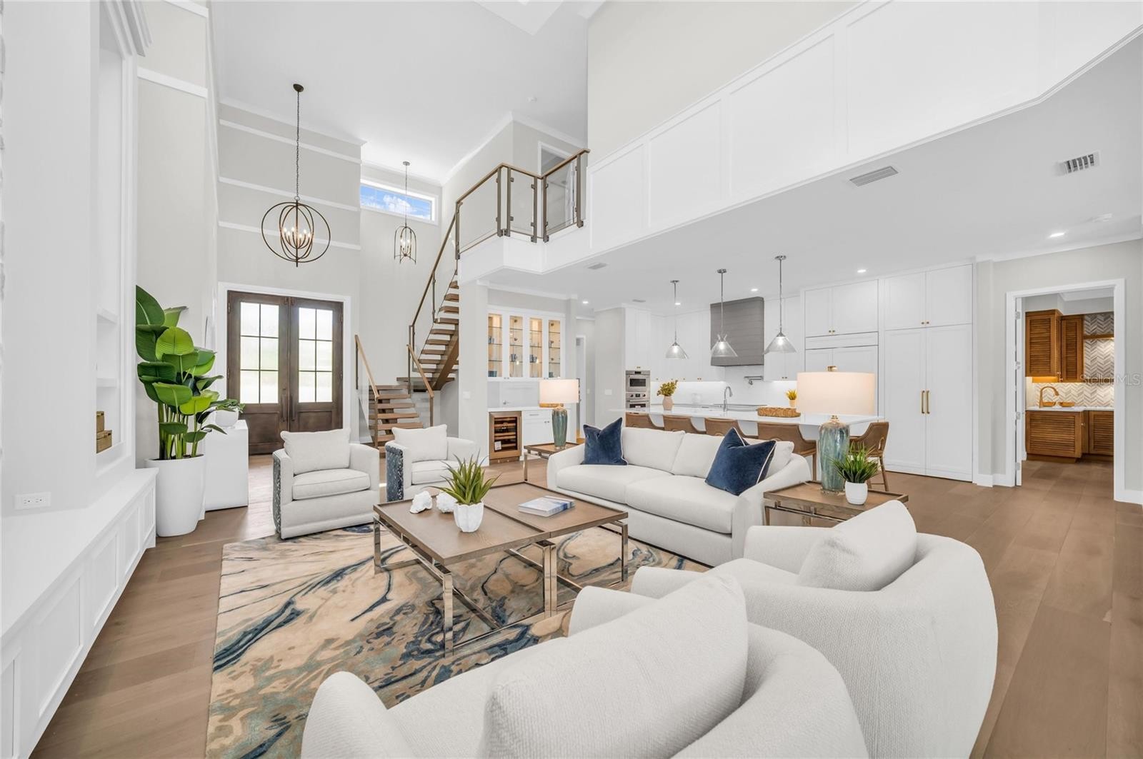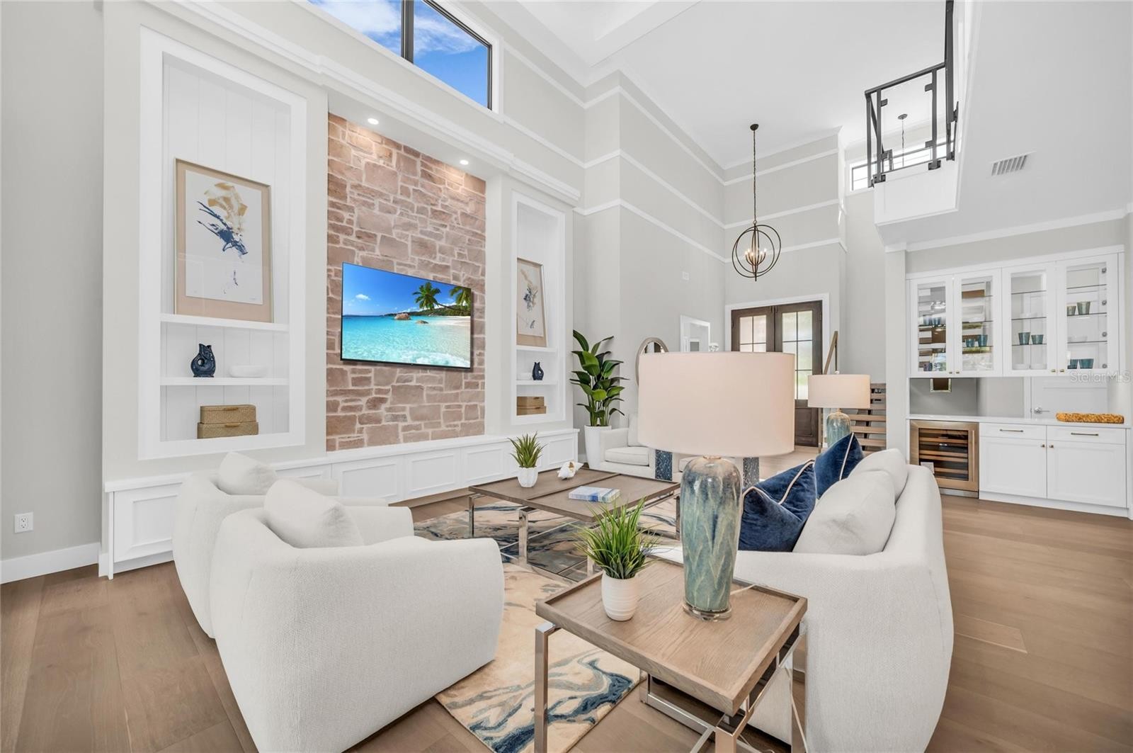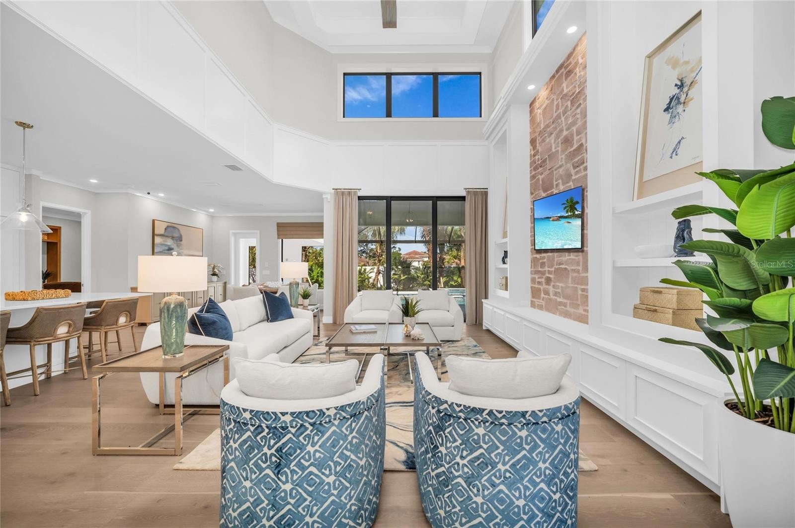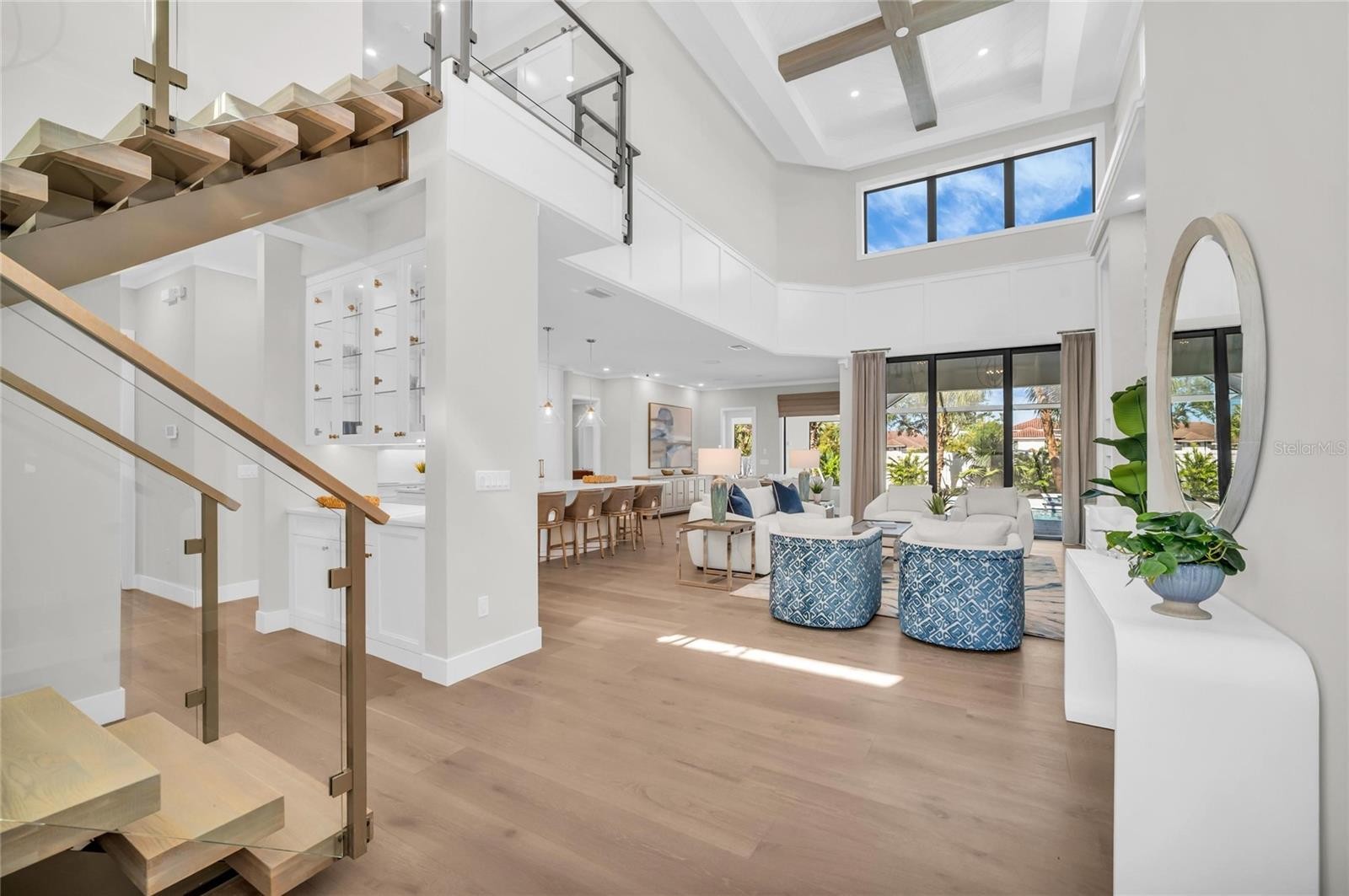 The highly-acclaimed team of professionals at Allegra Homes has yet again created a vision of luxury, elegance and simplistic functionality. A dynamic 4,224 sq. ft. open layout is rich in gorgeous details everywhere you turn. Feast your eyes on the “St. Michael,” a two-story beauty with stunning curb appeal and exciting interiors thoughtfully designed for grand-scale living. In addition to 4 bedrooms, there’s also a separate 254 sq. ft. casita ideally suited for in-laws or guests wanting to enjoy the fantastic Florida ambiance just a little longer. The extended foyer and great room feature an amazing 21-ft ceiling and invite you into a fascinating space with see-thru views out to the magnificent outdoors. Step into the heart of the home, where the great room exudes warmth and sophistication. A wood-beamed ceiling adds character and warmth, while clerestory windows flood the space with natural light, creating an inviting and airy ambiance. Triple sliders seamlessly connect the indoors to the covered poolside lanai. In the family room, a stunning stone-faced center wall serves as the focal point, flanked by built-in shelving with elegant lighting. The consummate chef will delight in the variety of accoutrements offered in this delectable space honed to perfection. A large stone-topped island easily seats 5 and the premium appliance package encompasses a 36” Wolf gas induction cooktop, a 42” Sub-Zero fridge, a Wolf oven with matching drop-down microwave, an ASKO dishwasher, a Sub-Zero wine cooler, and adequate counter and storage space including a pantry. Adding stylish flair to the dining room is a built-in buffet with full mirrored wall and wide windows overlooking the tropical pool setting. A separate dry bar with pass-thru is convenient to both the great room and kitchen for ease of serving family and friends. Overlooking the pool is a bonus room with a pool bath and wall of pocketing sliders opening wide to a covered 545 sq. ft. outdoor oasis with tongue-and-groove ceiling, nicely equipped summer kitchen, and abundant room for both dining and lounging. The pavered lanai is enclosed with ClearView screening and includes a 25’x19’ heated pool with 6 stepping pads, spill over spa, sun shelf, LED bubbler, salt conversion generator and Pebble Tec finish. The owner’s wing, with an adjacent study, may become your most prized room of the home with its drop tray ceiling, spacious seating area, soaking tub inside an exquisite large glass shower, separate dual vanities and water closet. An additional bonus room with wet bar, two bedrooms and a bath are located upstairs. Other honorable mentions include a 3-car garage with epoxy floor, tankless gas water heater, 10-ft ceilings, modern staircase with floating steps, recessed lighting, crown molding, brick paver drive and walkway, 8’ interior solid core doors, professionally landscaped, and irrigation system. Poised on over a 1/3 acre lot in prestigious Harbor Acres with a sought-after central location near the arts, entertainment, dining, shopping, beaches, boating, golf and other year-round adventures. For families with elementary school-age children, top-ranked Southside School celebrates 120 years of excellence in academic achievement. This stately new residence has been masterfully crafted inside and out, and will add a sense of pride and joy to an already perfect lifestyle.