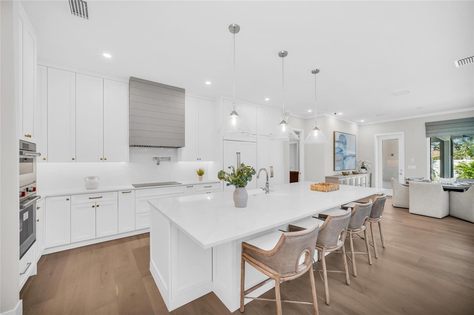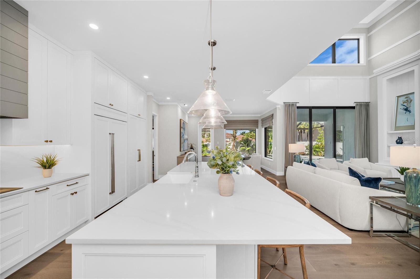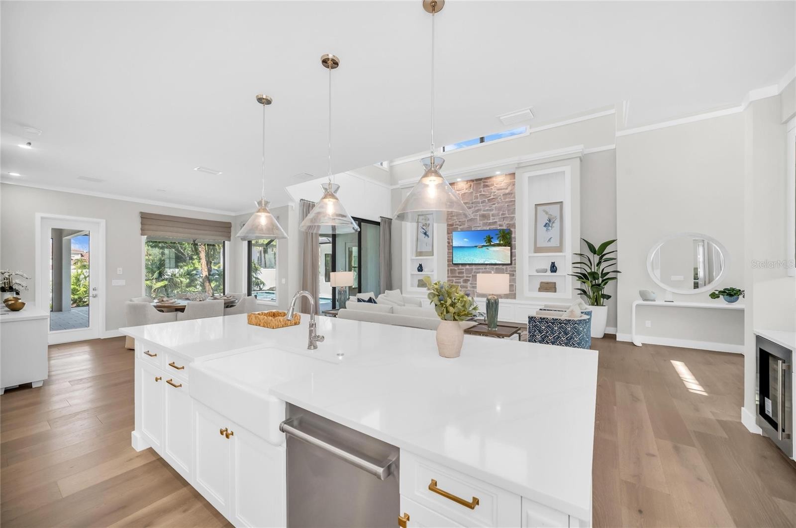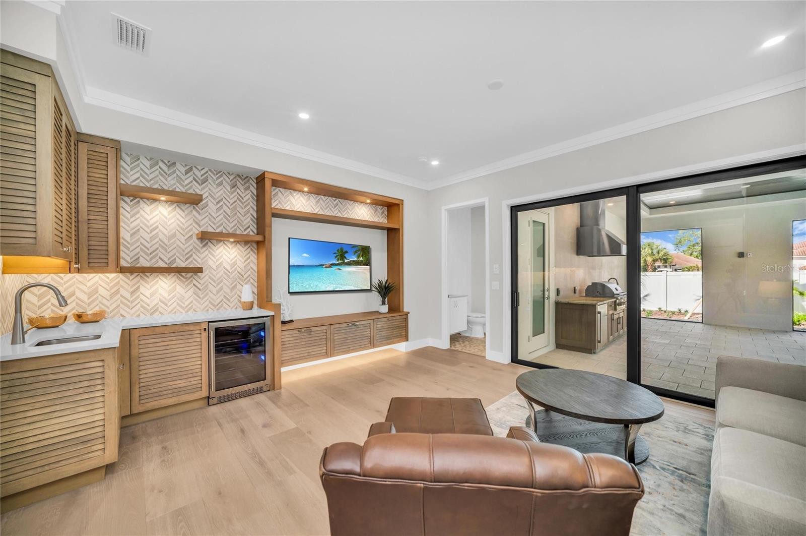 The highly-acclaimed team of professionals at Allegra Homes has yet again created a vision of luxury, elegance and simplistic functionality. A dynamic 4,224 sq. ft. open layout is rich in gorgeous details everywhere you turn. Feast your eyes on the “St. Michael,” a two-story beauty with stunning curb appeal and exciting interiors thoughtfully designed for grand-scale living. In addition to 4 bedrooms, there’s also a separate 254 sq. ft. casita ideally suited for in-laws or guests wanting to enjoy the fantastic Florida ambiance just a little longer. The extended foyer and great room feature an amazing 21-ft ceiling and invite you into a fascinating space with see-thru views out to the magnificent outdoors. Step into the heart of the home, where the great room exudes warmth and sophistication. A wood-beamed ceiling adds character and warmth, while clerestory windows flood the space with natural light, creating an inviting and airy ambiance. Triple sliders seamlessly connect the indoors to the covered poolside lanai. In the family room, a stunning stone-faced center wall serves as the focal point, flanked by built-in shelving with elegant lighting. The consummate chef will delight in the variety of accoutrements offered in this delectable space honed to perfection. A large stone-topped island easily seats 5 and the premium appliance package encompasses a 36” Wolf gas induction cooktop, a 42” Sub-Zero fridge, a Wolf oven with matching drop-down microwave, an ASKO dishwasher, a Sub-Zero wine cooler, and adequate counter and storage space including a pantry. Adding stylish flair to the dining room is a built-in buffet with full mirrored wall and wide windows overlooking the tropical pool setting. A separate dry bar with pass-thru is convenient to both the great room and kitchen for ease of serving family and friends. Overlooking the pool is a bonus room with a pool bath and wall of pocketing sliders opening wide to a covered 545 sq. ft. outdoor oasis with tongue-and-groove ceiling, nicely equipped summer kitchen, and abundant room for both dining and lounging. The pavered lanai is enclosed with ClearView screening and includes a 25’x19’ heated pool with 6 stepping pads, spill over spa, sun shelf, LED bubbler, salt conversion generator and Pebble Tec finish. The owner’s wing, with an adjacent study, may become your most prized room of the home with its drop tray ceiling, spacious seating area, soaking tub inside an exquisite large glass shower, separate dual vanities and water closet. An additional bonus room with wet bar, two bedrooms and a bath are located upstairs. Other honorable mentions include a 3-car garage with epoxy floor, tankless gas water heater, 10-ft ceilings, modern staircase with floating steps, recessed lighting, crown molding, brick paver drive and walkway, 8’ interior solid core doors, professionally landscaped, and irrigation system. Poised on over a 1/3 acre lot in prestigious Harbor Acres with a sought-after central location near the arts, entertainment, dining, shopping, beaches, boating, golf and other year-round adventures. For families with elementary school-age children, top-ranked Southside School celebrates 120 years of excellence in academic achievement. This stately new residence has been masterfully crafted inside and out, and will add a sense of pride and joy to an already perfect lifestyle.