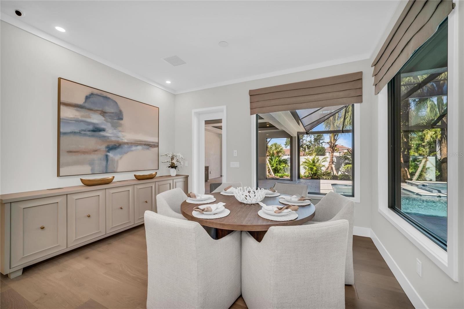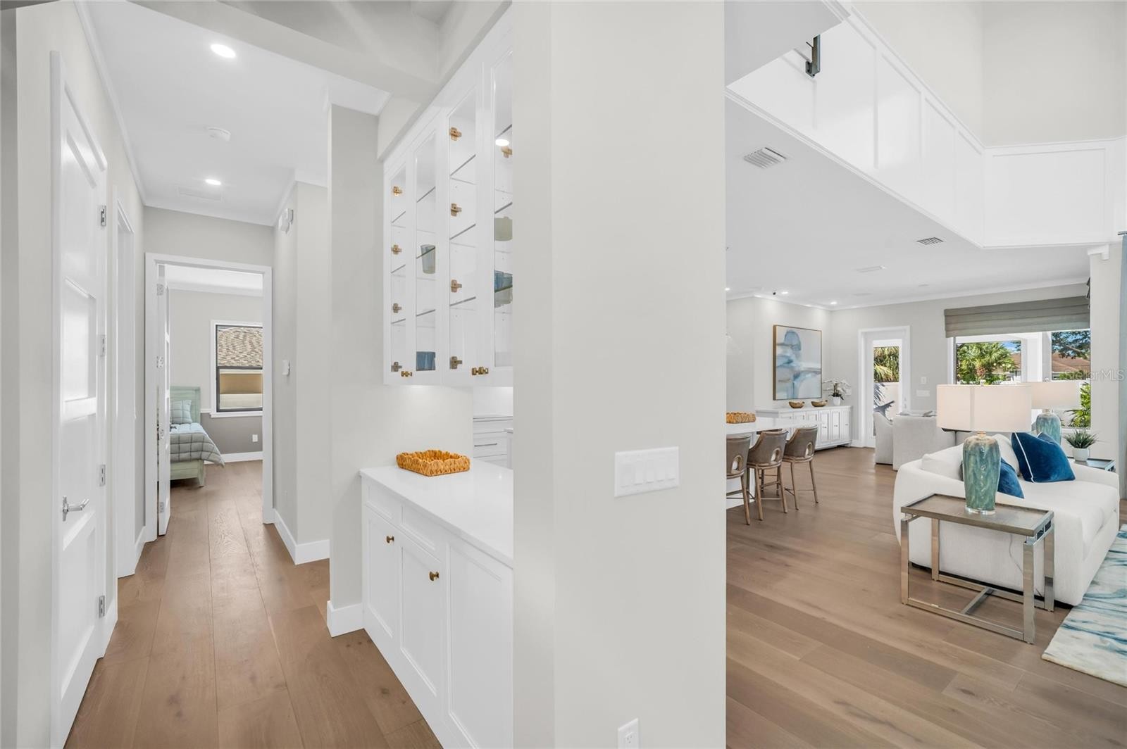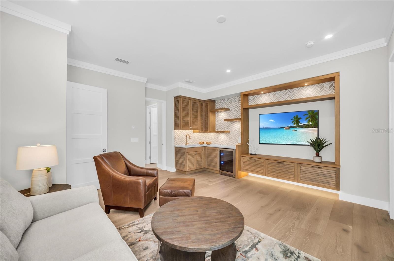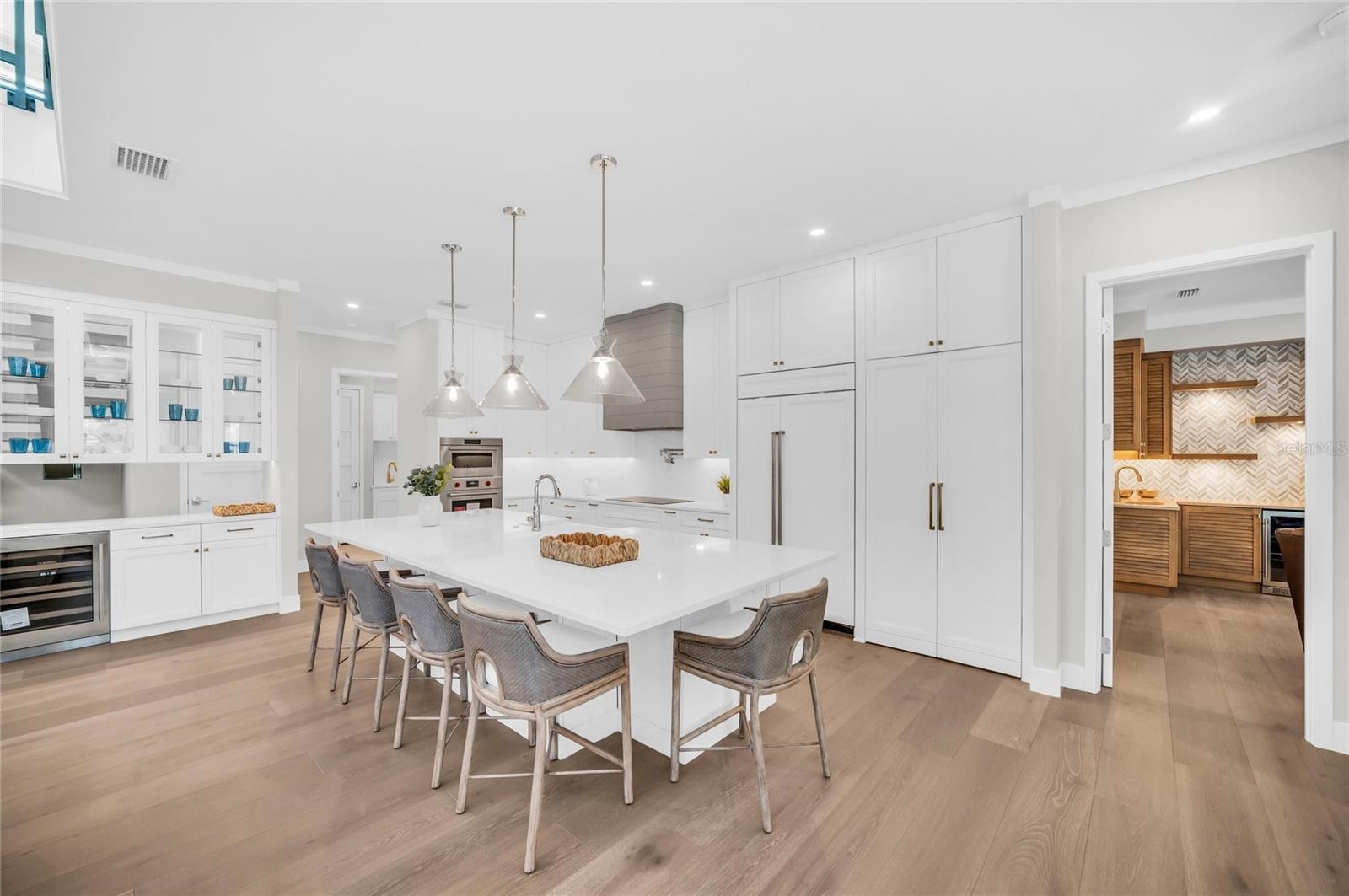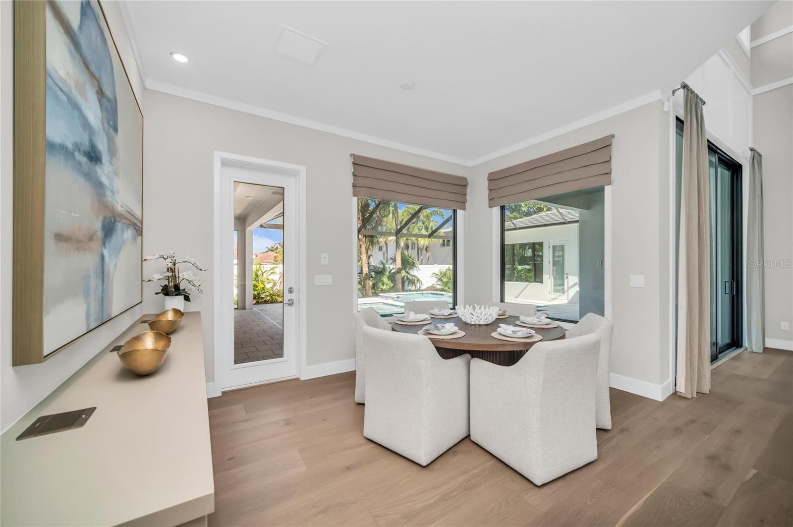 The highly-acclaimed team of professionals at Allegra Homes has yet again created a vision of luxury, elegance and simplistic functionality. A dynamic 4,224 sq. ft. open layout is rich in gorgeous details everywhere you turn. Feast your eyes on the “St. Michael,” a two-story beauty with stunning curb appeal and exciting interiors thoughtfully designed for grand-scale living. In addition to 4 bedrooms, there’s also a separate 254 sq. ft. casita ideally suited for in-laws or guests wanting to enjoy the fantastic Florida ambiance just a little longer. The extended foyer and great room feature an amazing 21-ft ceiling and invite you into a fascinating space with see-thru views out to the magnificent outdoors. Step into the heart of the home, where the great room exudes warmth and sophistication. A wood-beamed ceiling adds character and warmth, while clerestory windows flood the space with natural light, creating an inviting and airy ambiance. Triple sliders seamlessly connect the indoors to the covered poolside lanai. In the family room, a stunning stone-faced center wall serves as the focal point, flanked by built-in shelving with elegant lighting. The consummate chef will delight in the variety of accoutrements offered in this delectable space honed to perfection. A large stone-topped island easily seats 5 and the premium appliance package encompasses a 36” Wolf gas induction cooktop, a 42” Sub-Zero fridge, a Wolf oven with matching drop-down microwave, an ASKO dishwasher, a Sub-Zero wine cooler, and adequate counter and storage space including a pantry. Adding stylish flair to the dining room is a built-in buffet with full mirrored wall and wide windows overlooking the tropical pool setting. A separate dry bar with pass-thru is convenient to both the great room and kitchen for ease of serving family and friends. Overlooking the pool is a bonus room with a pool bath and wall of pocketing sliders opening wide to a covered 545 sq. ft. outdoor oasis with tongue-and-groove ceiling, nicely equipped summer kitchen, and abundant room for both dining and lounging. The pavered lanai is enclosed with ClearView screening and includes a 25’x19’ heated pool with 6 stepping pads, spill over spa, sun shelf, LED bubbler, salt conversion generator and Pebble Tec finish. The owner’s wing, with an adjacent study, may become your most prized room of the home with its drop tray ceiling, spacious seating area, soaking tub inside an exquisite large glass shower, separate dual vanities and water closet. An additional bonus room with wet bar, two bedrooms and a bath are located upstairs. Other honorable mentions include a 3-car garage with epoxy floor, tankless gas water heater, 10-ft ceilings, modern staircase with floating steps, recessed lighting, crown molding, brick paver drive and walkway, 8’ interior solid core doors, professionally landscaped, and irrigation system. Poised on over a 1/3 acre lot in prestigious Harbor Acres with a sought-after central location near the arts, entertainment, dining, shopping, beaches, boating, golf and other year-round adventures. For families with elementary school-age children, top-ranked Southside School celebrates 120 years of excellence in academic achievement. This stately new residence has been masterfully crafted inside and out, and will add a sense of pride and joy to an already perfect lifestyle.