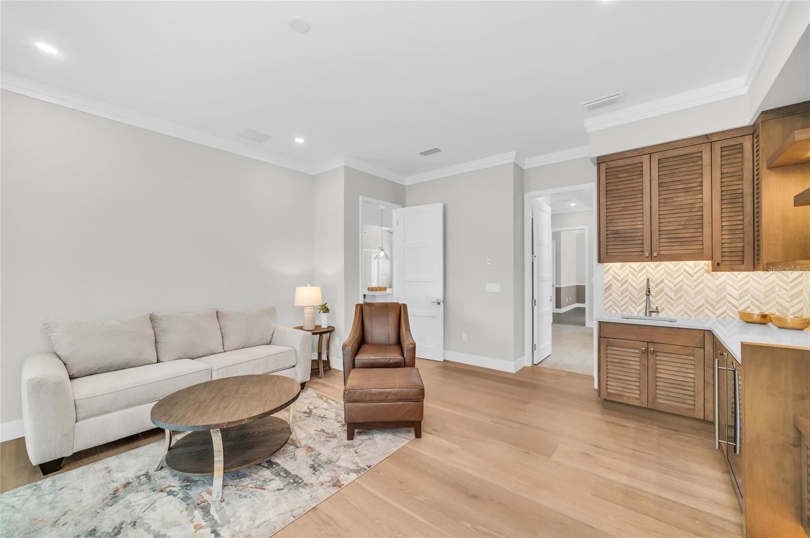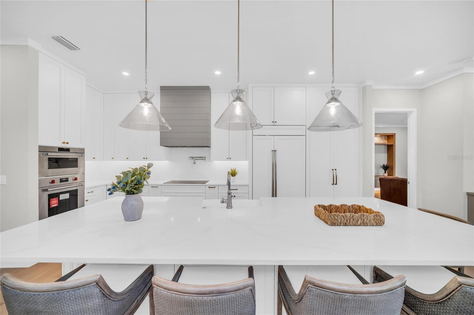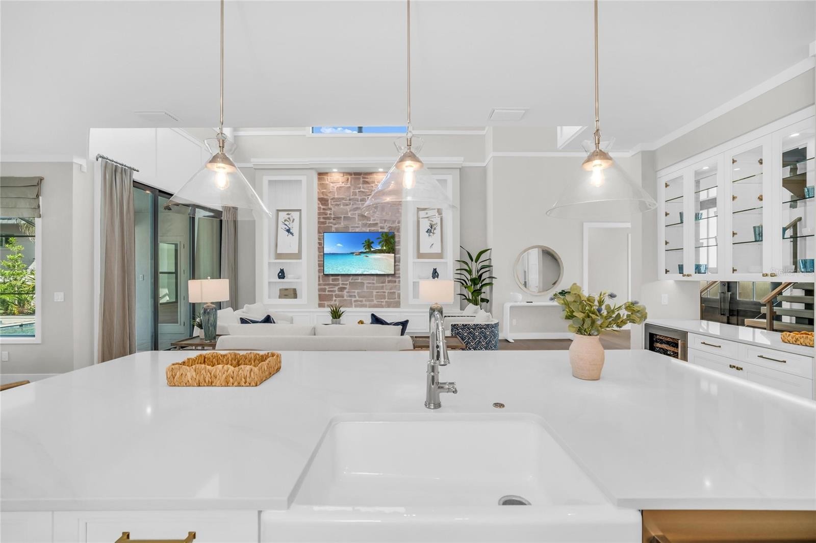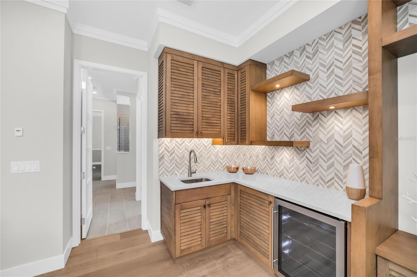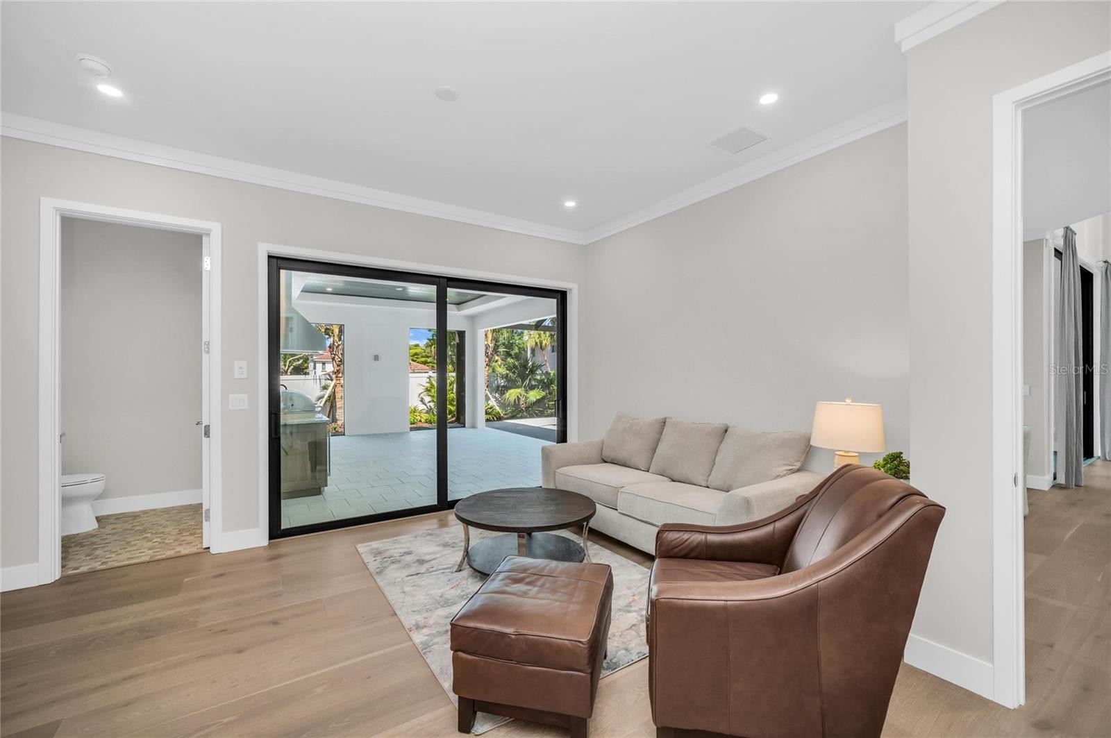 The highly-acclaimed team of professionals at Allegra Homes has yet again created a vision of luxury, elegance and simplistic functionality. A dynamic 4,224 sq. ft. open layout is rich in gorgeous details everywhere you turn. Feast your eyes on the “St. Michael,” a two-story beauty with stunning curb appeal and exciting interiors thoughtfully designed for grand-scale living. In addition to 4 bedrooms, there’s also a separate 254 sq. ft. casita ideally suited for in-laws or guests wanting to enjoy the fantastic Florida ambiance just a little longer. The extended foyer and great room feature an amazing 21-ft ceiling and invite you into a fascinating space with see-thru views out to the magnificent outdoors. Step into the heart of the home, where the great room exudes warmth and sophistication. A wood-beamed ceiling adds character and warmth, while clerestory windows flood the space with natural light, creating an inviting and airy ambiance. Triple sliders seamlessly connect the indoors to the covered poolside lanai. In the family room, a stunning stone-faced center wall serves as the focal point, flanked by built-in shelving with elegant lighting. The consummate chef will delight in the variety of accoutrements offered in this delectable space honed to perfection. A large stone-topped island easily seats 5 and the premium appliance package encompasses a 36” Wolf gas induction cooktop, a 42” Sub-Zero fridge, a Wolf oven with matching drop-down microwave, an ASKO dishwasher, a Sub-Zero wine cooler, and adequate counter and storage space including a pantry. Adding stylish flair to the dining room is a built-in buffet with full mirrored wall and wide windows overlooking the tropical pool setting. A separate dry bar with pass-thru is convenient to both the great room and kitchen for ease of serving family and friends. Overlooking the pool is a bonus room with a pool bath and wall of pocketing sliders opening wide to a covered 545 sq. ft. outdoor oasis with tongue-and-groove ceiling, nicely equipped summer kitchen, and abundant room for both dining and lounging. The pavered lanai is enclosed with ClearView screening and includes a 25’x19’ heated pool with 6 stepping pads, spill over spa, sun shelf, LED bubbler, salt conversion generator and Pebble Tec finish. The owner’s wing, with an adjacent study, may become your most prized room of the home with its drop tray ceiling, spacious seating area, soaking tub inside an exquisite large glass shower, separate dual vanities and water closet. An additional bonus room with wet bar, two bedrooms and a bath are located upstairs. Other honorable mentions include a 3-car garage with epoxy floor, tankless gas water heater, 10-ft ceilings, modern staircase with floating steps, recessed lighting, crown molding, brick paver drive and walkway, 8’ interior solid core doors, professionally landscaped, and irrigation system. Poised on over a 1/3 acre lot in prestigious Harbor Acres with a sought-after central location near the arts, entertainment, dining, shopping, beaches, boating, golf and other year-round adventures. For families with elementary school-age children, top-ranked Southside School celebrates 120 years of excellence in academic achievement. This stately new residence has been masterfully crafted inside and out, and will add a sense of pride and joy to an already perfect lifestyle.