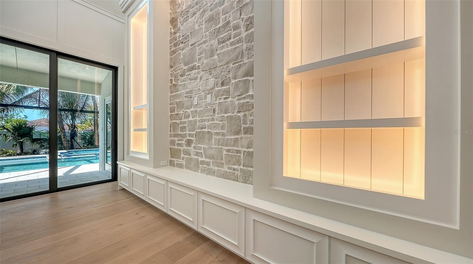 Under Construction. The highly-acclaimed team of professionals at Allegra Homes has yet again created a vision of luxury, elegance and simplistic functionality. A dynamic 4,224 sq. ft. open layout is rich in gorgeous details everywhere you turn. Feast your eyes on the “St. Michael,” a two-story beauty with stunning curb appeal and exciting interiors thoughtfully designed for grand-scale living. In addition to 4 bedrooms, there’s also a separate 254 sq. ft. casita ideally suited for in-laws or guests wanting to enjoy the fantastic Florida ambiance just a little longer. The extended foyer and great room feature an amazing 21-ft ceiling and invite you into a fascinating space with see-thru views out to the magnificent outdoors. Step into the heart of the home, where the great room exudes warmth and sophistication. A wood-beamed ceiling adds character and warmth, while clerestory windows flood the space with natural light, creating an inviting and airy ambiance. Triple sliders seamlessly connect the indoors to the covered poolside lanai. In the family room, a stunning stone-faced center wall serves as the focal point, flanked by built-in shelving with elegant lighting. The consummate chef will delight in the variety of accoutrements offered in this delectable space honed to perfection. A large stone-topped island easily seats 5 and the premium appliance package encompasses a 36” Wolf gas induction cooktop, a 42” Sub-Zero fridge, a Wolf oven with matching drop-down microwave, an ASKO dishwasher, a Sub-Zero wine cooler, and adequate counter and storage space including a pantry. Adding stylish flair to the dining room is a built-in buffet with full mirrored wall and wide windows overlooking the tropical pool setting. A separate dry bar with pass-thru is convenient to both the great room and kitchen for ease of serving family and friends. Overlooking the pool is a bonus room with a pool bath and wall of pocketing sliders opening wide to a covered 545 sq. ft. outdoor oasis with tongue-and-groove ceiling, nicely equipped summer kitchen, and abundant room for both dining and lounging. The pavered lanai is enclosed with ClearView screening and includes a 25’x19’ heated pool with 6 stepping pads, spill over spa, sun shelf, LED bubbler, salt conversion generator and Pebble Tec finish. The owner’s wing, with an adjacent study, may become your most prized room of the home with its drop tray ceiling, spacious seating area, soaking tub inside an exquisite large glass shower, separate dual vanities and water closet. An additional bonus room with wet bar, two bedrooms and a bath are located upstairs. Other honorable mentions include a 3-car garage with epoxy floor, tankless gas water heater, 10-ft ceilings, modern staircase with floating steps, recessed lighting, crown molding, brick paver drive and walkway, 8’ interior solid core doors, professionally landscaped, and irrigation system. Poised on over a 1/3 acre lot in prestigious Harbor Acres with a sought-after central location near the arts, entertainment, dining, shopping, beaches, boating, golf and other year-round adventures. For families with elementary school-age children, top-ranked Southside School celebrates 120 years of excellence in academic achievement. This stately new residence has been masterfully crafted inside and out, and will add a sense of pride and joy to an already perfect lifestyle.