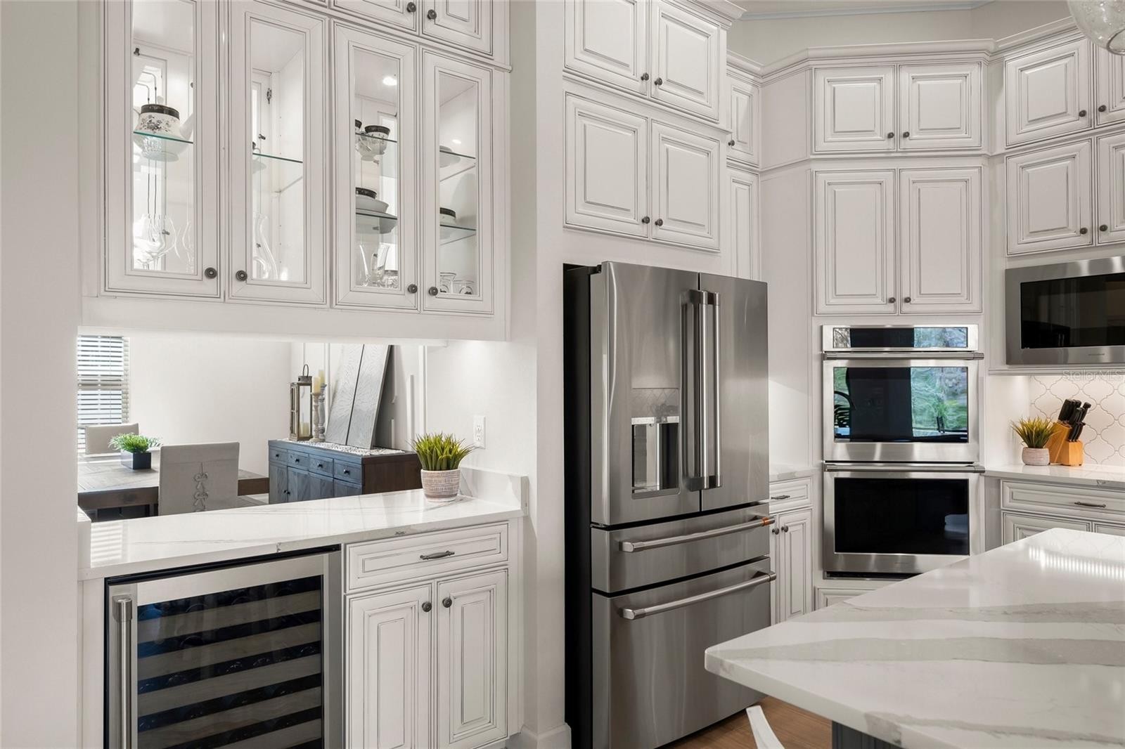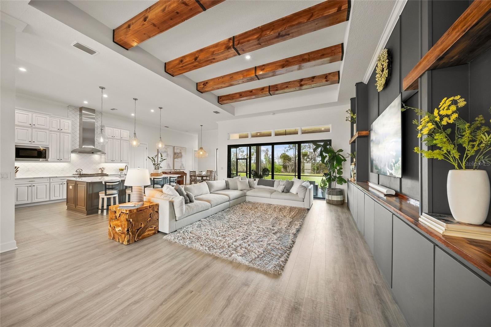 4 Bedroom 4 Full Bath, 2 Half Bath Beacon floor plan with upstairs bonus room, office, and the largest yard in Azario complete with full GOLF MEMBERSHIP! Featuring an oversized kitchen island with additional storage, Level 7 upper and lower cabinetry with custom pull-outs, Level 6 Cambria quartz countertops, GE Monogram stainless steel appliances including a 4-burner gas cooktop with griddle, range hood, and wall-mounted double ovens, custom wood shelving in the walk-in pantry, tile backsplash, breakfast nook with aquarium window and upgraded chandelier, dry bar with glass-inlay upper cabinets and wine fridge, under-cabinet lighting, upgraded pendant lighting, trash pull-out, and an oversized undermount sink. Exterior highlights include wood tongue-and-groove accent ceilings at the front entry and extended lanai, the deepest and largest backyard in the neighborhood with preserve views and eligibility to be fenced with HOA/ARC approval, impact glass windows at the front of the home, modern glass double front doors, an extended paver driveway, and a side-load garage with extended electrical wiring for EV charging and epoxy flooring. Interior upgrades include a living room with a custom TV wall, built-in shelving and cabinetry, tray ceiling with faux wood beams, and transom windows above the sliders, a primary suite with tray ceiling and faux wood beams, accent wall, custom walk-in closets, and an ensuite bath with dual sinks, upgraded lighting, granite countertops, and an oversized double shower with dual shower heads and rain showers, an office with custom shelving and storage cabinets, glass French doors, and tray ceiling, a dining room with an elegant accent wall and statement chandelier, a whole-house surge protector, oversized secondary bedrooms each with an ensuite full bath and walk-in closet with upgraded wood shelving, laminate flooring, a huge upstairs bonus room, a spacious laundry room with custom cabinetry, shelving, and utility sink, and a powder room for guests. ESPLANADE AT AZARIO is the best resort community in Lakewood Ranch featuring 18-Hole Championship Golf Course, Pro Shop & Bunker Bar, Aqua Driving Range, Full-Time Activities Director, Resort-Style Pool & Bahama Bar, Spa/Wellness Center, Culinary Center w/ Teaching Kitchen, State-of-the-Art Fitness Center, Sports Courts, Clubhouse, 16 Pickleball Courts, 6 Har-Tru Tennis, Bocce Ball, Flex Space for Gaming, Meetings & Activity Center, Walking Trails, Dog Park, Community Garden, Fire Pit Area, PGA Pro Golf and Tennis Pro, Clubs, Social & Signature Events. The community is ideally located near everything the area has to offer, including restaurants, bars, nightlife, grocery stores, gyms, Lakewood Ranch Main Street, Waterside Place, and The Mall at UTC with its extensive shopping and dining. This location also offers convenient access to Sarasota-Bradenton International Airport, Tampa International Airport, and the Gulf Coast's renowned beaches.