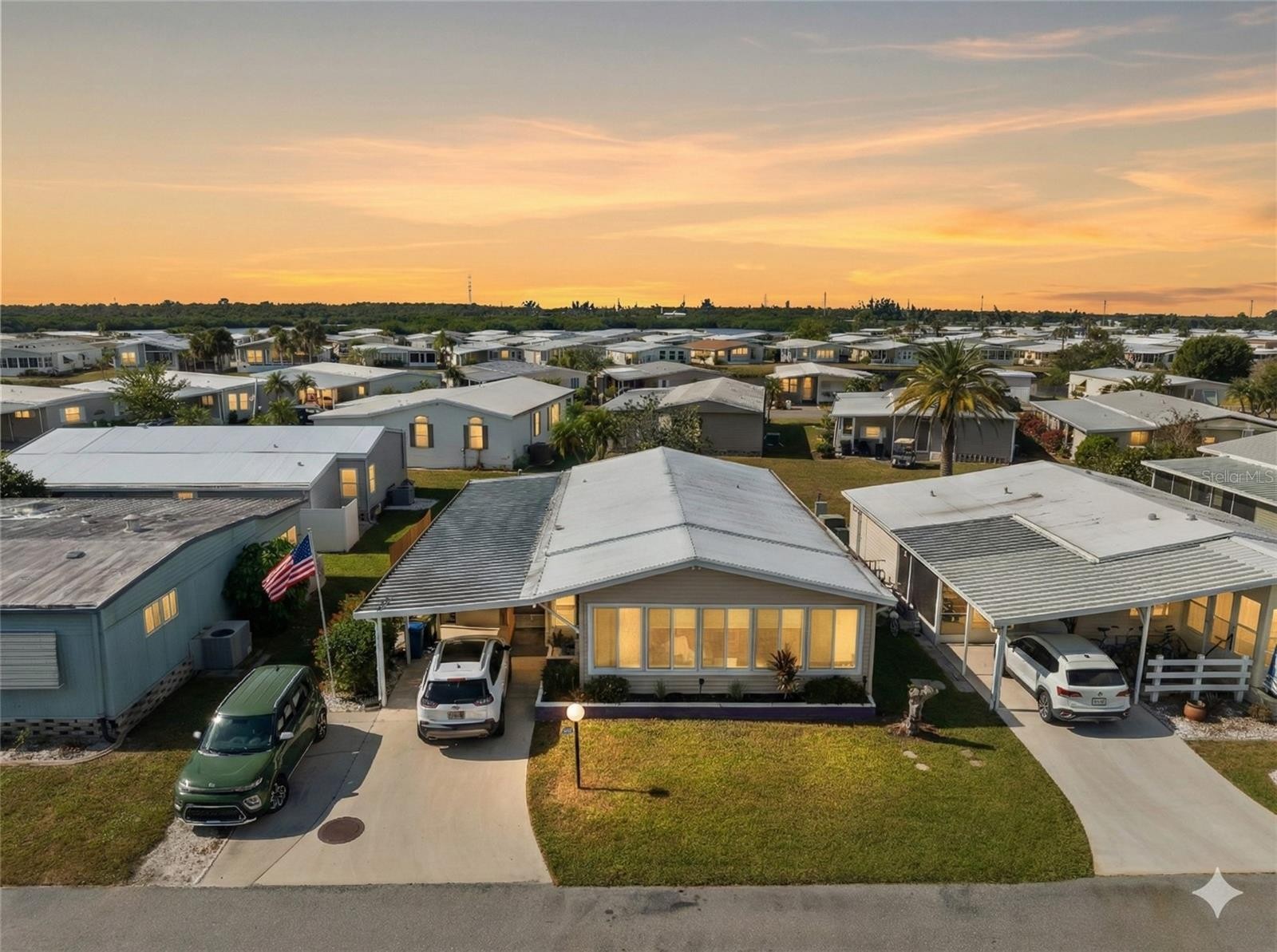 One or more photo(s) has been virtually staged. 154 Rarotonga Road in North Port, Florida, is a charming and well-cared-for manufactured home in the desirable 55+ waterfront community of Lazy River Village. There is no land rent—the community is resident-owned. This spacious 2-bedroom, 2-bath residence is filled with personality and functionality, offering bright, colorful living spaces and thoughtful updates throughout. The enclosed Florida room spans the width of the home, creating a perfect space for relaxing with a book or enjoying the Florida sunshine from the comfort of indoors. The large primary suite includes ample closet space and an en-suite bathroom, while the second bedroom is ideal for guests, crafts, or an office. Both bathrooms feature tasteful finishes and plenty of storage. Outside, the home offers a double driveway with a covered carport, a low-maintenance yard, and a cozy backyard patio area ready for grilling or lounging. The community itself is packed with amenities including a marina with boat slips, heated pool, tennis and pickleball courts, fitness center, and an active clubhouse with year-round events—all within minutes of Gulf beaches, shopping, and dining. This is more than a home—it’s a lifestyle. Book your showing today and see what Lazy River Village living is all about!