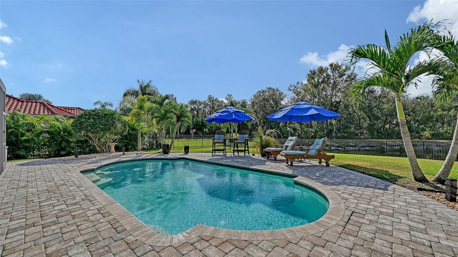 Enjoy the Best of Both Worlds — Country Living Just Minutes from Pristine Beaches! Twin River is a unique & beautiful community with large lots with room between homes, multiple playgrounds, basketball, soccer, picnic pavilions, nature trails and much more all with low HOA fees and NO CDD fees!! This exceptional estate home, set on over half an acre, offers true indoor–outdoor Florida living. With a southern-exposure lanai and pool area overlooking a peaceful pond and private wooded preserve, you’ll enjoy sun-soaked days, tranquil views, and total privacy. The expansive panoramic screened porch seamlessly blends the outdoors with your covered lanai, providing two inviting seating areas perfect for entertaining or unwinding. Step inside through the impressive 8' Therma-Tru hurricane-rated double doors and instantly feel the luxury. The spacious family room features a floor-to-ceiling stone fireplace wall, complete with a recessed TV niche for a clean, modern look. The gourmet kitchen is a chef’s dream, offering soft-close wood cabinetry with 42" uppers, under-cabinet lighting, a double-sided island, bar-height granite counters, and a walk-in pantry with built-in shelving. The sunny breakfast nook comfortably seats six. Retreat to the elegant primary suite with dual granite vanities, a large linen closet, a separate walk-in shower, a freestanding soaking tub, and a private water closet. Guest bedrooms 2 and 3 are thoughtfully positioned on the opposite side of the home for privacy, along with a full guest bath featuring a dual vanity and linen closet. The well-appointed laundry room includes a sink and generous storage. Travertine flooring flows through main living and wet areas, while all four bedrooms feature engineered hardwood. The interior was recently painted in warm earth tones, highlighted by crown molding in the main living areas, primary suite, and front bedroom/office. Abundant hurricane-impact windows bring in natural light and are dressed with custom wood plantation shutters. The sliding glass doors and garage doors are also hurricane-rated. Additional upgrades include new garage door openers and Icynene spray-foam insulation in the attic of both the home and garage, ensuring comfort and energy efficiency year-round. Car enthusiasts and hobbyists will love the oversized garage, finished with premium RaceDeck flooring and plenty of space for all your Florida toys. A long driveway provides ample guest parking, and the refreshed landscaping features easy-care plantings. The sparkling pool includes deck fountains, offering a relaxing ambiance. Residents enjoy access to a community boat ramp on the Manatee River, perfect for launching kayaks, canoes, or boats for a day on the water. Be sure to explore the virtual tour and experience the “Country WOW Factor” for yourself! ________________________________________