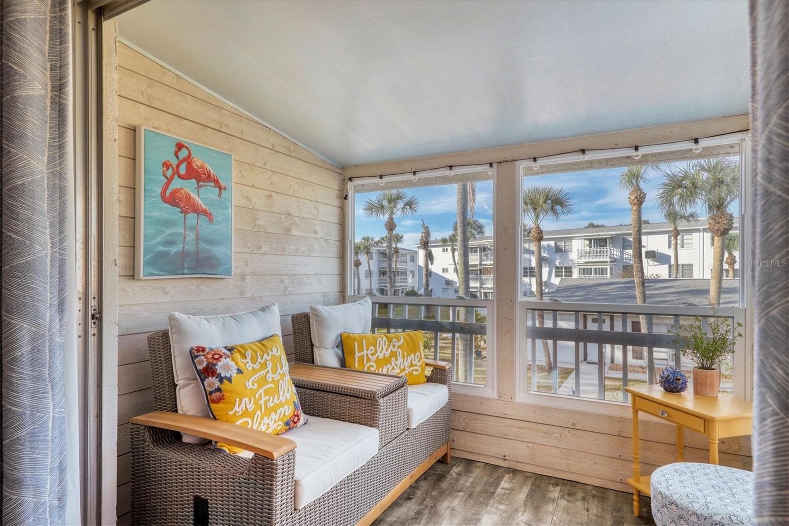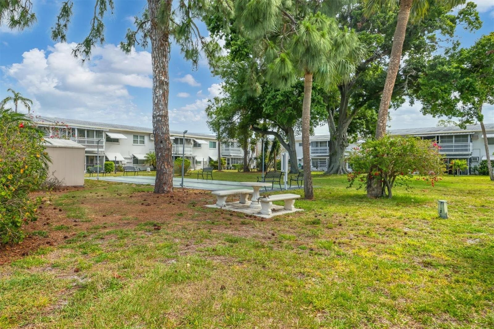 CORNER UNIT WITH BEAUTIFUL POOL VIEWS! Don’t miss this rare opportunity in Bayshore Gardens! This stunning, updated 2-bedroom, 1-bath second-floor corner unit offers peaceful pool views from your private lanai. Bright and airy, the home is filled with natural light and features a modern kitchen with newer cabinetry and elegant quartz countertops—perfect for everyday living and entertaining. The open-concept layout seamlessly connects the dining area, living room, and lanai, all enhanced by new wood laminate flooring throughout. Both bedrooms share a spacious hall bath with a shower/tub combination and a brand-new vanity. Enjoy the convenience of a parking space right in front of your unit, plus an additional outdoor storage closet. Hurricane impact windows provide added comfort and peace of mind. Located in a desirable 55+ community, this home offers privacy while still being just steps from the pool and clubhouse. With LOW condo fees of only $298 a month, it’s an exceptional value! Ideally situated near the Bayshore Gardens Shopping Center—featuring Publix, Target, Bank of America, and Scarpino’s Italian Restaurant—and just a short drive to the beautiful beaches of Bradenton and Anna Maria Island. This one won’t last—schedule your showing today!