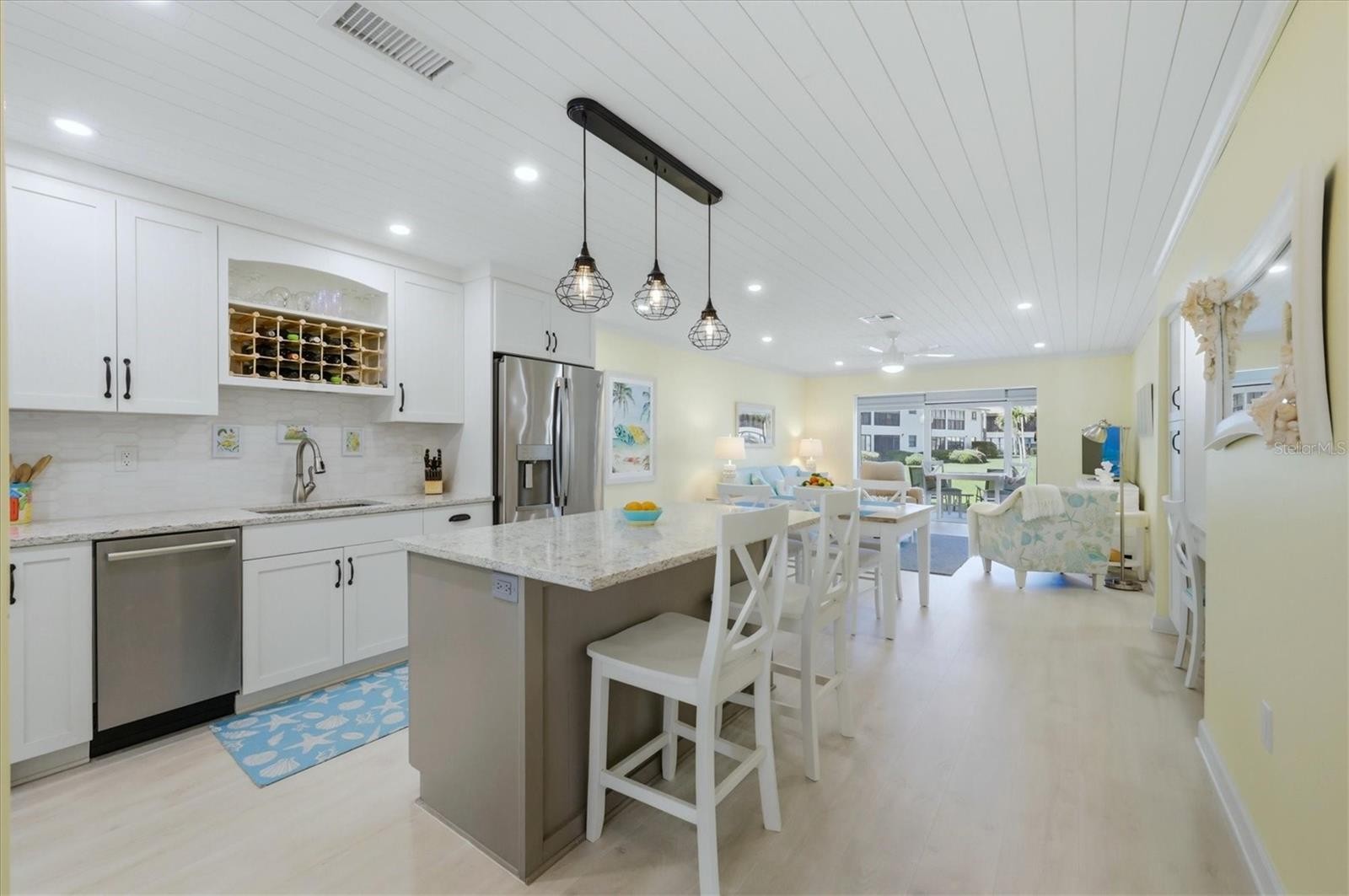SELLER MOTIVATED! Owner financing available. Seller willing to pay 2026 condo fees at closing with accepted offer. Welcome to this beautifully updated, "turnkey" gem located in the highly desirable beachfront community of Bahia Vista Gulf (BVG), one of the few 1st floor units in the area that didn’t experience flooding in 2024! Perfectly positioned on Venice Island, this stylish condo offers both modern updates and an unbeatable location. Step inside to discover a fully renovated interior, featuring laminate flooring, LED recessed lighting (2024), and a stunning Shiplap ceiling and accent wall (2024) that add a touch of elegance. The newly installed decorative ceiling fan (2024) creates a cozy atmosphere, while the floor-to-ceiling storage cabinets (2024) provide ample space for your belongings, along with 2 full closets and an additional 6' X 6' storage unit. The kitchen is a true showstopper with stone countertops, a stainless steel sink, and an updated Delta faucet (2024). Enjoy cooking with the latest appliances, including a Café 3-in-1 Air Fryer/Convection Oven/Microwave (2024), a cooktop induction stove (2024), and a sleek, brand-new refrigerator (2024). The updated backsplash (2024) ties it all together, creating a stylish, functional cooking space. The bathroom has also been tastefully updated in 2024 with quartz counters and a Flexstone shower/bath that exudes both luxury and practicality. You’ll also find an Equator ventless all-in-one washer/dryer, offering the convenience of laundry in the comfort of your own home. There is also a community laundry available for your convenience. Enjoy the outdoors on your private patio, featuring low-maintenance artificial turf with brick pavers underneath. The Miami-storm grade 3-sectional sliding glass doors (2024) open from both sides, creating a seamless flow from indoor to outdoor living. Additional features include matteblack accent hinges and door handles (2024), Ring Eufy entryway doorbell (2024), water heater (2021), and AC (2021), ensuring peace of mind and comfort. The BVG community offers boat dock slips on the canal side for lease on an annual basis (call for availability). A community pool that was completely renovated in 2025 adding to the value and appeal of this incredible property. You’ll be steps from the beach and the iconic Venice Jetties, offering breathtaking sunsets and world-class beach access. Take a short walk to Venice Ave, where you’ll find an array of shopping and dining options to enjoy year-round. If you love the beach life, this is the perfect opportunity to own a meticulously updated, flood-free condo in one of the most sought-after locations in Venice!