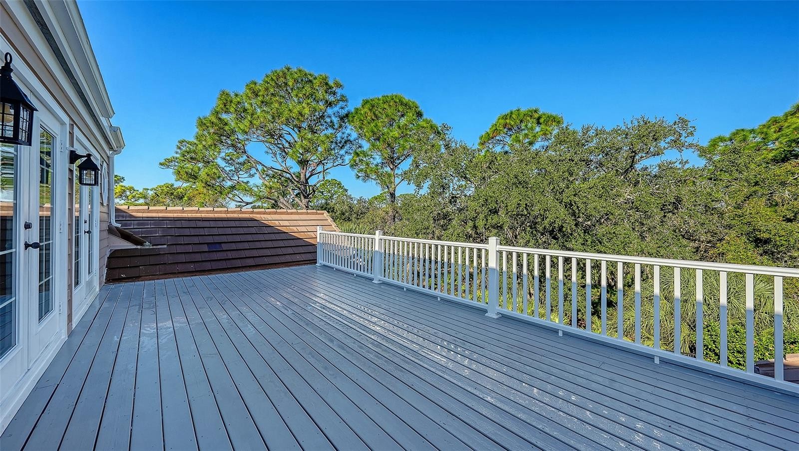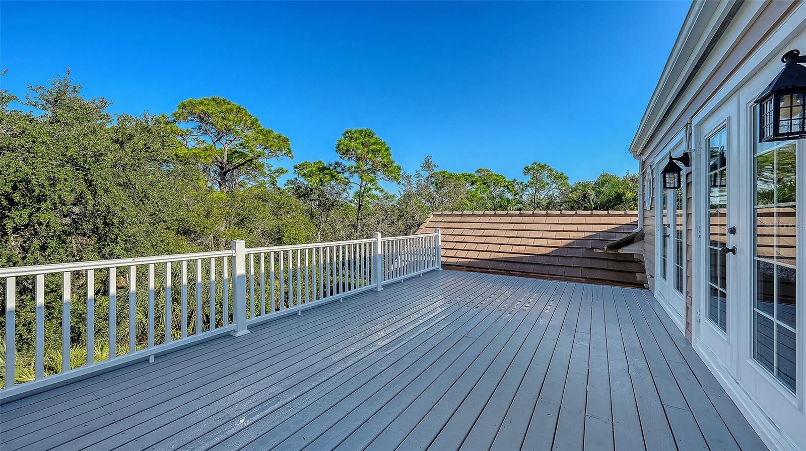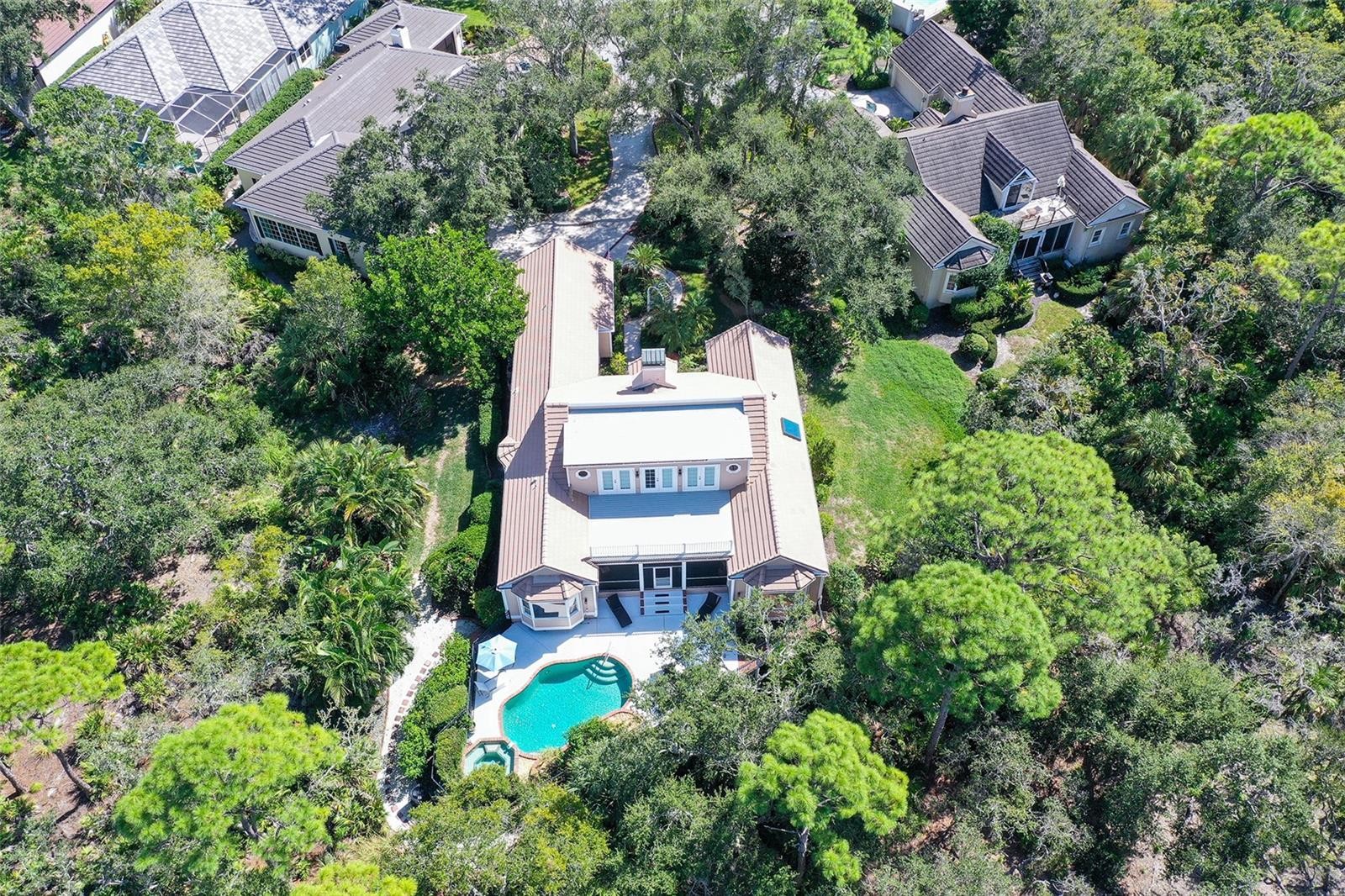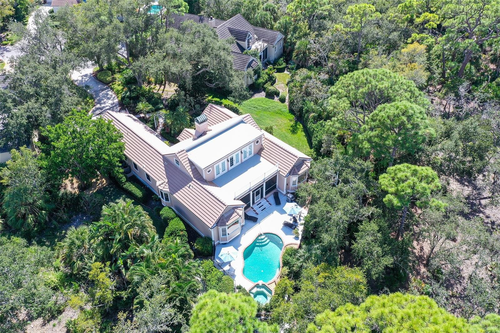 This stunning 3 bedroom, 3.5 bath home, designed by the renowned architect Frank Folsom Smith, stands out with its unique design. The charming Cape Cod style sets the stage for comfortable, graceful living. The home features a Sonos surround sound throughout. The backyard, overlooking the preserve, is a quiet sanctuary, where you can enjoy the open air, freeform pool with spa in complete privacy. The whole-house stereo system goes out to the enclosed back patio, making a lovely place to sit and enjoy a peaceful, rare rainy afternoon with a good book and a cuppa. There is an additional 732 square feet of outdoor deck space off the second floor and rooftop. Recent renovations in 2023 include two main bathrooms with high-end decorator tile, premium glass enclosures, and premium plumbing fixtures, including an elegant standalone bathtub. The powder room has also been completely renovated. The kitchen boasts new ceramic tile floors, backsplashes, an induction cooktop, an LG smart refrigerator, a farmhouse sink, and a garburetor. The laundry room features new ceramic tile floors, a washer and dryer, extensive shiplap walls, and a sliding hanging barn door to the pantry. The second-floor bathroom has new tub fixtures, shiplap walls, and a decorator granite sink area. Additional updates include crown moldings throughout the ground floor, new ceiling fans in all bedrooms and the den/office, with a decorator oversized 52-inch windmill fan in the main bedroom. The home also has new LED ceiling can lights, new plantation shutters in the front hall/foyer, and new Levolor blinds in the kitchen and laundry room. The pool area has been upgraded with a new heat pump pool heater, a new filtration system, and a new pool pump and motor. The lanai has new aluminum framing and screening with a screen door, installed in 2025. The second floor has a new flat roof by Curry Roofing with a warranty. The landscape has been renewed with new trees, bushes, sod, and flower plantings worth $20,000, completed in 2022. Premium decorator light fixtures have been added to the dining room, kitchen, and foyer. The entire house exterior was painted in August 2025, and a new second-floor deck was also completed in August 2025. The pristine condition of the lovely home, combined with the quiet, private setting on double lot at the end of a cul-de-sac, makes it the perfect Florida retreat for you and your loved ones. Situated in the enclave of Bishopscourt, a maintenance-free neighborhood behind the gates of The Oaks Preserve, lawn and landscape maintenance, as well as irrigation, are included in the homeowner’s association fees. You will delight in this graceful, inviting home.