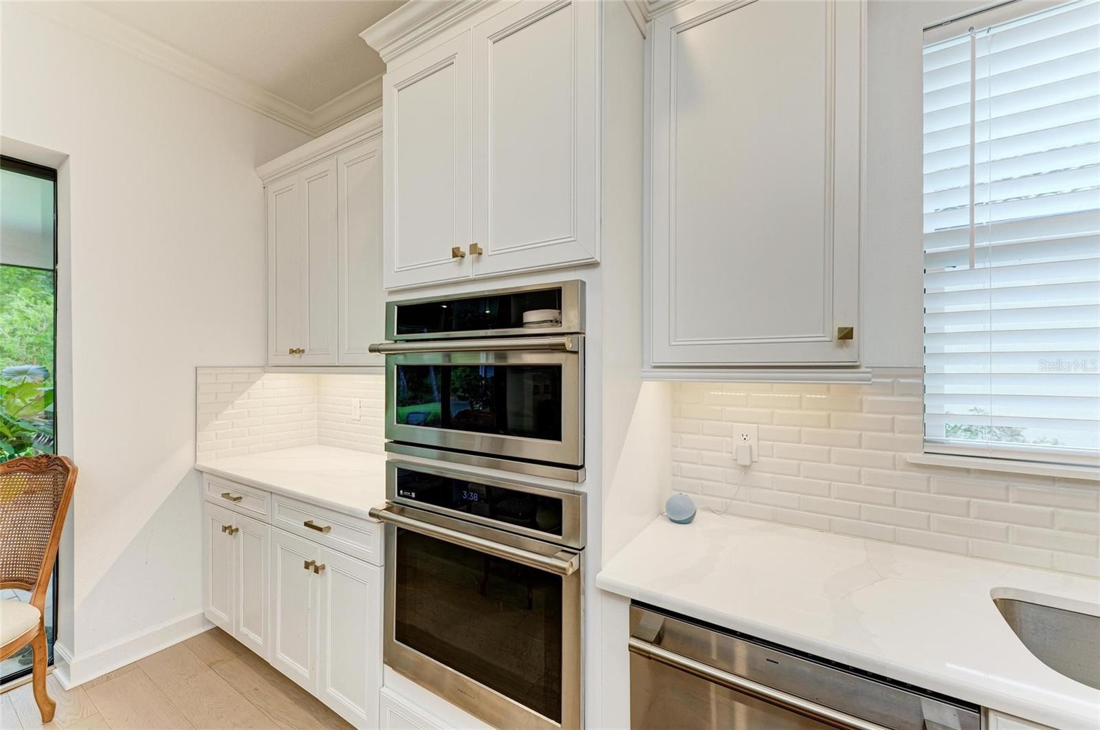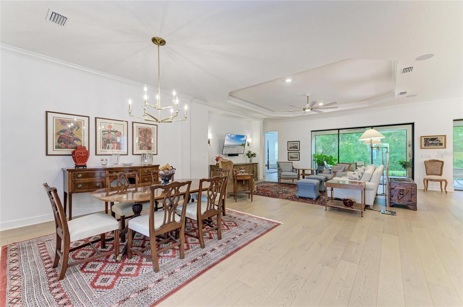 IMMEDIATE MOVE-IN. Welcome to Elevated Florida Living in Esplanade – Azario at Lakewood Ranch! Experience the perfect blend of elegance, comfort, and privacy in this meticulously crafted 2023-built home offering 3 bedrooms, 3 bathrooms, a dedicated den/office, and a rare tandem 3-car garage—all thoughtfully designed with timeless upgrades and modern conveniences. From the moment you enter, you'll be captivated by the refined ambiance created by engineered wood flooring throughout (with plush carpeting in Suites 2 and 3), soaring tray ceilings adorned with crown molding, and custom upgraded lighting that complements every space. Each of the three spacious bedrooms features its own ensuite bath, offering privacy and comfort for family and guests alike. Bay windows in two bedrooms flood the rooms with natural light and add architectural charm. The home’s expansive interior showcases 8’ solid-core doors, B&G interior shutters, and soft-close cabinetry with upgraded shelving. The gourmet kitchen is a culinary dream, boasting quartz countertops, stainless steel appliances, a smart faucet, and a large kitchen island with an additional prep sink. The natural gas range is complemented by an upgraded vent hood, while designer plumbing fixtures elevate the entire space. The casual dining extension flows effortlessly into the great room—enhanced by a high-quality speaker system that continues into the office and rear lanai, perfect for entertaining or relaxing in style. Step outside to your serene, screened-in lanai with a built-in summer kitchen, ideal for alfresco dining or hosting guests against a backdrop of Florida’s natural beauty. The home backs up to a heavily wooded preserve, offering rare and sought-after privacy. Silent ceiling fans are thoughtfully placed throughout all living areas, including the lanai, to ensure year-round comfort. The garage features an acrylic-sealed floor and an enlarged tandem space to accommodate extra storage or your favorite hobby. Living in Esplanade – Azario means access to an unparalleled lifestyle, including: A private, championship 18-hole golf course Onsite golf pro shop Gated community for added security Elegant clubhouse and breakfast bar Resort-style pool, spa, and poolside Bahama Bar Culinary Center with signature dining experiences State-of-the-art fitness and wellness facilities, including a full-service spa and hair salon Tennis and pickleball courts, dog park, and scenic walking/biking trails Full-time Lifestyle & Activity Manager to curate events and social connections Whether you're enjoying a peaceful morning in your lanai or an afternoon on the golf course, this home is the epitome of luxury living in one of Lakewood Ranch’s most sought-after communities. Don’t miss the opportunity to make this move-in-ready, designer-detailed home yours—schedule your private tour today!