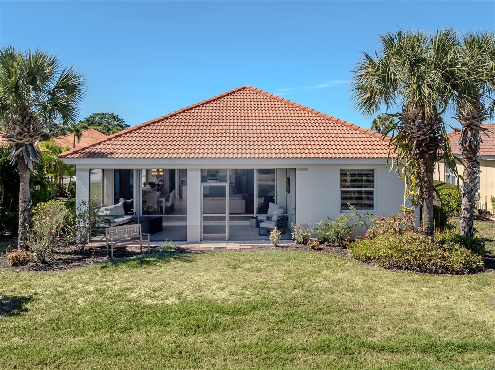 Enjoy the best of Florida style living in this WCI Ghiberti quality-built SPECTAULAR LAKE FRONT HOME with beautiful Golf Course Views Beyond featuring an extended floor plan designed for both comfort and style. Enter through the covered front porch to this two bedrooms, two bath, GREAT ROOM plus DEN home. Enlarged dining area creates a perfect setting for memorable gatherings, while the extended, deeper garage offers exceptional space for storage or accommodating a larger vehicle. Perfectly positioned with tranquil water views, this picturesque lakefront property showcases some of the finest vistas in the community. Step inside to an open and spacious great room plan that feels both elegant and inviting, highlighted by Italian tile flooring, crown molding, kitchen with gleaming granite countertops,, and eat-in-area, center island, stainless steel appliances and a host of thoughtfully selected upgrades that blend beauty with everyday practicality. Whether you’re entertaining guests or enjoying a quiet evening at home, this residence offers a warm and refined atmosphere throughout. Embrace a lifestyle filled with treasured moments—golfing, socializing with friends, at the club house with 2 pools and spa, Tiki Bar, Restaurant, Tennis Courts, plus pickle ball or relaxing at nearby beaches, or indulging in shopping and dining just minutes away. Best of all, yard maintenance is included, allowing you to unwind at home or travel with complete peace of mind. This exceptional home offers not just stunning surroundings, but a carefree, resort-inspired way of living.