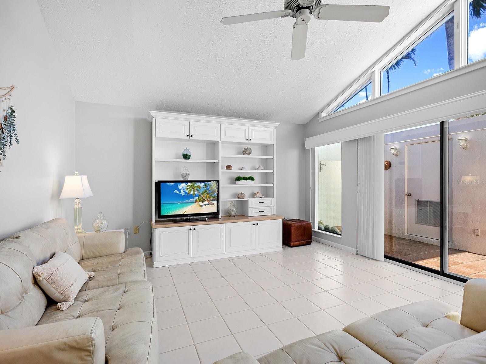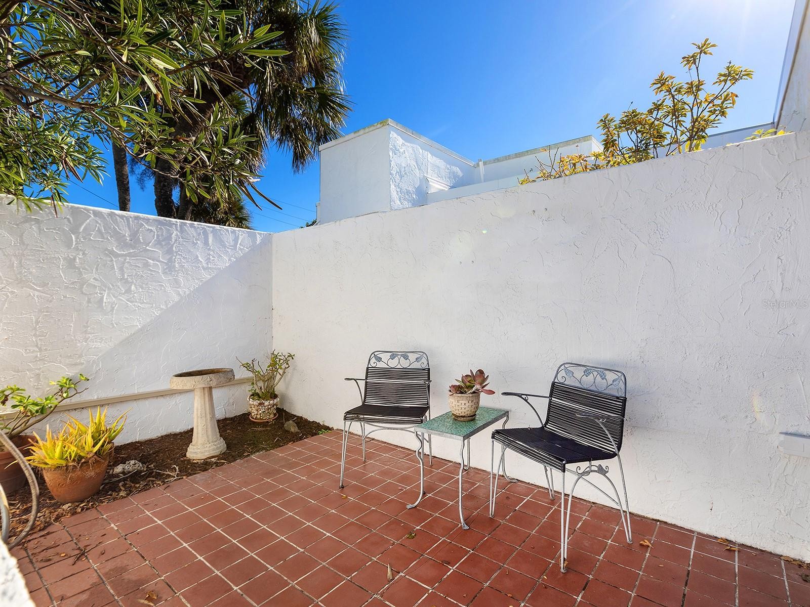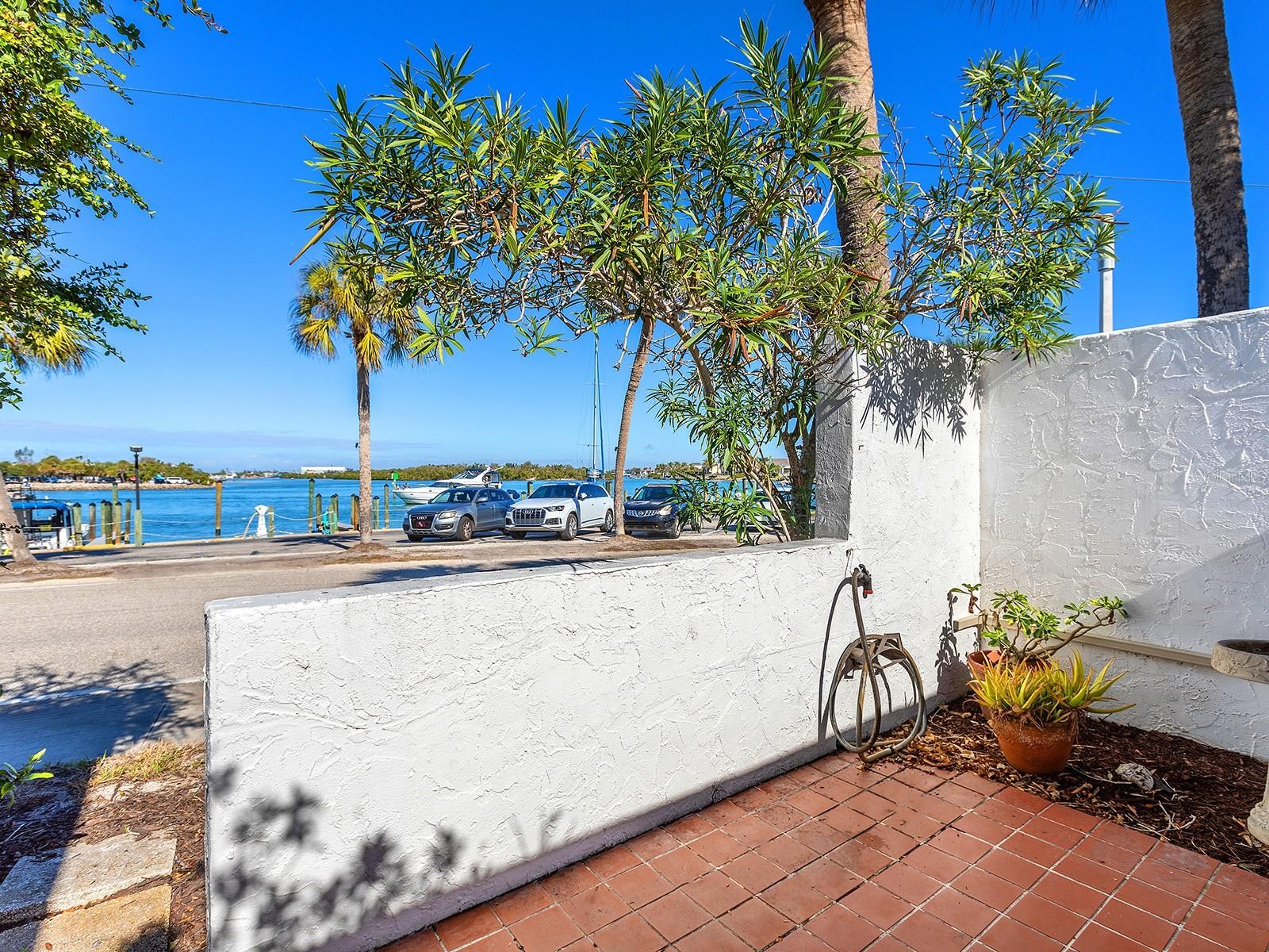 Welcome to Jetty Villas, Venice Island’s premier and sought-after beachfront community of only 41 residences, where owners often keep their units for decades. This turnkey two-bedroom, two-bath, Mediterranean-style condominium offers timeless charm, privacy and stunning water views. One of the desirable outer edge units, it features cathedral ceilings and open sightlines, not tucked away, creating a bright, open coastal retreat. The updated kitchen with granite countertops, new dishwasher and garbage disposal adds modern appeal, while the home is freshly painted and includes an in-unit washer and dryer for convenience. A new water heater and newer HVAC add to peace of mind too. Both bedrooms boast beautiful water views, and the second bedroom features two Murphy beds and a built-in desk with storage, ideal for guests or a home office. Enjoy two private courtyards, one overlooking the Jetty, Intracoastal Waterway and marina, ideal for sunset relaxation, the other with a spacious storage unit and lush staghorn fern. Residents benefit from assigned and guest parking, a beachfront pool and a peaceful, private setting near the private beach, plus the luxury of walking across the road to beautiful and iconic Crow’s Nest restaurant. Enjoy easy access to historic downtown Venice, boutique shopping, dining, boating, fishing and scenic waterfront visits. Whether you’re seeking a full-time residence, vacation getaway or investment opportunity, this home offers a blend of Mediterranean character and relaxed Florida living. And yes, pets are allowed too!