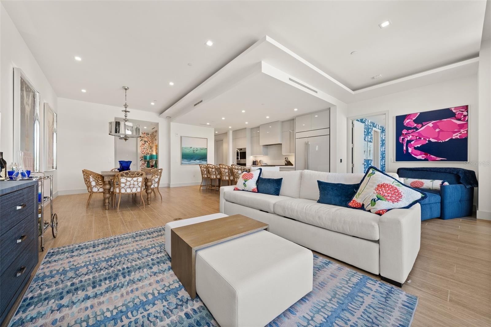 Step inside this spacious residence to discover a clean, modern interior with a sophisticated Palm Beach vibe. Designed for both style and comfort, this home features a gracious great room featuring floor-to-ceiling windows that flood the interiors with natural light and open to the large, 765 square foot private terrace with a built-in gas grill—perfect for gardening, entertaining friends and family, or relaxing outdoors. The chef’s kitchen is outfitted with Poggenpohl cabinetry, Wolf appliances, a Sub-Zero refrigerator, and Sub-Zero wine and beverage refrigerator, blending elegance with functionality. The owner’s suite also boasts floor-to-ceiling windows, a custom designed closet, and a luxurious bathroom with a frameless walk-in shower, Toto mechanized commode, and double vanities. With generous square footage and a thoughtful layout, this residence easily accommodates overnight guests while maintaining a sense of privacy. Additional features include electronic blinds throughout, adding both convenience and sophistication. Designer light fixtures add an elegant touch throughout the home. St. Regis Longboat Key offers a distinguished array of amenities meticulously curated for its residents. The Private Resident’s Clubhouse offers an environment of exclusivity, complemented by a state-of-the-art fitness center, as well as a pool and spa area reserved solely for residential use. Residents are granted privileged access to the legendary St. Regis Butler and Concierge services, which exemplify world-class hospitality and attention to detail. An extraordinary oceanfront spa awaits, alongside diverse dining experiences that showcase the highest standards of culinary excellence. Personal cabanas along the shore create private retreats for relaxation, while the family-friendly amenities include a meandering lazy river and a unique saltwater lagoon. This lagoon is home to a vibrant array of tropical fish species, graceful stingrays, and the resort’s resident tortoises, offering a captivating wildlife experience within the lush grounds. Spanning seventeen acres of beachfront on the coveted Longboat Key barrier island, this private oasis is conveniently located only 3.5 miles from St. Armand’s Circle, the region’s premier destination for shopping and dining. Whether seeking tranquil solitude or an active social environment, every aspect of life at St. Regis Longboat Key has been thoughtfully designed to anticipate and fulfill the desires of its residents. This offering represents more than just a residence; it is an invitation to embrace the legendary St. Regis lifestyle, defined by elegance, comfort, and outstanding service. Begin your journey to extraordinary Gulf side living.