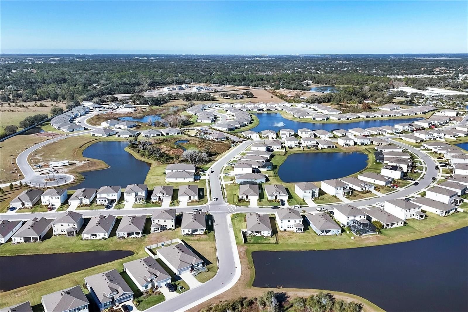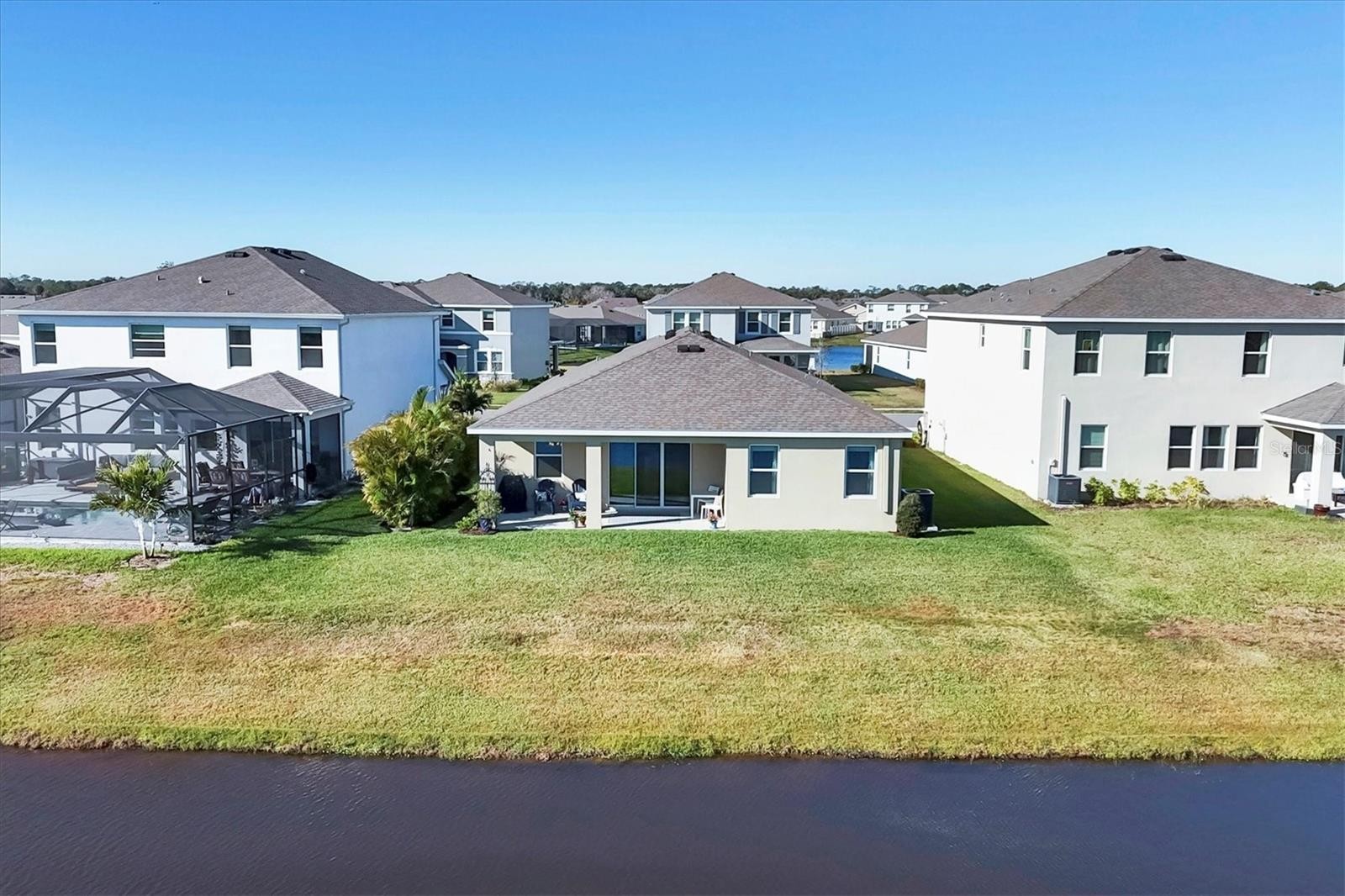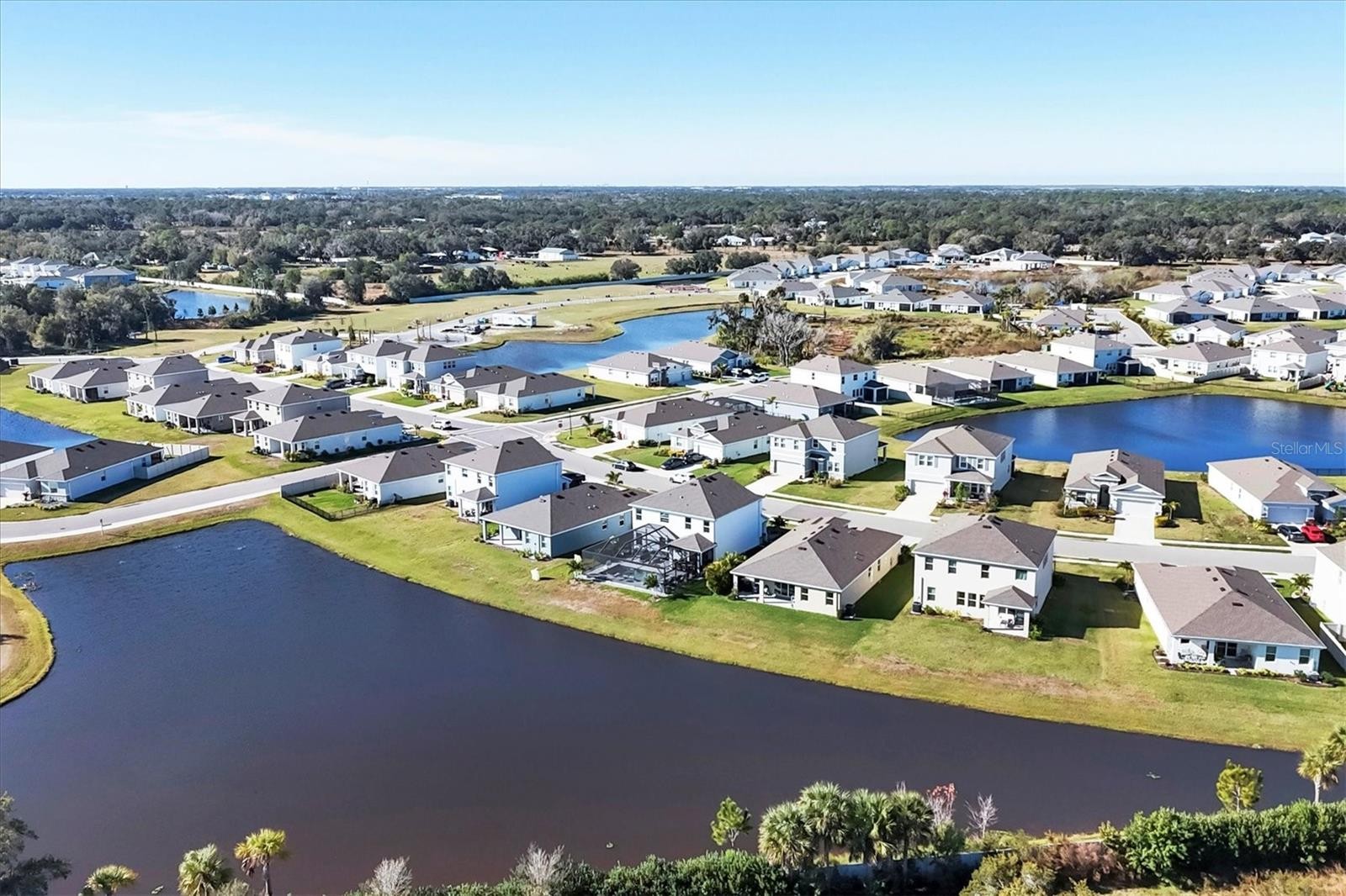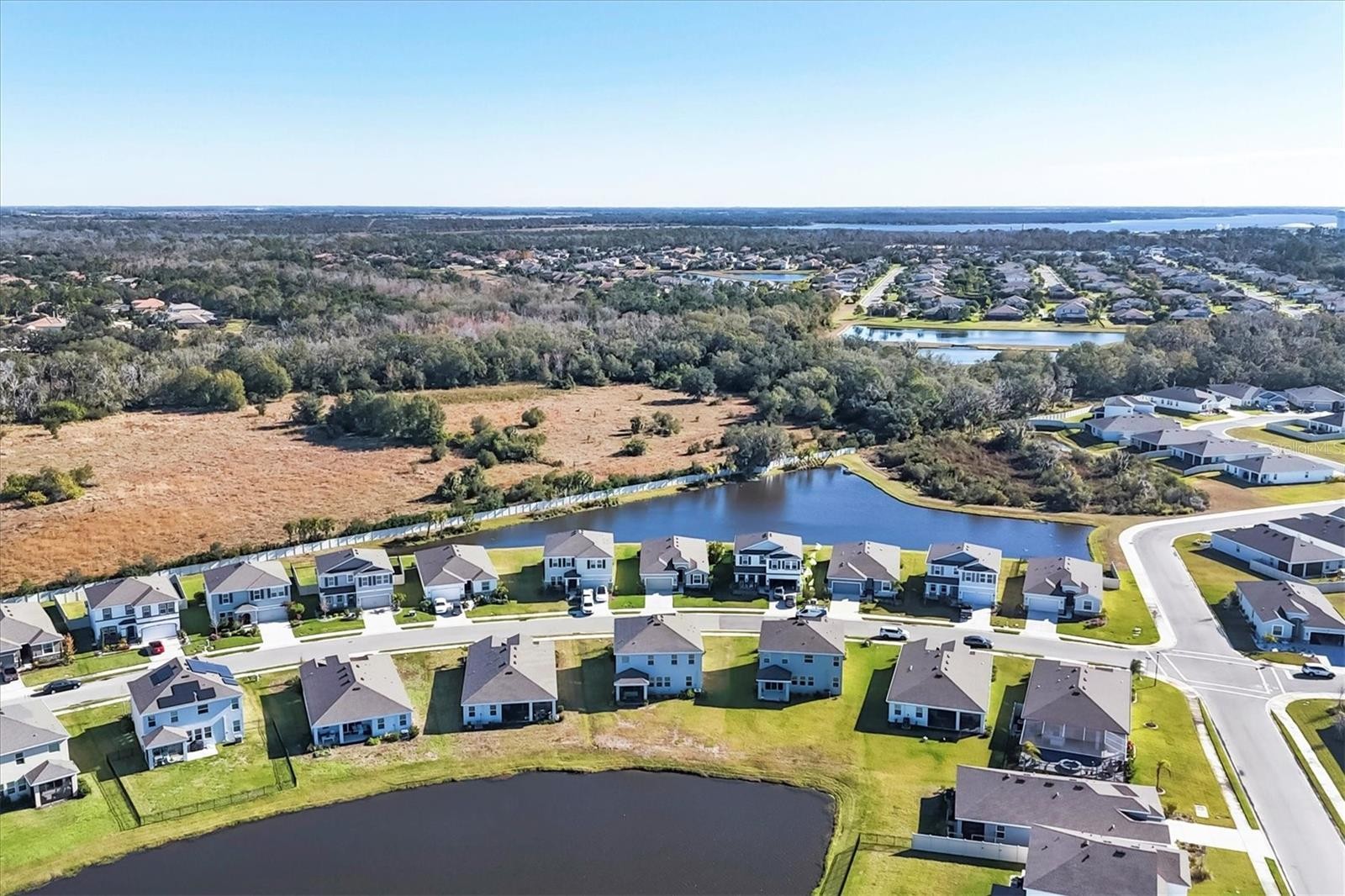 LOOKING FOR OUTSTANDING LAKE VIEWS? Check out this 4 bed / 2.5 bath / 2 car garage home BUILT IN 2023 situated on the absolute best lot in Coddington. This neighborhood might be the best kept secret for new home communities in Manatee county and is favored by buyers due to its RESORT-STYLE AMENITIES, SUPER LOW HOA FEE OF JUST $108/MO, and A RATED GENE WITT ELEMENTARY proximity. Upgraded landscaping and a handsome stone facade adds character to the curb appeal and creates the perfect welcome for guests. As you enter the home, you will appreciate the OPEN CONCEPT FLOOR PLAN WITH SPLIT BEDROOMS which makes the home feel LIGHT, BRIGHT, AND SPACIOUS while offering the primary bedroom great privacy from the secondary bedrooms. The primary bedroom FEATURES TRAY CEILING, LARGE WALK-IN CLOSET, AND GREAT WATER VIEWS. The kitchen which is the true heart of the home offers a LARGE CENTER ISLAND, UPGRADED STAINLESS STEEL APPLIANCES, RICH QUARTZ COUNTERS, 42" WHITE WOOD SHAKER CABINETS, and ample pantry. The kitchen connects to both the Great Room and screened lanai spaces making indoor/outdoor entertainment seamless. LARGE SLIDING GLASS DOORS open up to the private OVERSIZED 24' x 9' COVERED LANAI creating the perfect shady spot to relax while you enjoy watching the Egrets, Ibis, and Bald Eagles fish for dinner against the backdrop of a beautiful sunset in the big lake behind the home. The large back yard has * PLENTY OF ROOM TO ADD A POOL IF DESIRED and the AC condenser has already been moved to the side yard. Recent upgrades include PLANTATION SHUTTERS and 5” baseboards, and crown molding. Coddington is a warm, family-friendly, and inviting neighborhood which offers a LARGE RESORT-STYLE HEATED LAP POOL, FITNESS CENTER, PLAYGROUND, DOG PARK, AND SECURE GATED ENTRY. Close to schools, brand new Publix grocery, Lakewood Ranch Mainstreet, University Town Center Shopping and Entertainment District, Gulf beaches, and easy access to I-75 for commuters. Give yourself and your family the lifestyle you deserve! THIS HOME IS AN ABSOLUTE MUST SEE!