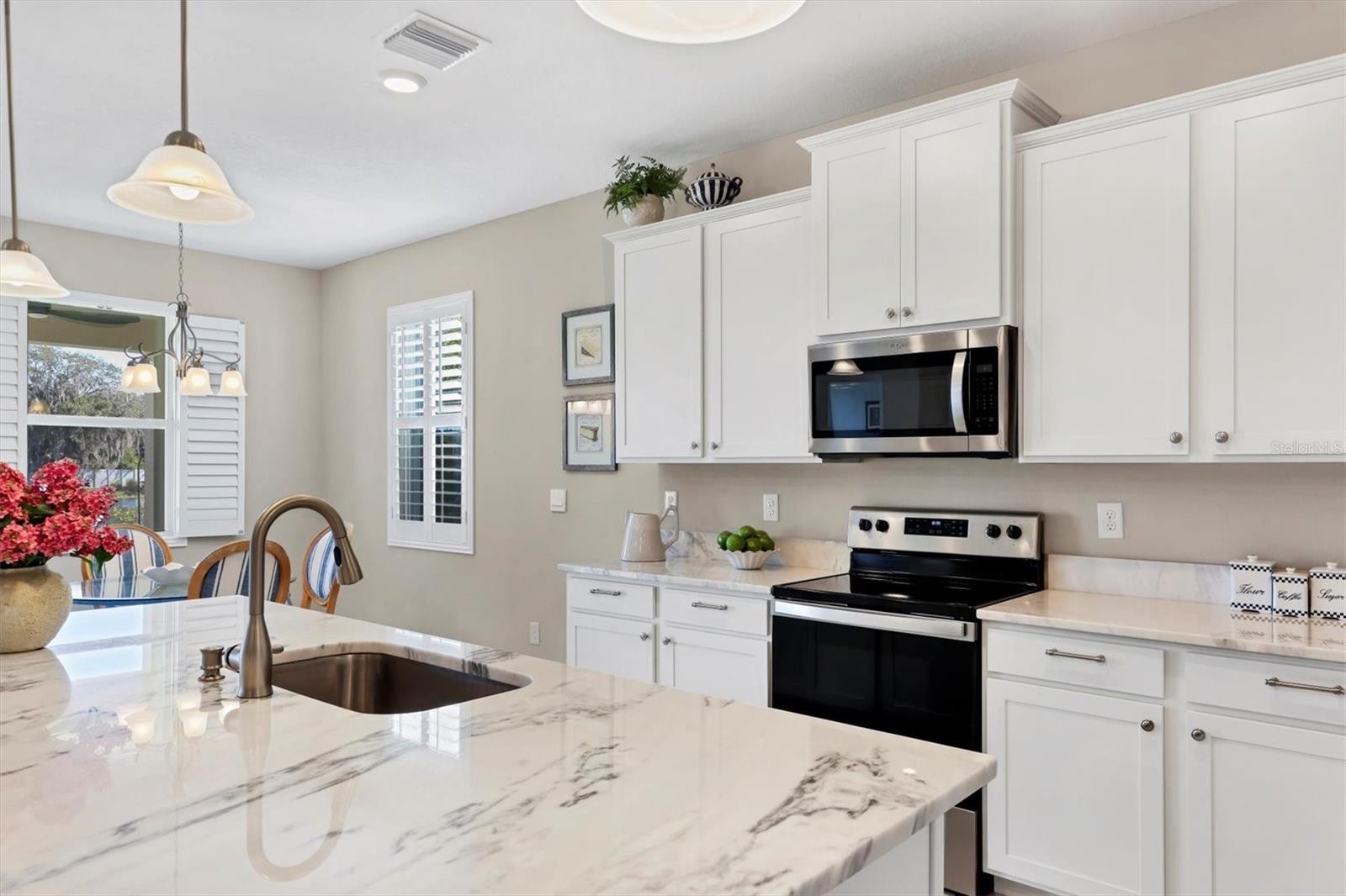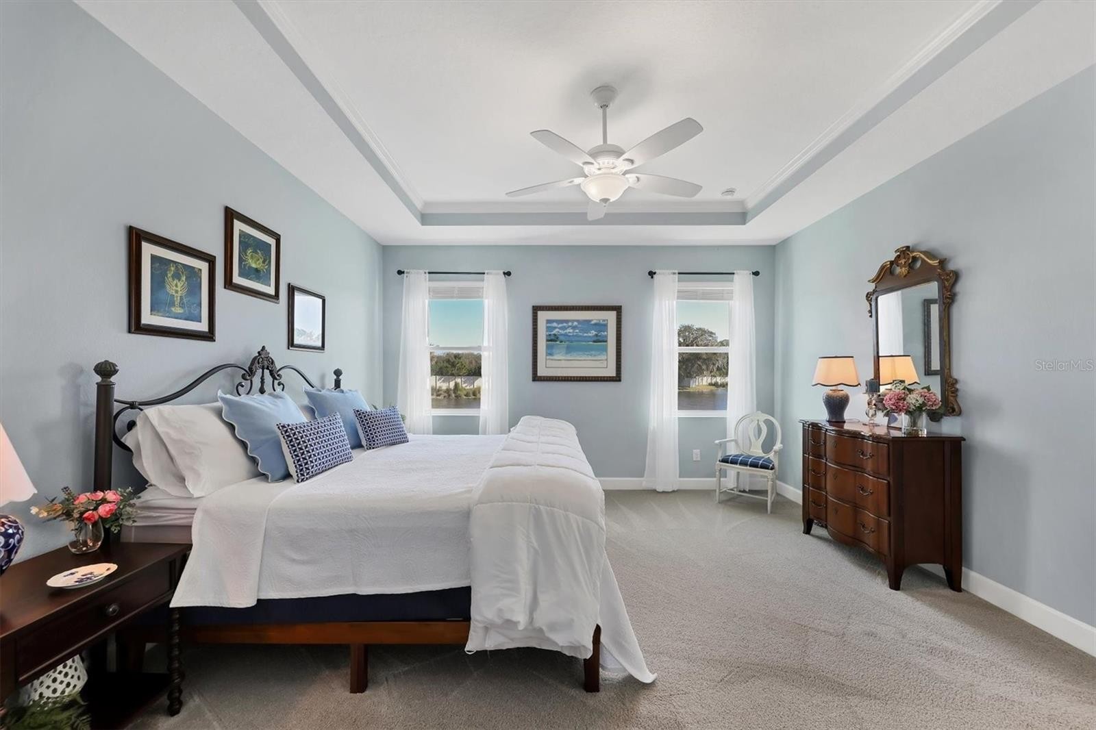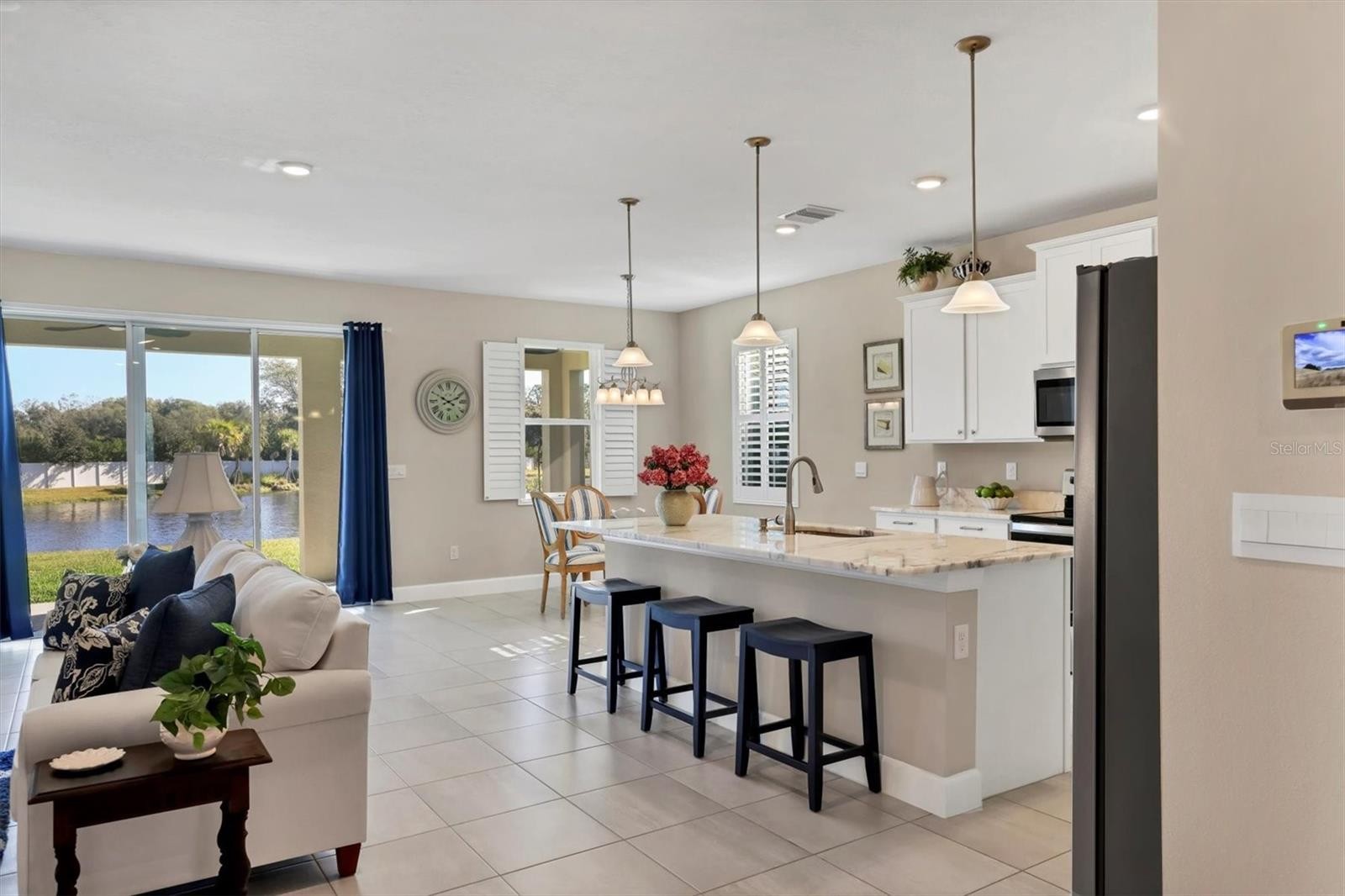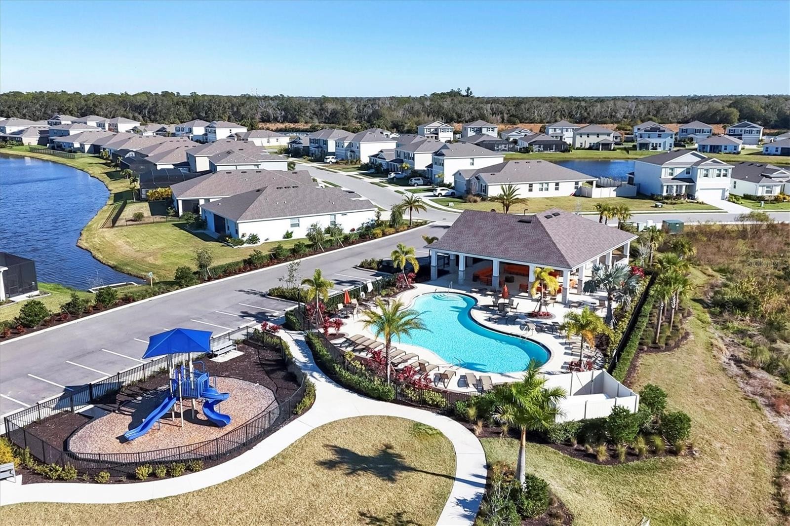 LOOKING FOR OUTSTANDING LAKE VIEWS? Check out this 4 bed / 2.5 bath / 2 car garage home BUILT IN 2023 situated on the absolute best lot in Coddington. This neighborhood might be the best kept secret for new home communities in Manatee county and is favored by buyers due to its RESORT-STYLE AMENITIES, SUPER LOW HOA FEE OF JUST $108/MO, and A RATED GENE WITT ELEMENTARY proximity. Upgraded landscaping and a handsome stone facade adds character to the curb appeal and creates the perfect welcome for guests. As you enter the home, you will appreciate the OPEN CONCEPT FLOOR PLAN WITH SPLIT BEDROOMS which makes the home feel LIGHT, BRIGHT, AND SPACIOUS while offering the primary bedroom great privacy from the secondary bedrooms. The primary bedroom FEATURES TRAY CEILING, LARGE WALK-IN CLOSET, AND GREAT WATER VIEWS. The kitchen which is the true heart of the home offers a LARGE CENTER ISLAND, UPGRADED STAINLESS STEEL APPLIANCES, RICH QUARTZ COUNTERS, 42" WHITE WOOD SHAKER CABINETS, and ample pantry. The kitchen connects to both the Great Room and screened lanai spaces making indoor/outdoor entertainment seamless. LARGE SLIDING GLASS DOORS open up to the private OVERSIZED 24' x 9' COVERED LANAI creating the perfect shady spot to relax while you enjoy watching the Egrets, Ibis, and Bald Eagles fish for dinner against the backdrop of a beautiful sunset in the big lake behind the home. The large back yard has * PLENTY OF ROOM TO ADD A POOL IF DESIRED and the AC condenser has already been moved to the side yard. Recent upgrades include PLANTATION SHUTTERS and 5” baseboards, and crown molding. Coddington is a warm, family-friendly, and inviting neighborhood which offers a LARGE RESORT-STYLE HEATED LAP POOL, FITNESS CENTER, PLAYGROUND, DOG PARK, AND SECURE GATED ENTRY. Close to schools, brand new Publix grocery, Lakewood Ranch Mainstreet, University Town Center Shopping and Entertainment District, Gulf beaches, and easy access to I-75 for commuters. Give yourself and your family the lifestyle you deserve! THIS HOME IS AN ABSOLUTE MUST SEE!