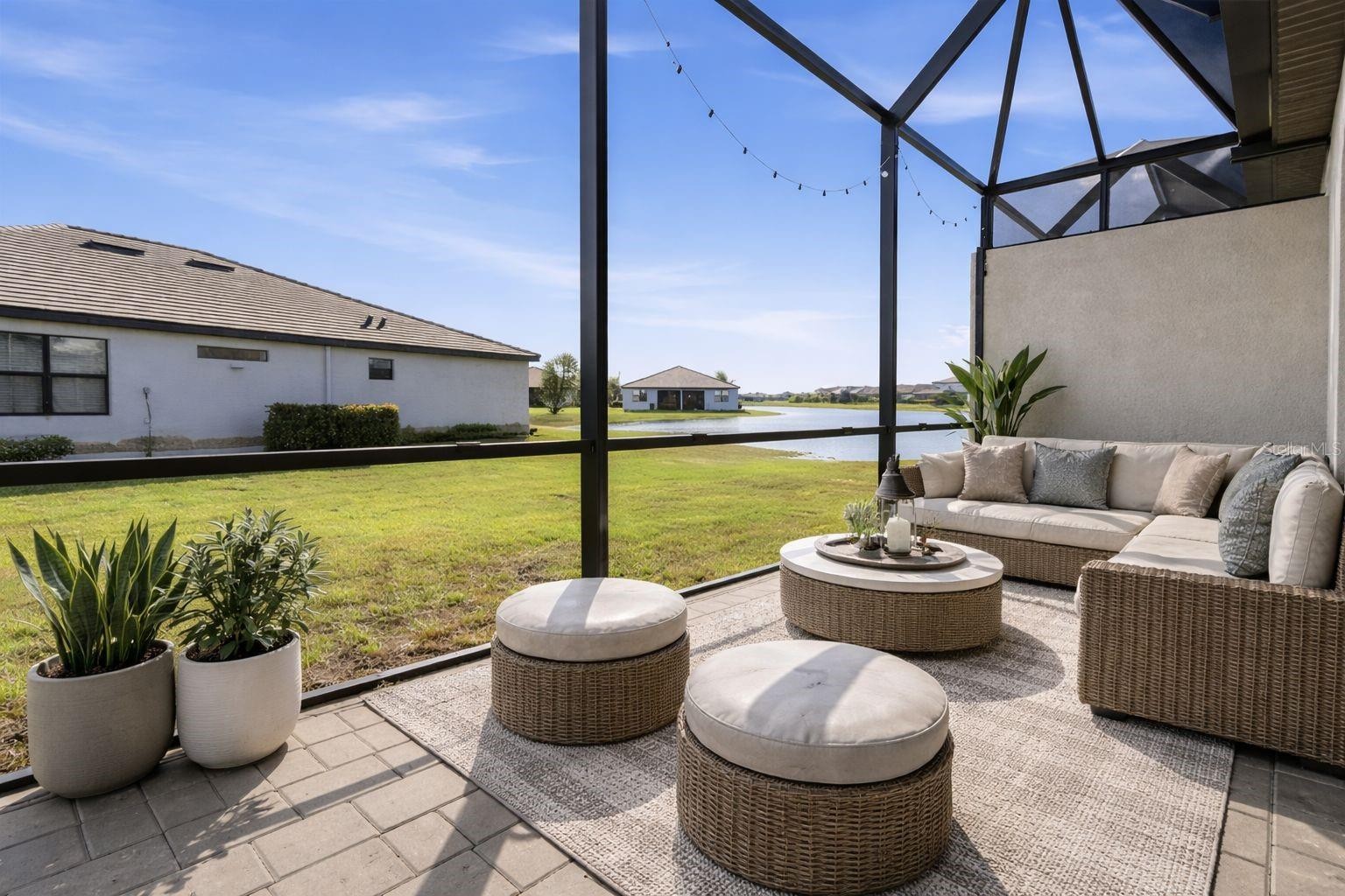 One or more photo(s) has been virtually staged. THIS PROPERTY QUALIFIES FOR A 1% LENDER INCENTIVE IF USING OUR PREFERRED LENDER! Welcome to this beautifully maintained SPLIT-BEDROOM villa in the highly sought-after Lorraine Lakes at Lakewood Ranch, perfectly positioned on a CORNER LOT WITH SERENE LAKE VIEWS and just a short walk to the community’s resort-style amenity center. This 2-bedroom, 2-bath residence with a 2-car garage offers a thoughtfully designed layout with high ceilings, tile flooring throughout the main living areas, a paver driveway, and a convenient interior laundry room. A FLEXIBLE BONUS ROOM with French doors provides the ideal space for a home office, den, or hobby room. The kitchen is both functional and inviting, featuring stainless steel appliances, a breakfast bar for casual dining, a pantry, and transom windows above the cabinets that fill the space with natural light. The open living and dining areas flow seamlessly to the EXTENDED SCREENED LANAI with paver flooring, where you can relax or entertain while enjoying peaceful lake views. The spacious primary suite includes French doors, a private slider to the lanai, and an ensuite bath with a walk-in closet, while the guest bedroom is privately located at the front of the home near the main bath—ideal for visitors. Both bathrooms are enhanced with installed shower head filtration systems, adding an extra touch of comfort and wellness. Living in Lorraine Lakes means embracing a true RESORT-STYLE LIFESTYLE, complete with a grand clubhouse, resort pool with lap lanes and spa, fitness center, poolside café and tiki bar, tennis and pickleball courts, volleyball and bocce, an indoor basketball court, putting green, splash park, playgrounds, scenic lakes, walking trails, and a full calendar of social activities. Ideally located near top-rated schools, shopping, dining, and the Gulf Coast’s world-famous beaches, this villa offers not just a home, but an exceptional Lakewood Ranch lifestyle.