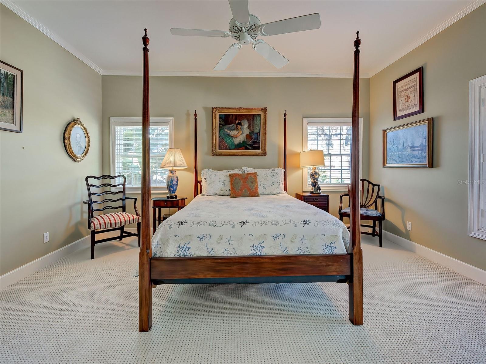 Prepare to be ENCHANTED! Sometimes you have to actually experience a home to appreciate all it has to offer because words just can't describe the location, sophistication, privacy, & upscale details. A home that exudes thoughtful customization & architectural detail...and just steps from your PRIVATE BEACH ACCESS. Unique floor-plan offers room for everyone to have their privacy or enjoy together time with family & friends. From the welcoming foyer thru the Living room/kitchen & out to the pool, this floor-plan flows seamlessly. Family & guests will appreciate the privacy of the third bedroom & bath in a SEPARATE CASITA with sliding doors to pool. All bedrooms are large with en-suite bathrooms. Primary bedroom has enormous closet & bath, with sliding doors out to pool. Large kitchen with solid surface counter tops, opening to breakfast nook & pool. OFFICE & laundry room off kitchen. Most rooms open to private enclosed COURTYARD POOL, designed with ample under roof seating. Delightful window seat/bench in family room with view of pool. CROWN MOLDING & PLANTATION SHUTTERS in most rooms. Charming gated courtyard area on side of home. All this located on a private road with GATED PRIVATE BEACH ACCESS just steps away. X FLOOD ZONE. 'Storm Catcher" wind abatement hurricane screens for you peace of mind. IDEALLY POSITIONED to enjoy all that downtown Venice has to offer...dining, shopping, cultural & music venues, just strolling on historic Venice Avenue. This ISLAND home could be your PRIVATE OASIS, capturing the essence of living on the island of Venice. A must see!
