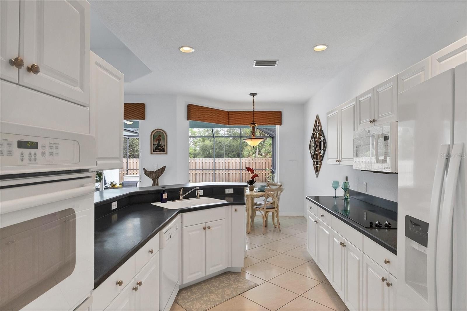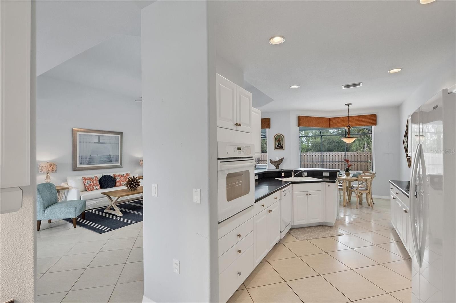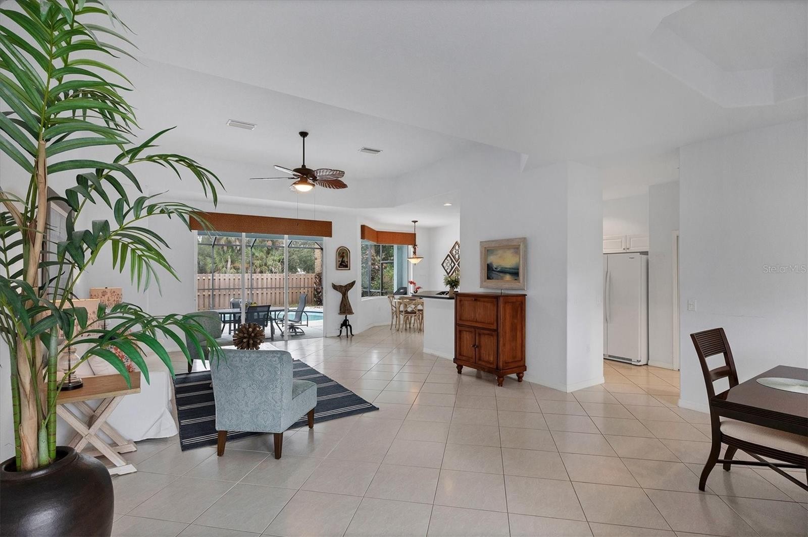 One or more photo(s) has been virtually staged. Relax, entertain, and enjoy it all! This 3-bedroom, 2-bath pool home is beautifully designed and ready to fit your lifestyle offering the perfect balance of indoor and outdoor living. From the charming front porch and double-door entry, step inside to a spacious open-concept layout with volume ceilings, abundant natural light, and a thoughtful split-bedroom design. The living room flows seamlessly to the lanai through oversized sliders, while the formal dining room boasts a tray ceiling that adds elegance to every gathering. The kitchen is a true centerpiece, featuring a breakfast bar, a built-in desk, a large pantry, and a breakfast nook framed by an aquarium window overlooking the sparkling pool. Ceramic tile flooring extends through the main living areas for easy maintenance and timeless appeal. The primary suite offers a generous 19x14 bedroom with tray ceiling, walk-in closet, and a spacious bath with dual sinks, a walk-in shower, and private slider access to the pool. Guests will enjoy their own wing with two additional bedrooms and a full bath, ensuring comfort and privacy. Beyond the living spaces you’ll appreciate the large laundry room with storage and folding counter, plus an oversized 2+ car garage with a dedicated 13x10 workshop/storage area, pull-down attic stairs, and drop-down shelving. Step outside to your private backyard oasis, complete with a screened lanai and a sparkling pool. It’s the perfect area for lounging or entertaining. The fenced yard provides peace of mind and added privacy. Recent updates add confidence with a brand-new roof (June 2025), new pool pump, 2024 hot water heater, and 2024 pool cage screens. Low HOA fee of just $889 per year (covering irrigation) and no CDD fee make this home affordable and stress-free. All of this in a prime Venice location, just minutes from Downtown Venice, Gulf beaches, golf courses, shopping, dining, and entertainment. Plus, it’s not located in a flood zone. This home checks every box: style, space, updates, and location. Don’t miss the opportunity to make it yours!