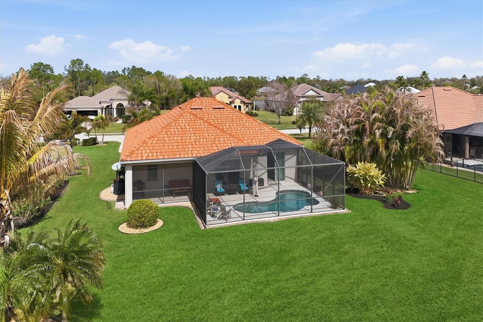 Located in the highly sought-after community of Twin Rivers, this exceptional residence makes a stunning first impression as you arrive via the circular driveway framed by meticulously maintained landscaping and an inviting exterior. This St. Croix Model built by Medallion Homes in 2012 is a three bedroom plus den/study, two bath home with a two-car garage offering refined design and thoughtful functionality throughout. An airy foyer opens to a separate formal dining room and leads to an expansive great room that flows seamlessly into the kitchen. From these main living spaces, enjoy expansive views of the oversized lanai and heated saltwater pool with fountain, all overlooking a private pond and wildlife preserve. Elegant architectural details--including arched entryways, custom plantation shutters and vaulted ceilings--add to the home's distinctive ambiance. The spacious kitchen is appointed with granite countertops, recessed lighting, wood cabinetry and stainless steel appliances and features both a breakfast bar and a dining area, making it ideal for everyday living and entertaining alike. The primary suite is generously sized and once again showcases the incredible private backyard views. It features porcelain tile flooring, two walk-in closets and an en-suite bath with granite countertops, dual sinks and an upgraded walk-in shower. Community amenities include a boat ramp on the Manatee River for canoeing, kayaking, fishing and boating along with playgrounds, a soccer field, basketball court, beach volleyball court, picnic pavillion and miles of nature trails.