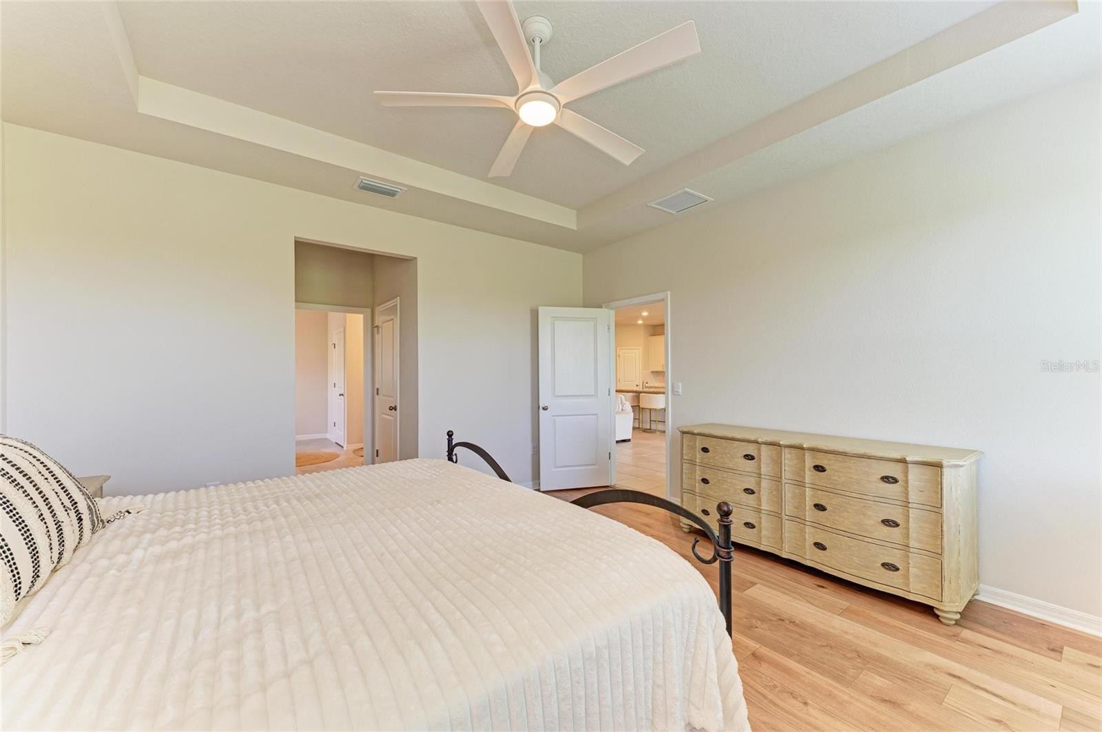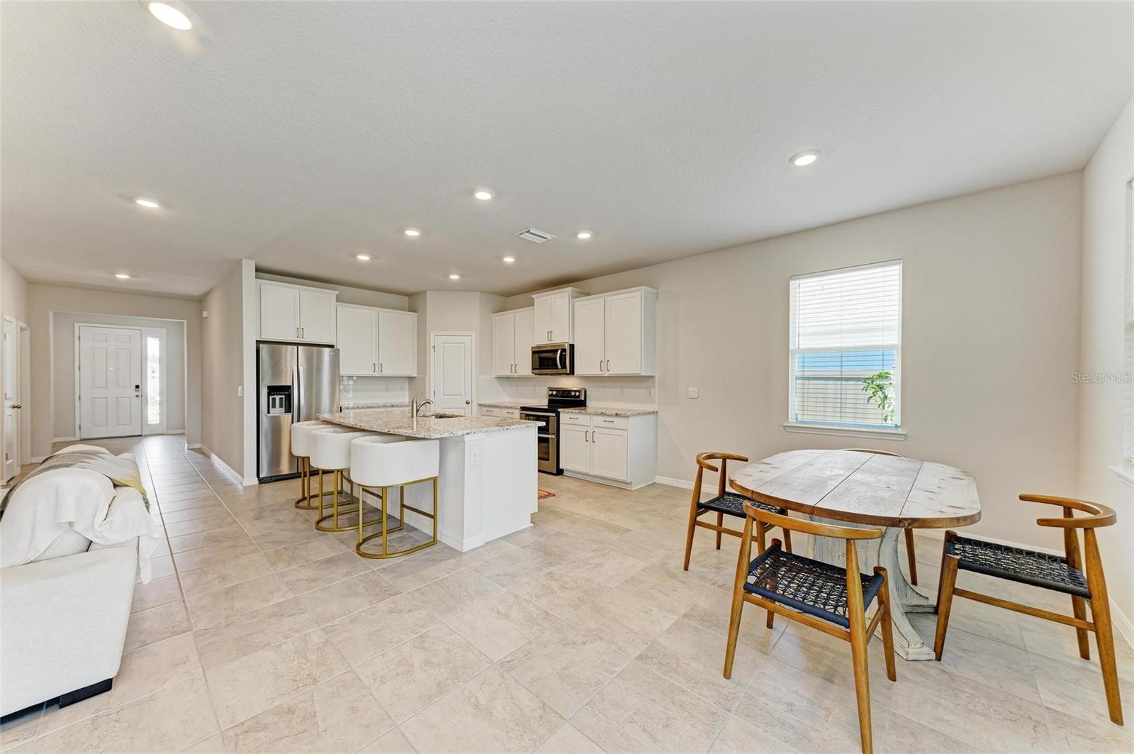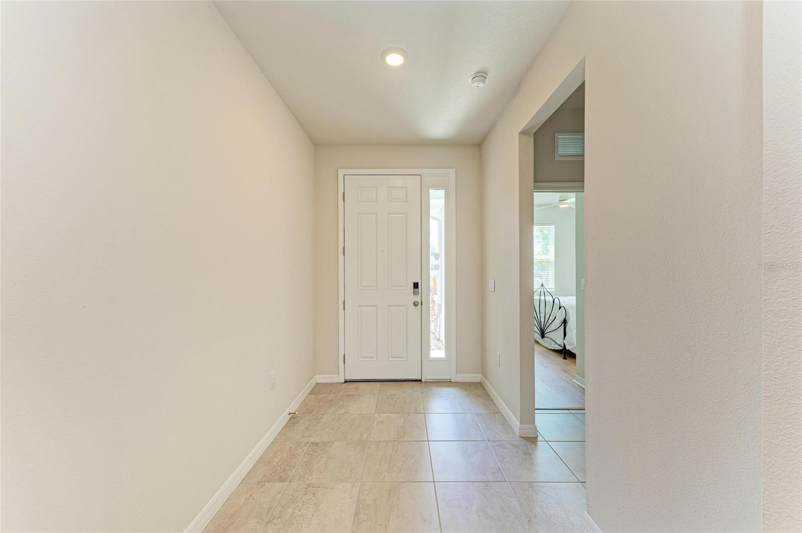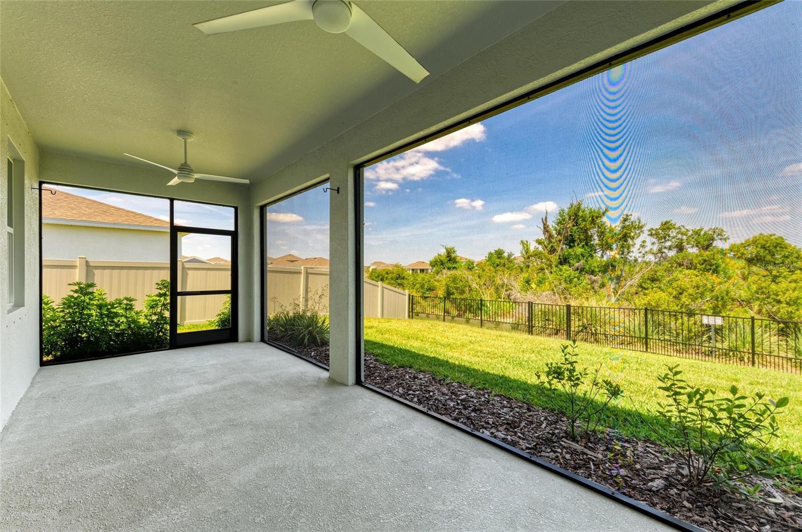 Don't miss this inviting 4 bed, 2 and 1/2 bath residence in the sought after gated community of Coddington. This stunning home boasts many UPGRADED features and spectacular PRESERVE VIEWS. Enjoy watching nature from your 23 ft picture view screened lanai and enjoy the 9ft sliders that bring an extension of your home to the outdoors. As a bonus, the backyard is FENCED with a combination of 6' high privacy fence on the sides and black rail fence in back, so as not to obstruct the bird watching and nature views. Keep cool with 2 weather rated outdoor fans with dimmable lights, extended down rods, and individual remote controls. Equally desirable, the interior of this home leaves no boxes unchecked! Enjoy all the comforts of a well-designed and spacious floor plan featuring a light and bright kitchen with STAINLESS Whirlpool appliances (2024) including dishwasher, deluxe model range/oven/convection microwave, and double door refrigerator/freezer with icemaker and filtered water, classic white cabinetry with stylish pulls, QUARTZ counters and bar seating. Entertaining is made easy with adjoining great room and dining area. Other features include LUXURY VINYL PLANK tile and neutral palette Ceramic Tile. NO CARPET anywhere in this home! The primary suite, with neutral calm and soothing color palette, comfortably accommodates a king size bed, dresser, chest, and nightstands. Tranquil preserve views further enhance this inviting retreat. The primary bath has double vanities, walk in shower, soaking tub, and a private water closet. With this split floor plan, two of the guest bedrooms enjoy adjacent access to a second full bathroom with QUARTZ vanity and bathtub. All 4 bedrooms have dimmable lights. Three Deako dimmer switches have been added at strategic locations. Door hardware has been upgraded to digital locking on the garage door and two interior doors. All windows in the home have blinds installed. The curtains and hardware in the great room convey. Remote controlled ceiling fans (5 inside and 2 outside) have been installed to enhance the comfortable and inviting atmosphere. Wait! There's more! The Samsung front load washer (2024) and dryer (2024) with pedestals also convey. Overhead cabinets complete the laundry room keeping items neat and organized. The wall mounted 75-inch Sony TV (2024) conveys. There is a conveniently located utility sink in the garage, and custom designed shelving that will remain. More time to relax as professional whole house gutters and downspouts have already been installed! You are ready for the rainy season. No detail spared, even toilet seats and lids have been upgraded to soft close. Ducts were professionally cleaned by Stanley when owners purchased to ensure the removal of any construction dust. Smart home is included. Love where you live within the tranquility of Coddington. COMMUNITY POOL AND TOT LOT are in close proximity. Sidewalks and streetlights are added community features. There is a traffic light at the main gated entrance. You won't want to miss this one, come see for yourself why it won't last long. Please note the $7,248 taxes INCLUDE the CDD of $1,765.