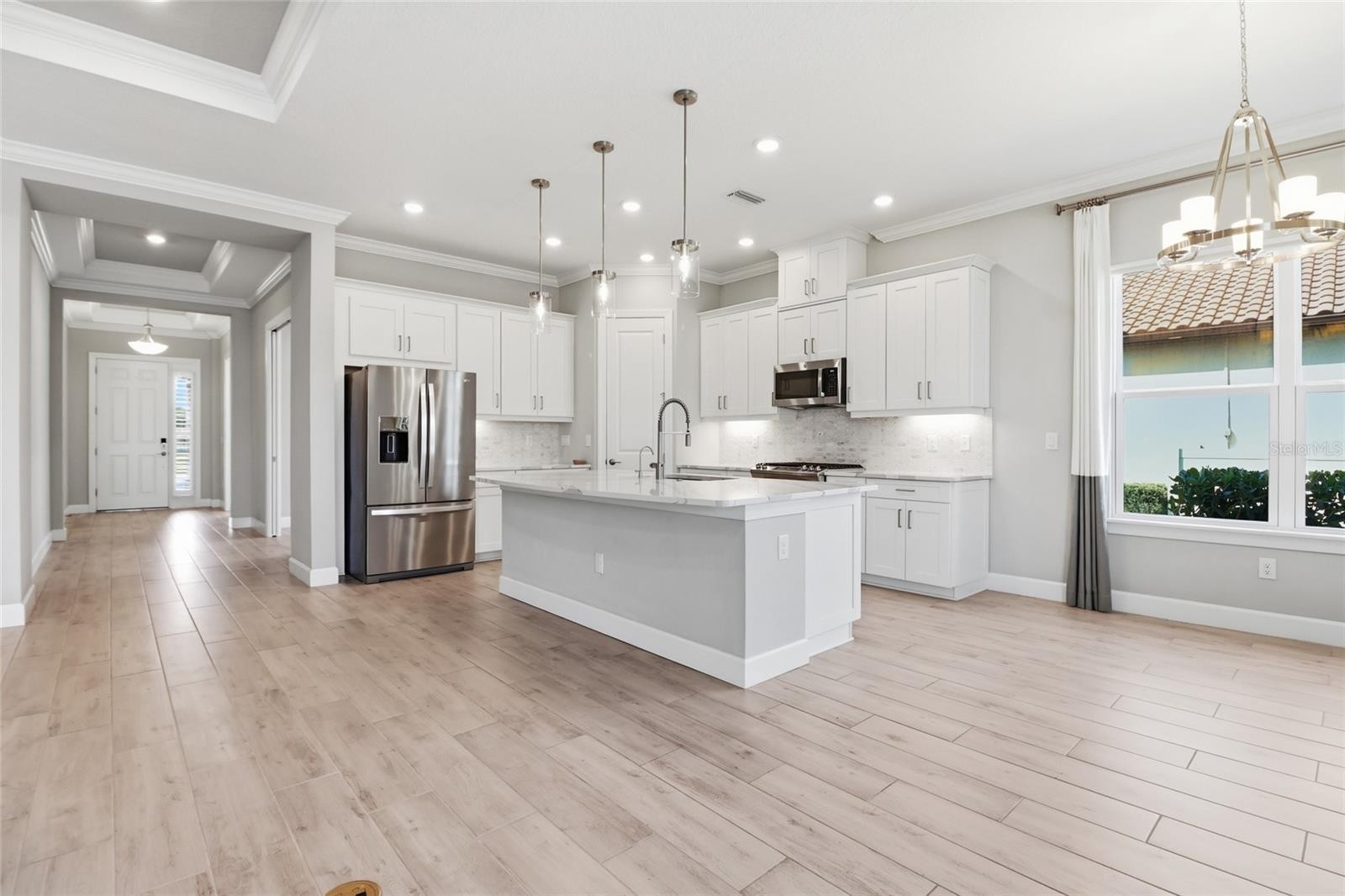 Experience the ultimate in resort-style living inside the highly sought-after Esplanade at Azario in Lakewood Ranch. This beautifully designed 3-bedroom, 3.5-bath residence with a versatile den/flex space offers over 2,100 square feet of thoughtfully designed living space, along with a private outdoor retreat featuring a heated pool and spa. Built in 2023, the home showcases a bright open-concept floor plan with elegant wood-look ceramic tile flooring, tray ceilings, and expansive living areas that seamlessly connect indoor and outdoor living. The chef-inspired kitchen is the heart of the home and features luxury GE Monogram appliances, a large center island, walk-in pantry, and abundant cabinetry, making it perfect for entertaining or everyday living. Pocketing sliding glass doors open to a spacious screened lanai, creating the ideal Florida lifestyle setting. Enjoy your private pool and spa, covered seating areas, and an outdoor kitchen designed for year-round relaxation and entertaining. The primary suite offers a peaceful retreat with a spacious bedroom and spa-like bath, while the additional bedrooms provide comfort and privacy for family or guests. The flexible den is perfect for a home office, media room, or additional guest space. Additional highlights include an extended garage providing extra space for storage, golf carts, or hobbies. Residents enjoy transferable access to Azario’s incredible resort-style amenities, including: Championship golf, Resort-style pool & Bahama Bar, Barrel House Bistro & Taproom, Fitness center & wellness studios, Tennis, pickleball & bocce courts, Scenic walking trails and social events. Live every day like you’re on vacation at Esplanade at Azario. Book your private showing today!