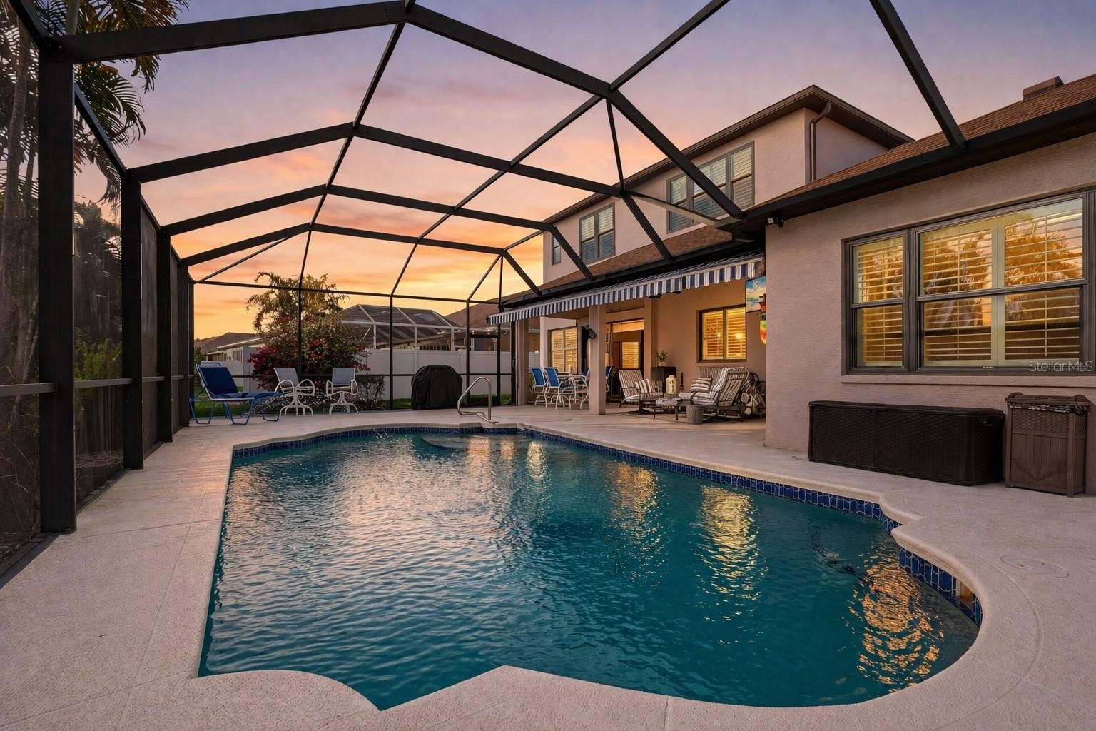 One of the largest resale homes in Aviary at Rutland Ranch, this 5 bedroom, 3.5 bath property offers over 3,100 square feet of thoughtfully designed living space. Situated on a peaceful cul de sac, the home features a functional layout with room to grow and space to truly spread out. Set on a rare oversized lot with serene pond views, the fully fenced backyard includes a screened lanai and paver patio, creating a private outdoor setting ideal for relaxing or entertaining, with plenty of room to expand and create your own backyard paradise. Inside, laminate flooring runs throughout the downstairs, and the spacious kitchen opens to the main living area, offering a bright and functional layout for everyday living. The main floor primary suite provides comfort and privacy, complete with a large walk in shower and an ample walk in closet. Upstairs, you will find additional bedrooms, bathrooms, and a versatile layout to fit a variety of needs. A dedicated laundry room is also located upstairs for added convenience. Built by Highland Homes, this property reflects quality craftsmanship in one of Parrish’s growing communities. With its size, layout, and setting, this is a rare opportunity to own one of the more spacious homes currently available in Aviary at Rutland Ranch. Ideally located with convenient access to I 75, this home offers an easy commute to St Petersburg, Tampa, and Sarasota, along with nearby shopping, dining, and everyday conveniences.