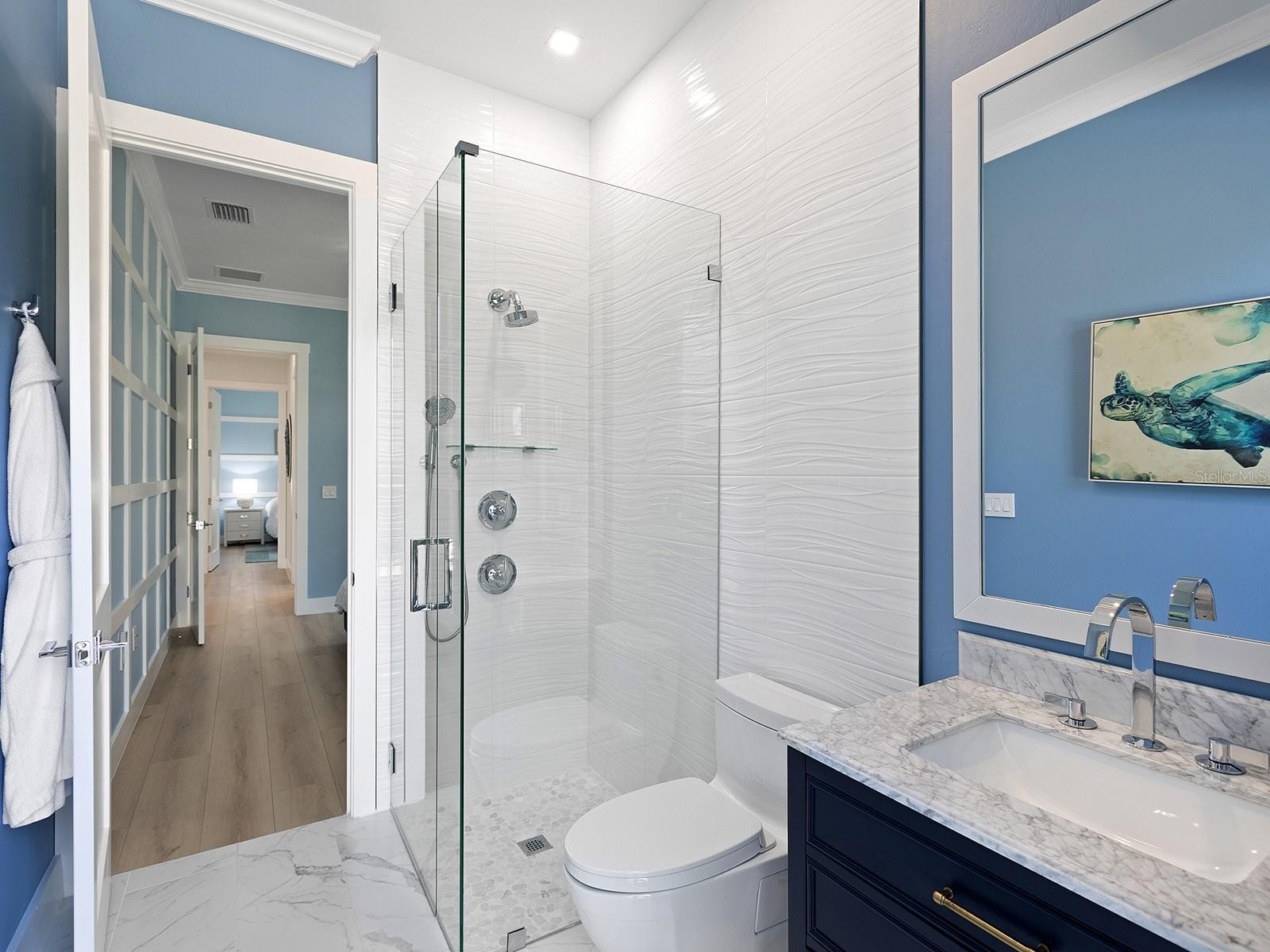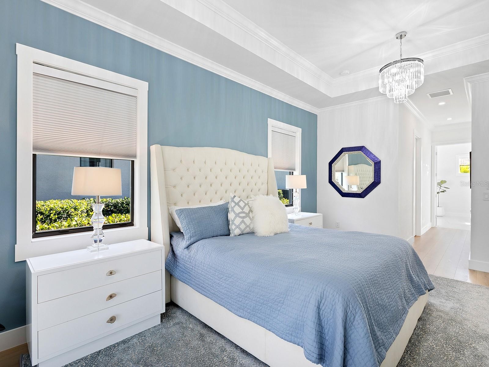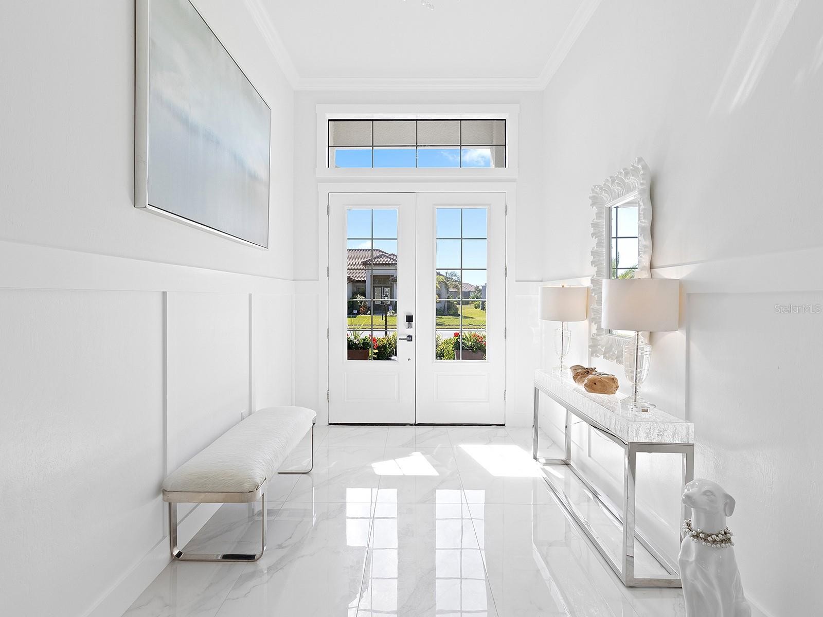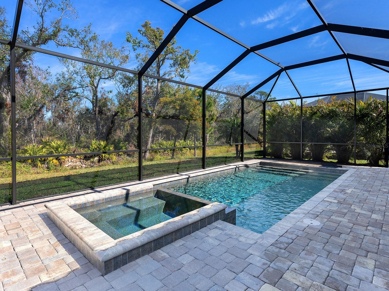 Welcome to 16125 Tradewind Terrace, a newly completed Executive Sunset floorplan home in Lorraine Lakes that has been fully improved to the highest standards. Offering 2,650 square feet of refined living space, this 3-bedroom, 3-bathroom residence is set on a highly sought-after private preserve-view lot, providing an idyllic natural backdrop. Upon entering the impressive grand foyer, you’re welcomed by expansive voluminous ceilings throughout, enhancing the home’s sense of openness and refinement. The spacious, open great room features soaring ceilings with new crown molding and a wall of sliders for indoor-outdoor living. The chef’s kitchen showcases a new $35,000 Thermador appliance package, including a 36-inch refrigerator, cooktop, hood, dishwasher, microwave, and wall oven. The primary suite is a true retreat, with custom tray ceilings, large windows and dual walk-in closets. The luxurious primary bath features a new oversized shower with white marble patterned tile, frameless glass and a handheld shower spray with its own independent valve, a large vanity with two sinks, premium Kohler faucets, a new Toto toilet, new designer tilework throughout and plenty of storage. The two guest suites are both outfitted with new custom trim work, large windows and spacious custom closets. Each has an en-suite bathroom with new Toto toilets, new designer tilework, new frameless shower doors, and new premium Kohler faucets. The well-appointed den is the ideal setting for a home office or bonus space. Outside, the expansive covered lanai and pool deck create a private sanctuary, perfect for relaxation or entertaining with serene preserve views. A saltwater pool and spa elevate the outdoor experience, enhanced by new landscaping and professional lighting to ensure complete privacy and curb appeal. Additional upgrades include a fully equipped laundry room with two new Maytag stacked washer and dryer units. Throughout the residence, you'll find new high-end luxury plank vinyl flooring, new solid-core contemporary doors, new Baldwin chrome hardware, and custom trim. For convenience, the home is outfitted with new Lutron smart-home compatible lighting and remote-controlled automated blinds in every bedroom. The freshly painted interior and exterior complete the home’s pristine, modern aesthetic. The three-car garage accommodates multiple vehicles or two cars and a golf cart, ideal for this golf cart-friendly community, allowing easy access to the clubhouse and neighborhood amenities. Located in Lakewood Ranch, residents enjoy proximity to Lakewood Ranch Main Street, Waterside Place, UTC, I-75 and more. The home’s elevated location and inland positioning provide natural hurricane protection. This remarkable home is a unique opportunity for refined living in an unmatched setting. Schedule your private showing today.