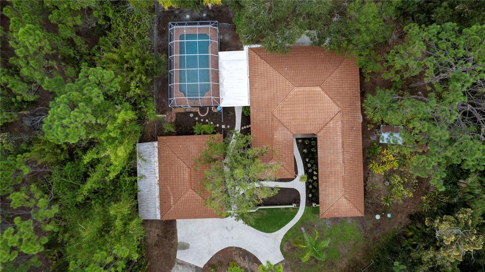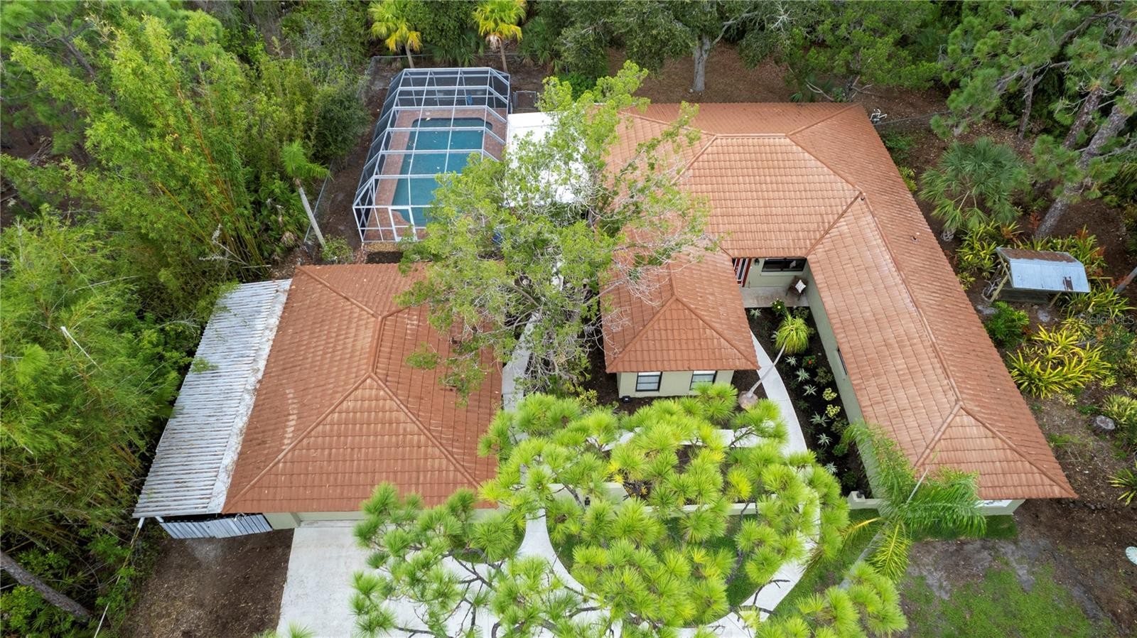 Convenient to Manasota Beach and Englewood Center. The property consists of 1.6 acres natures playground of tropical trees, shrubs and bamboo groves. The home itself exudes Mexican influence and extraordinary appeal with room to room archways and finely etched ceilings and walls. This is a delightful 4 bedroom 2 bath home with a colorfully flowered entry courtyard plus a 13 x 30 foot 6ft deep caged pool and huge paver lanai deck plus oversized, air conditioned 2 car garage and workshop, large rooms, gourmet style kitchen, stainless refrigerator, island with surface range, extra cabinets and built in microwave, a huge great room with double French doors leading to a shaded patio deck and fenced pet yard. 3 zoned air conditioning with humidistat, 2 tankless hot water heaters, master bath with a tiled mural hand crafted Mexican tile and double shower heads making this home attractive for the large indoor/outdoor active family. Copper tubing has been replaced with PVC overhead, front loading washer and dryer in spacious utility room included, the home has pest control and air conditioning service contracts, new septic 2007, master bath rebuilt 2022, compressor 2012, air handler 2022, and many more customized improvements.....Put it on your "must see list"