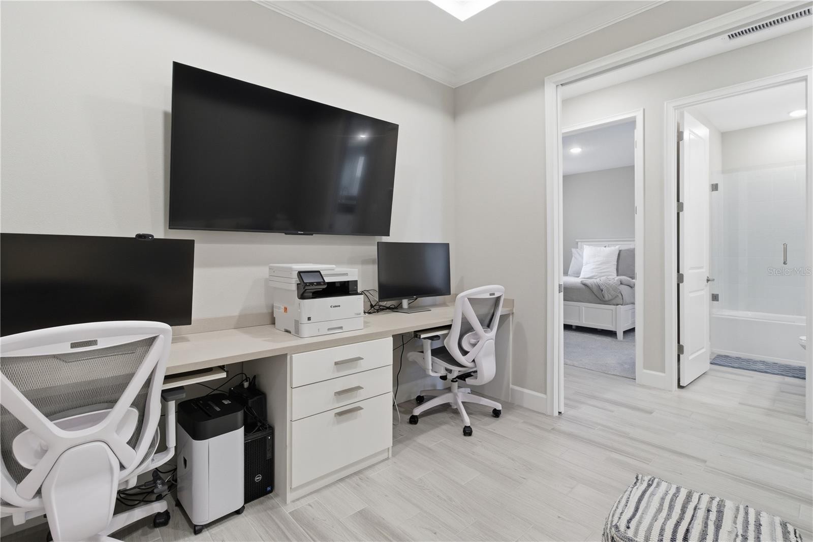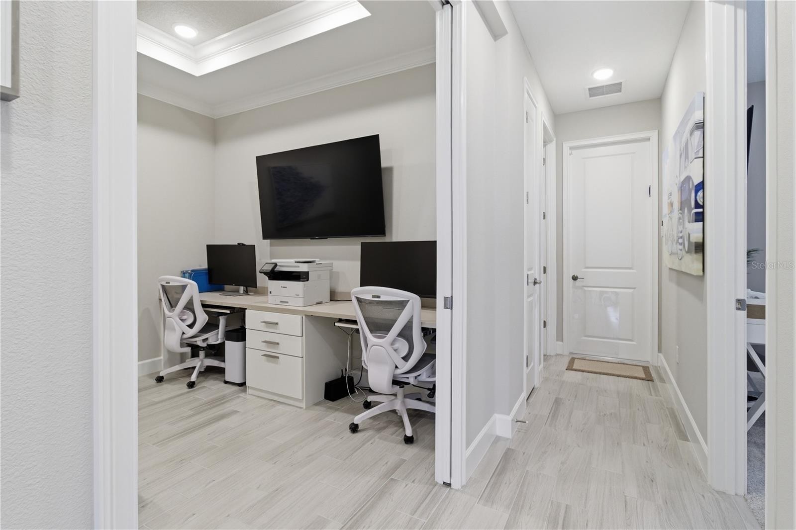 Welcome to your private oasis! This beautifully designed Ibis model offers a light and airy open-concept layout, perfect for both everyday living and entertaining. Thoughtful upgrades include a built-in desk ideal for a flex space or home office, an alarm system, and a frameless glass shower in the second bathroom. Perfectly positioned as the last twin villa at the cross street of San Donato and Vigo, this home offers enhanced privacy with minimal through traffic—creating a quiet, serene setting. Step outside to your screened lanai and unwind while taking in the peaceful surroundings of your own slice of Florida paradise. Located in Esplanade at Azario, this home delivers a true resort-style lifestyle, just a short walk to the pool, restaurants, fitness center, spa, tennis and pickleball courts, and dog park. It’s a vibrant, social community where making new friends comes naturally. Enjoy all the incredible amenities without the added cost of a golf membership, helping keep monthly fees lower while still providing full access to Esplanade Azario’s world-class offerings. Live like you’re on vacation every day… without ever having to pack a bag. Move-in ready and waiting for you!