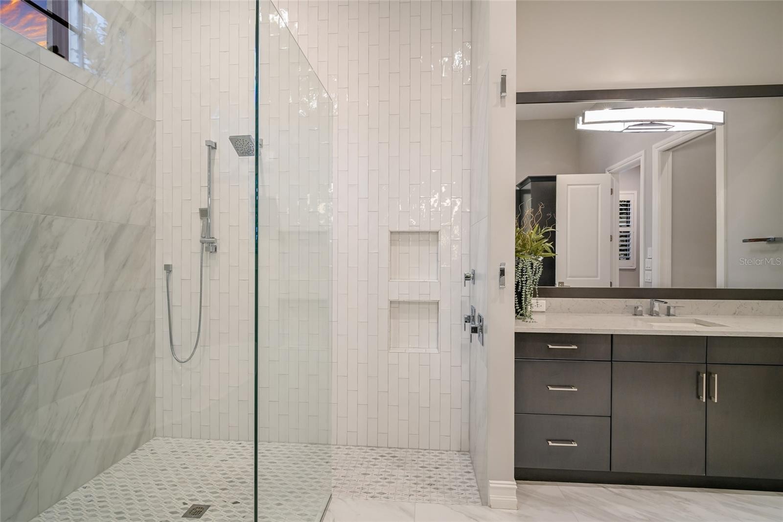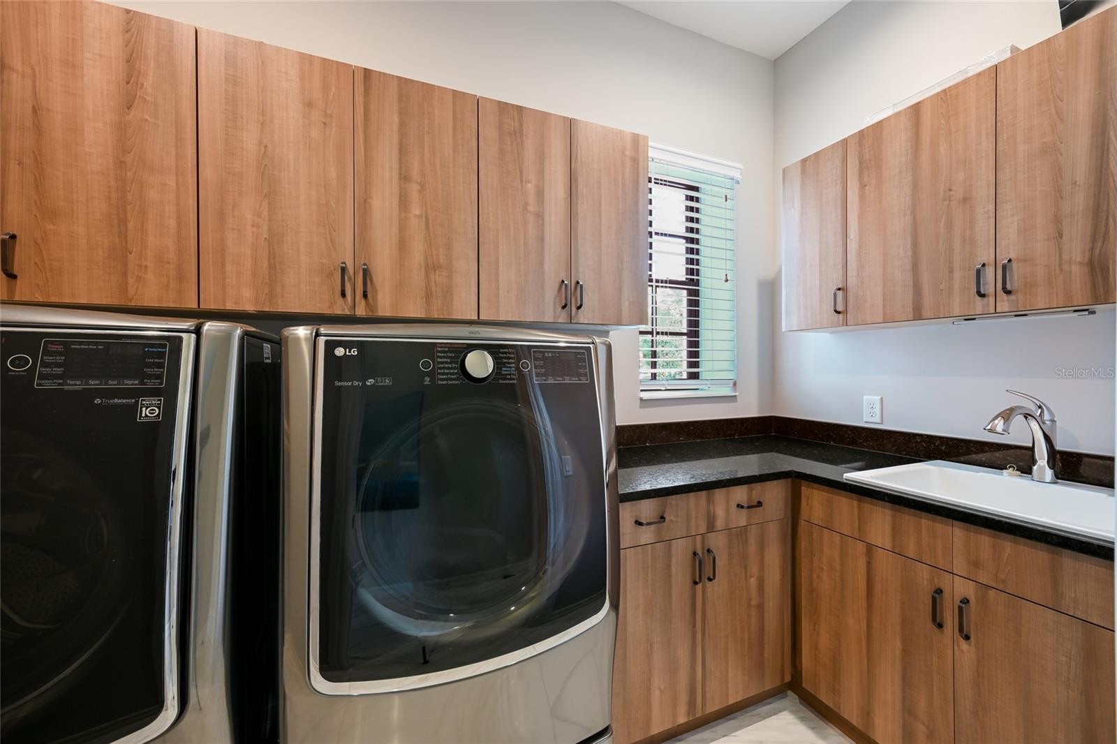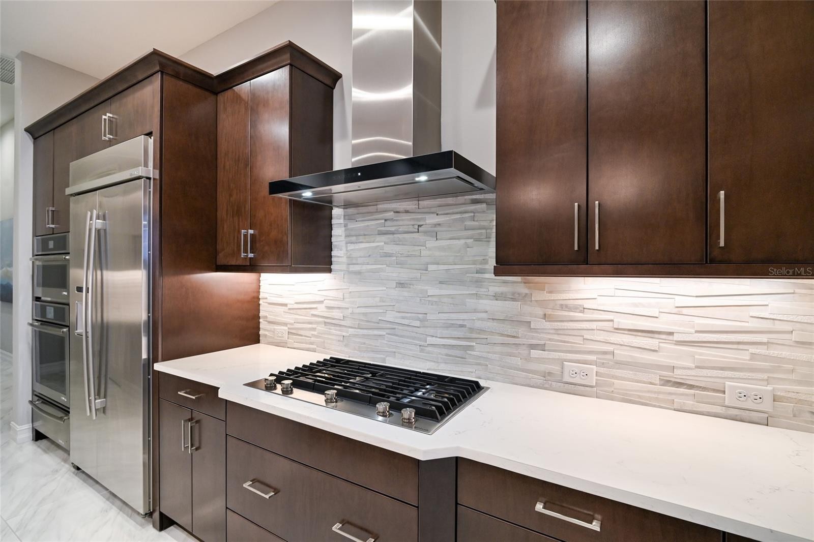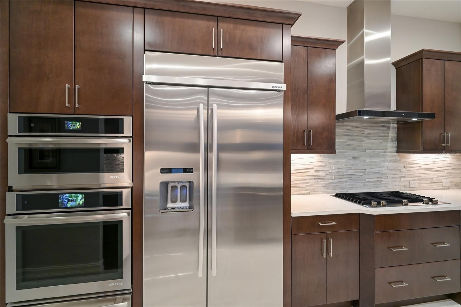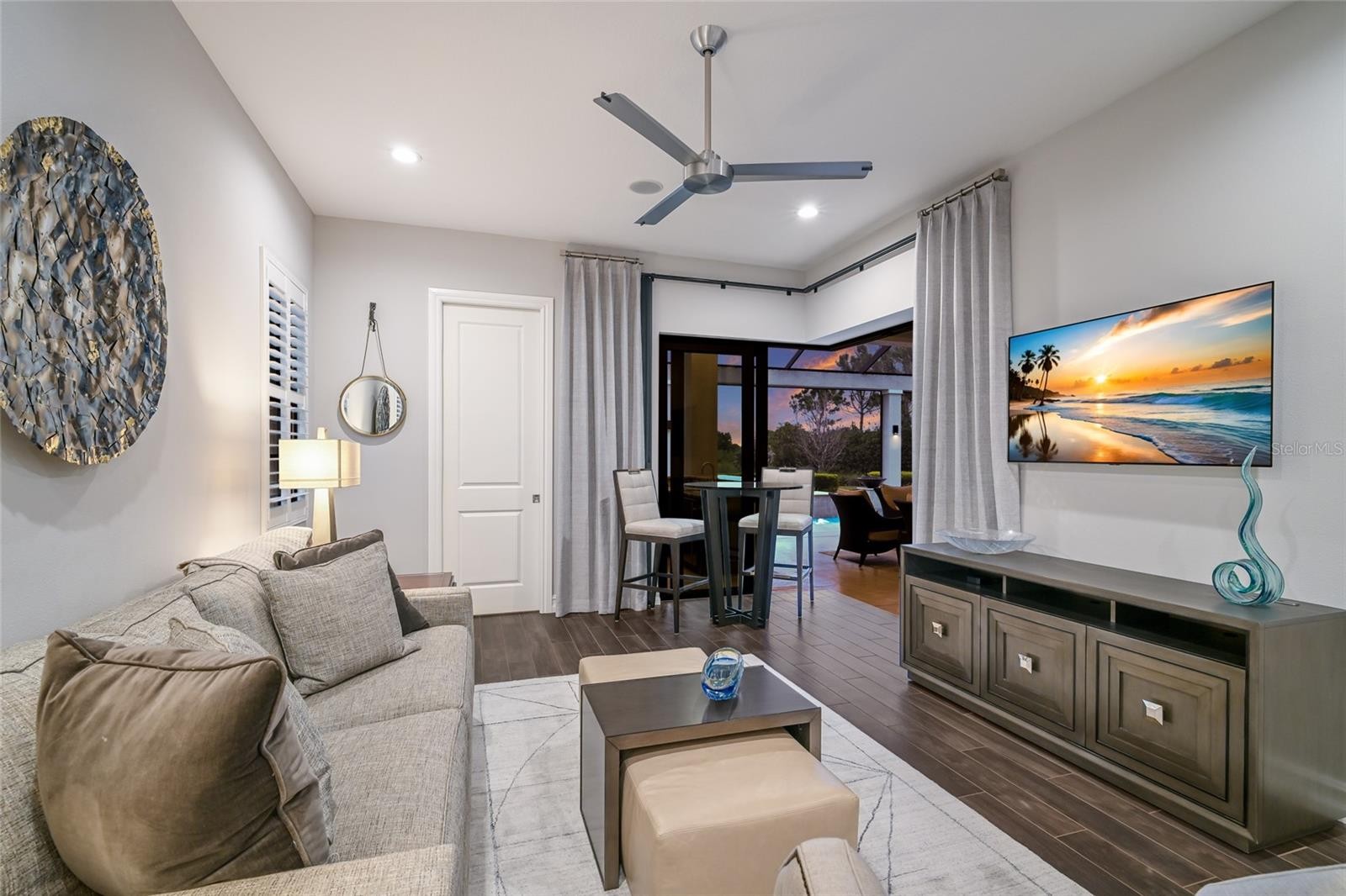 Curated by an interior designer, this professionally refined residence was built on a stunningly private lot boasting conservation wildlife views in the Vineyards section in the exclusive gated community of The Lake Club. Encompassing 3,268 square feet of open one-story living, this customized Stock Home built in 2019 exudes stylishly planned indoor and outdoor spaces, accentuated volume ceilings, skillfully selected finishes, significant upgrades after build, and, of course, all IMPACT windows/doors/sliders. A magnificent outdoor living retreat delivers on all fronts with extensive open and under cover spaces grounded with travertine pavers, soaring designer accentuated ceilings, full summer kitchen recently expanded with a wrap around bar, a PebbleTec heated saltwater pool/spa with fire bowls, and a dual sided gas fireplace with surrounding stone. Ten foot disappearing impact glass sliders seamlessly connect the outdoor oasis to a luxuriantly elevated great room, dining area and kitchen crowned with stunning ceiling treatments and designer light fixtures creating a sophisticated and open continuity of space. Meanwhile the kitchen further accentuates with waterfall quartz counters, dovetail soft-close drawers, large walk-in pantry, high-performance Jenn-Air appliances, and even a warming drawer. An impressive club room with an ensuite pool bath directly off lanai beckons for entertaining or spill over guests with the addition of a built-in bar with undercounter wine and beverage fridges. Serentity awaits in the owner’s quarters positioned on a private wing, offering tray ceilings, large scale windows, direct lanai access via French doors, two oversized walk-in customized closets, privacy remote screens, and a luxuriously appointed bath with separate vanity stations with an abundance of cabinetry, an oversized invigorating shower, soaking tub, and separate water closet. There are two additional guest suites generous in size, both with ensuite full baths, walk-in closets, plantation shutters, and each on separate wings of the home. The residence also offers a powder room and an impressive office behind double-entry doors just off the entry foyer. Other notable highlights of this newly built all-encompassing 5,039 total square foot residence includes the addition of a stone facade and recently painted exterior, welcoming courtyard entry pillars, brilliantly finished laundry room, tankless water heater, all impact windows and doors, water softener system, reverse osmosis in the kitchen, Smarthome automation, and an oversized three car garage with built-in storage cabinets. Modern refinement and a lifestyle fulfilled beckons in The Lake Club, where residents enjoy access to a wealth of amenities, including two resort-style heated pools, Grande Clubhouse with fine dining and bar area, a fitness center, spa, tennis courts, pickleball, a playground, dog park, and services of a full-time concierge and activities director.