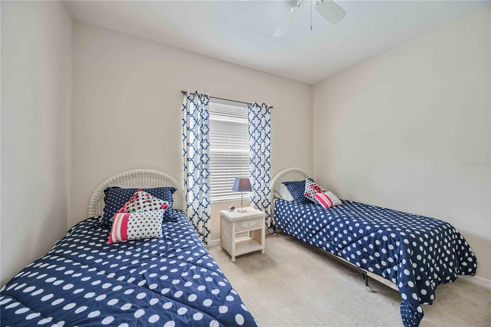 Step inside this pristine, move-in-ready home and immediately notice the tile flooring and elegant coffered and tray ceilings throughout. The front living area offers wonderful flexibility and can easily serve as a formal dining room, home office, or sitting area. Nearby are two spacious guest bedrooms, each featuring its own private full bathroom, ideal for guests or multigenerational living. The home flows seamlessly into the open-concept main living space and includes a large laundry room for added convenience. This TURN-KEY, fully furnished home allows you to move right in and start enjoying Florida living right away. The heart of the home is the expansive upgraded kitchen, complete with shaker-style cabinetry, granite countertops, pendant lighting, subway tile backsplash, matching appliances, a pantry closet, and a large center island—perfect for entertaining and everyday living. Natural light fills the family room through large sliding glass doors, connecting effortlessly to the outdoor space. The private primary suite, tucked away at the back of the home, features his-and-hers closets and an en-suite bath with dual sinks and a walk-in shower, creating a relaxing retreat. Outside, enjoy your own screened-in patio and sparkling pool, ideal for grilling, relaxing, or evening swims. With no rear neighbors and peaceful reserve views, privacy is a standout feature. Located in the gated Windwood community with low HOA dues and close to shopping, dining, and daily conveniences, this home is perfect as a primary residence, vacation home, or investment property. Schedule your private showing today and start living the Florida lifestyle!