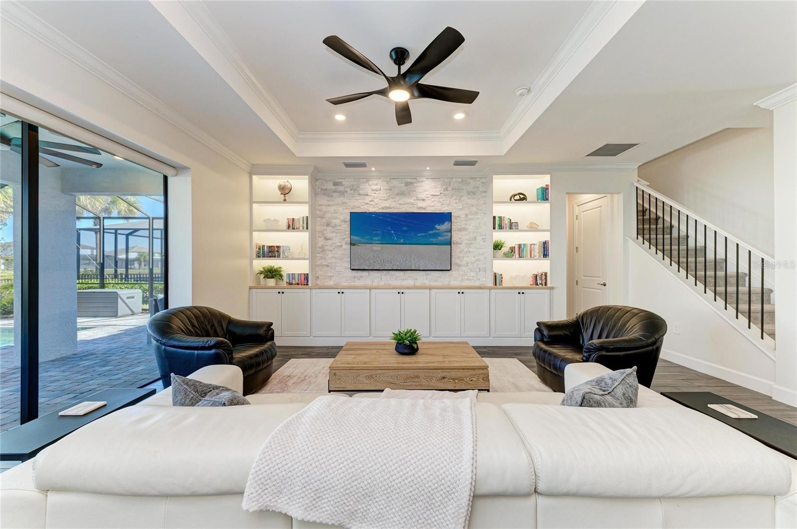 Welcome to this STUNNING and UPGRADED residence, ideally situated on a quiet CUL-DE-SAC street within the gated, maintenance-free community of SAPPHIRE POINT at Lakewood Ranch. This thoughtfully designed floor plan offers 4 bedrooms and 3.5 baths, including a FIRST FLOOR PRIMARY SUITE, dedicated STUDY, and an UPSTAIRS LOFT. Three additional bedrooms are located on the second level, all with walk-in closets, including one with an EN-SUITE BATH. Designed for effortless indoor-outdoor living, the covered and screened lanai overlooks tranquil pond views and features a HEATED SALTWATER POOL AND SPA, along with prep for an outdoor kitchen—perfect for year-round enjoyment. Interior upgrades include QUARTZ COUNTERTOPS, CROWN MOLDING, 8-FOOT DOORS, TRAY CEILINGS, PLANTATION SHUTTERS, REMOTE CONTROLLED SHADES, and FRESHLY PAINTED interiors. Thoughtful systems enhancements include WHOLE HOME WATER FILTRATION, REVERSE OSMOSIS SYSTEM, CAT6 AND RG6 WIRING THROUGHOUT, and MULTI ROOM AUDIO PRE-WIRE WITH BUILT-IN CEILING SPEAKERS. The EXTENDED GARAGE WITH BUILT-IN STORAGE, EPOXY GARAGE FLOORING, and 30AMP GENERATOR HOOKUP further enhance everyday functionality. Sapphire Point offers resort-style amenities including a clubhouse, fitness center, pool, playground, dog park, and basketball court. Ideally located near Main Street at Lakewood Ranch, University Town Center, Premier Sports Campus, and I-75, and zoned for the new Lake Manatee K-8 School for the 2026–2027 school year.