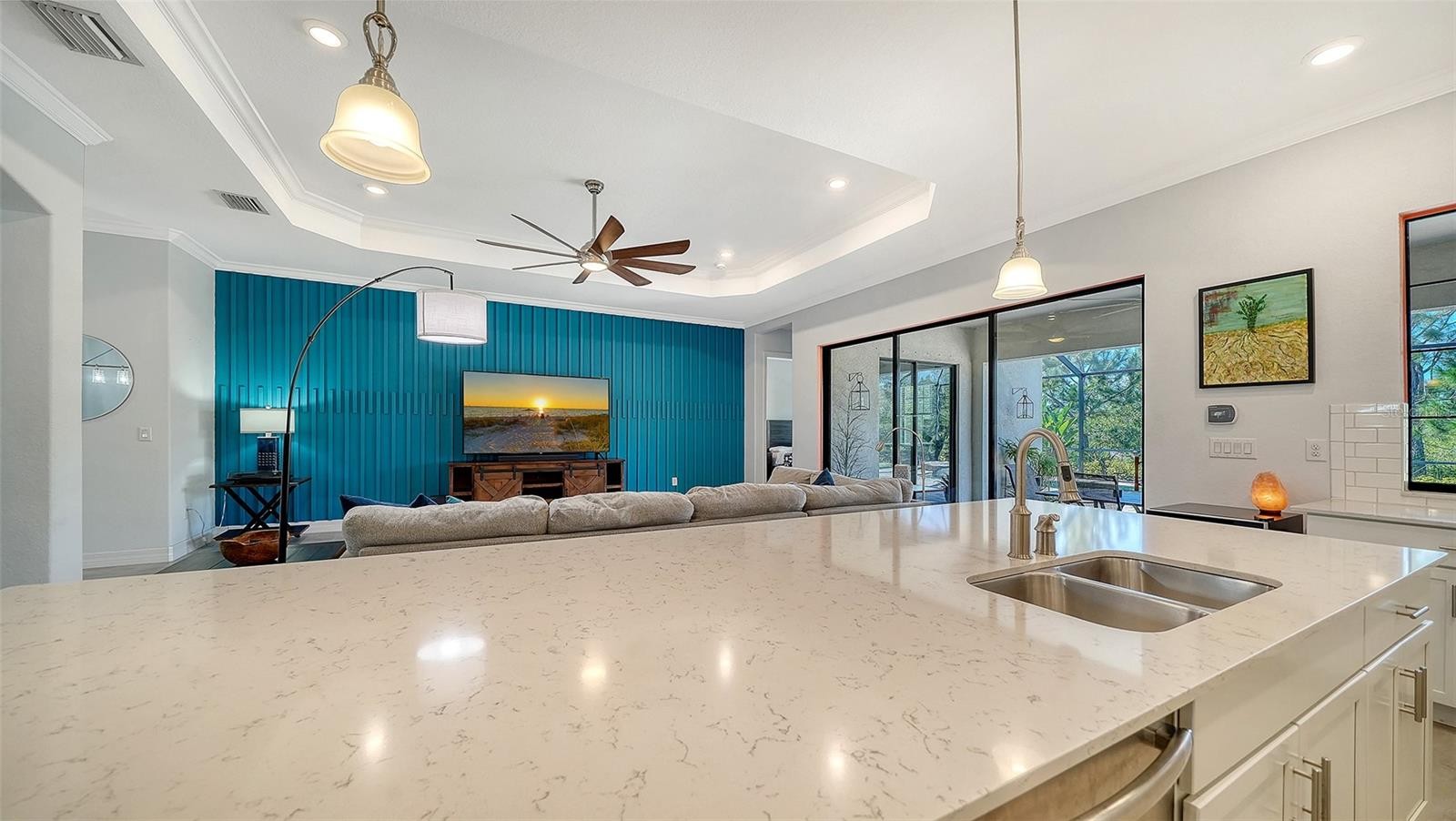 Peace and tranquility abounds. From when you park in the Paver driveway and walk on the Paver sidewalk entry way to the front door of this home and open it - you see and feel the private lushness of the conservation easement in the rear of this home and the magnificence of the pool/deck area overlooking it. The foyer entry of this newer 2019 built home opens into a great room comprised of the 13 x 14 dining area, the 18 x 22 living area, and the 11 x 21 Kitchen all opening to the 12 x 24 Paver, covered and screened lanai and the 28 x 40 screened pool deck overlooking this beautiful greenbelt area of trees and vegetation. The covered lanai area has a motorized sunshade to protect the rear of the home when down and when up, one can enjoy bright and full sunsets from your lanai and living area. The hurricane panels for both sliding glass doors are stored in the attic area. After dark, the lanai area becomes a comfortable oasis for dining, drinking and relaxing by the 13 x 26 swimming pool and spa. The primary bedroom of this home has the same expansive views as does the living area. The primary bathroom has dual sinks, a separate bathtub and separate shower stall. On the front of the home is the 12 x 14 second bedroom guest suite, with its bathroom with a tub/shower combination. Between the primary bedroom and the guest bedroom, directly off the great room is the 12 x 14 third bedroom, currently being used as an office. All the living area has tile flooring and all the bedrooms have carpet. This home is ready for immediate occupancy for the right buyer. This Hillside enclave in Country Club East of Lakewood Ranch has amenities such as a newly renovated fitness center at the clubhouse named "The Retreat" with the community swimming pool and volleyball court. There is another amenity facility near the entrance of the subdivision. This neighborhood is so close to UTC Mall, shopping, Publix, CVS, Walgreens, the new Fleming's Steakhouse and the Ruth Chris Steakhouse and a short drive to Waterside, the Polo Club and to I-75. Only twenty minutes from Downtown Sarasota and only thirty minutes to St. Armands Circle and Lido Beach.