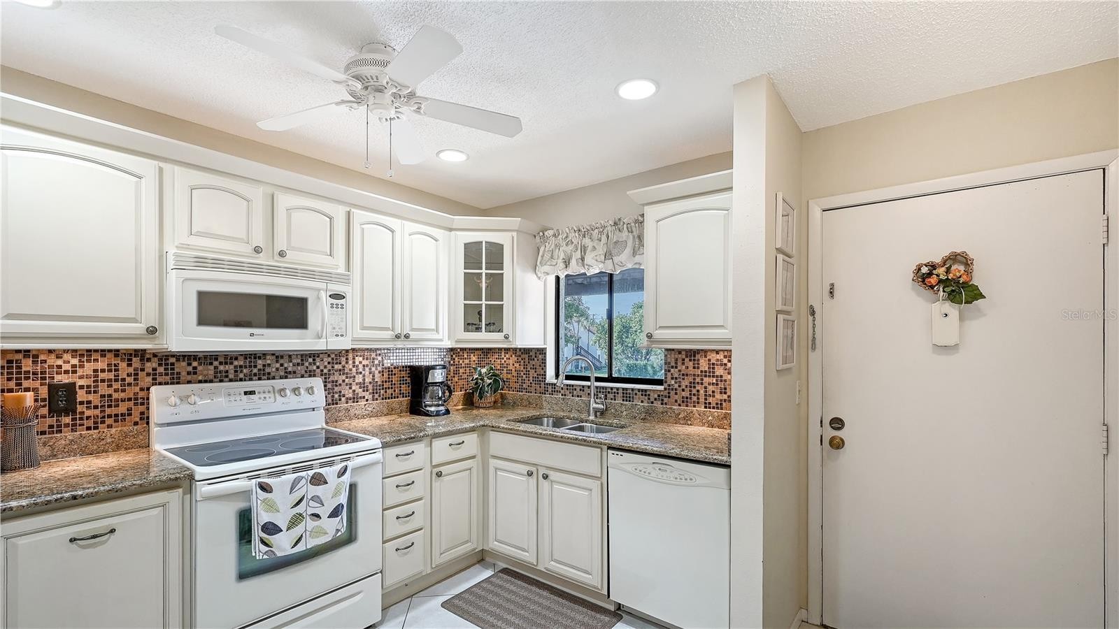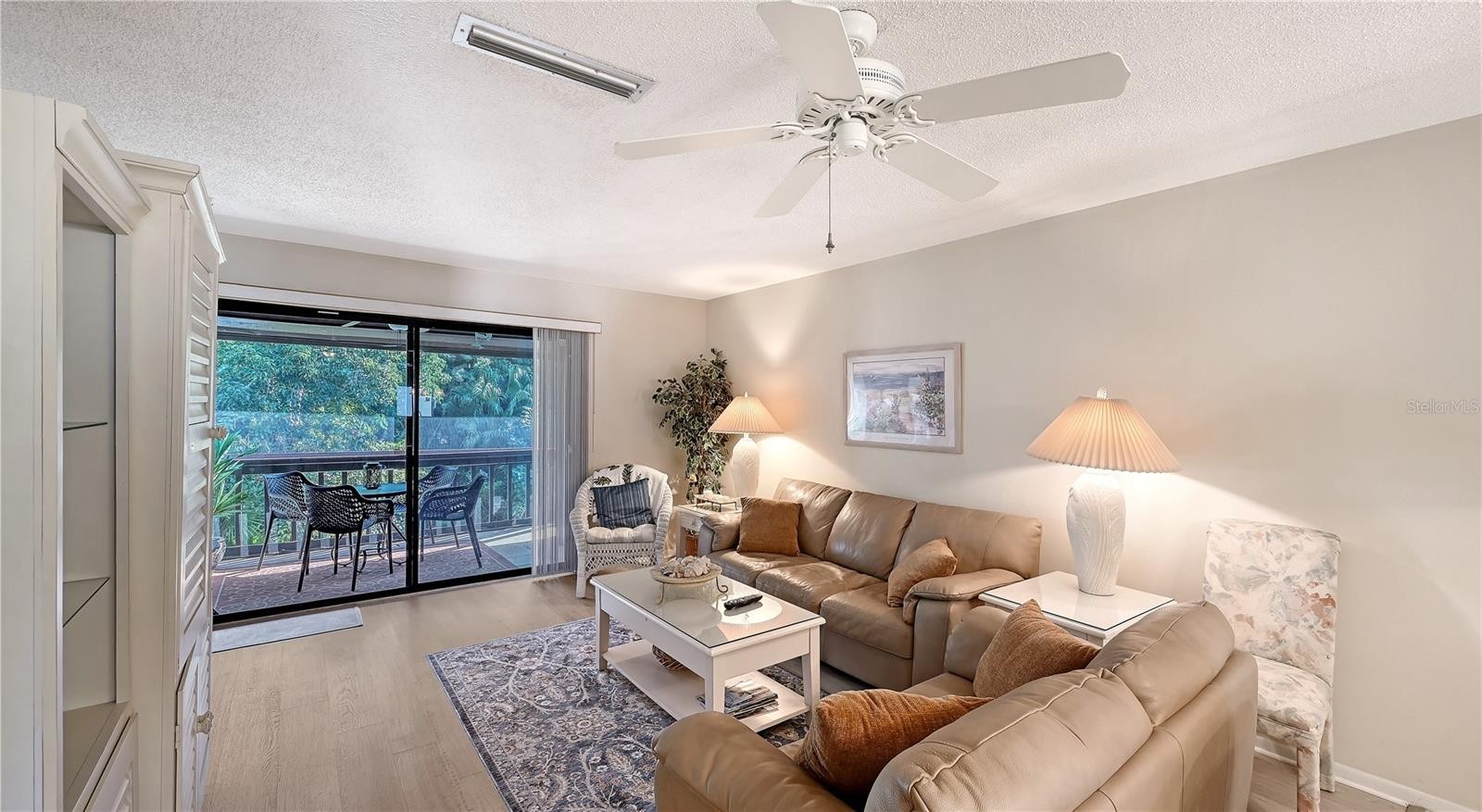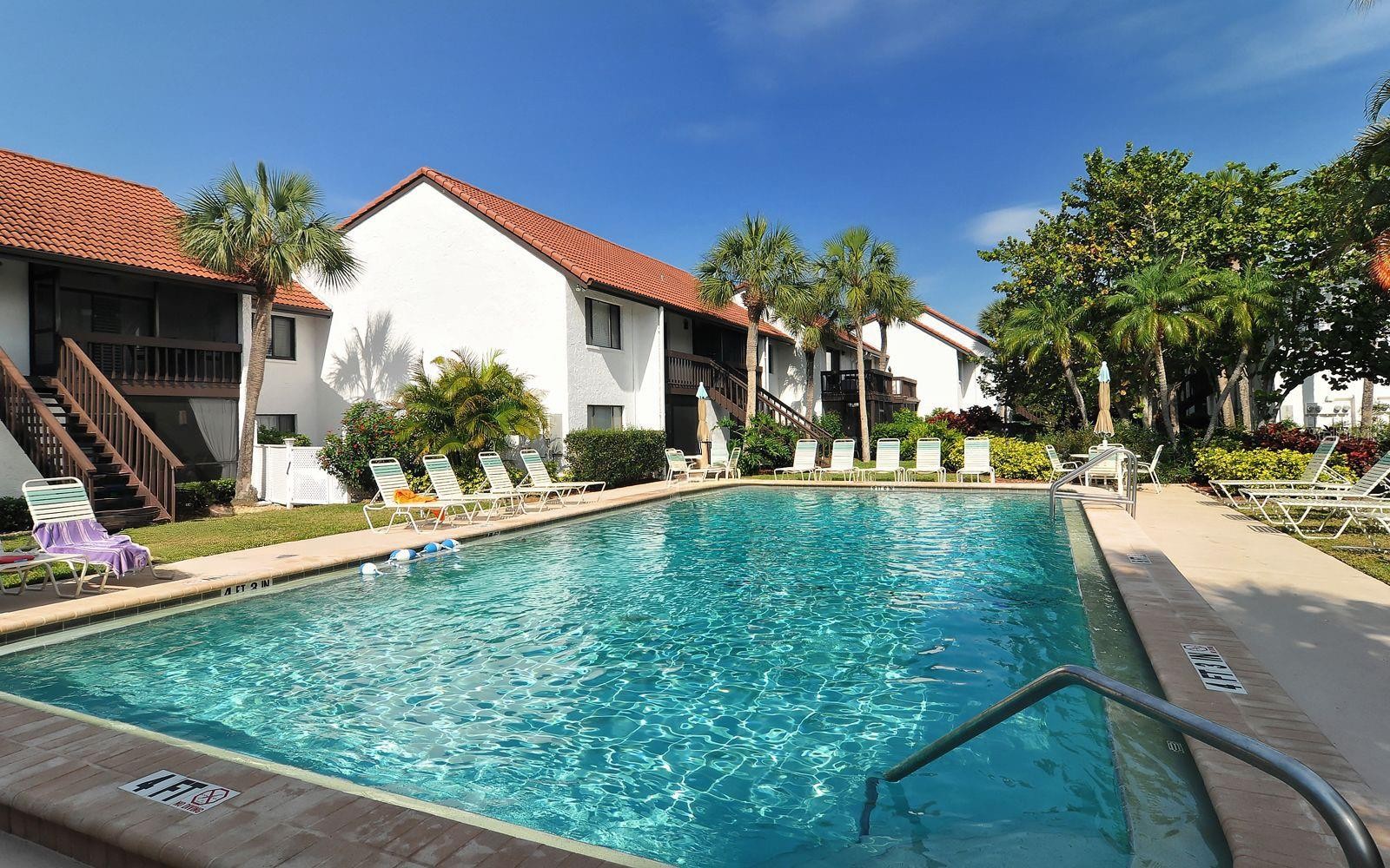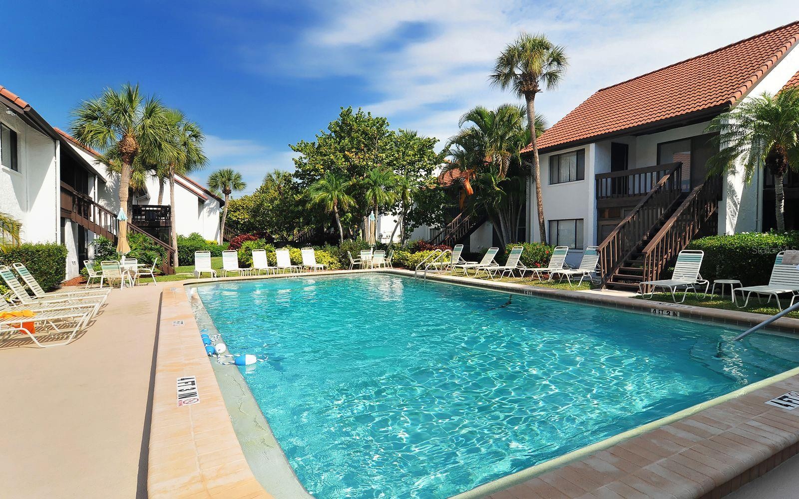 Welcome to Castel Del Mare, one of Sarasota’s most beloved waterfront communities, ideally positioned at the gateway to Siesta Key. This 2-bedroom, 2-bath residence on the second floor offers a perfect blend of comfort, location, and resort-style living. The condo features a thoughtfully designed layout with spacious living and dining areas, ideal for both everyday living and entertaining. The split-bedroom floor plan provides privacy for owners and guests, while the second-floor setting offers a peaceful retreat surrounded by lush tropical landscaping. The updated kitchen is both functional and inviting, featuring warm wood cabinetry, a built-in pantry with convenient pull-out shelving, granite countertops, and a beautiful mosaic-style backsplash that adds texture and visual interest. The primary bedroom offers a generous walk-in closet that discreetly houses the unit’s private washer and dryer-an appreciated convenience not found in all units within the community. Step outside to the screened-in lanai, where serene wooded views create a quiet, relaxing atmosphere with its own back staircase leading to the tennis and pool area. Castel Del Mare is known for its exceptional amenities, including two heated pools, one directly on the Intracoastal Waterway, where residents enjoy watching dolphins, passing boats, and breathtaking sunsets. Additional amenities include tennis and pickleball courts, shuffleboard, a bayside fishing gazebo, kayak storage with launch access, and a scenic boardwalk that winds along the water’s edge. Walk, bike, or hop on the trolley to the world-famous white sands of Siesta Key Beach, consistently ranked among the best beaches. Just steps away are waterfront dining, a marina, boutique shops, and boat club options, while everyday conveniences such as Publix, pharmacies, and excellent mainland restaurants are only minutes away. This is Sarasota living at its best!