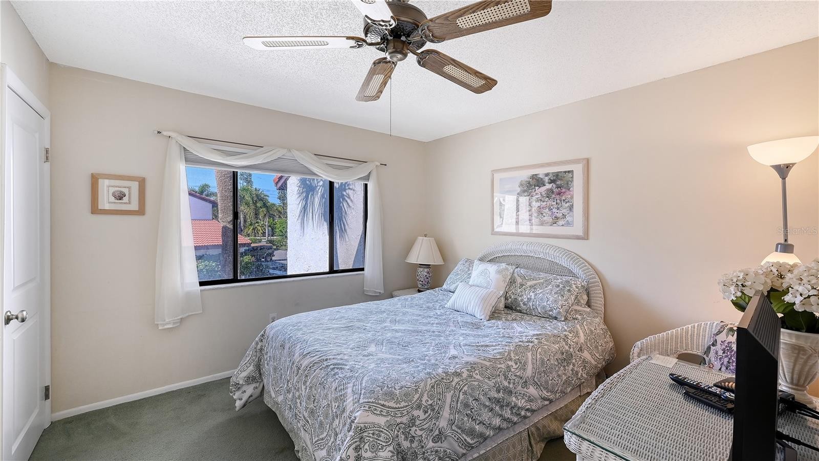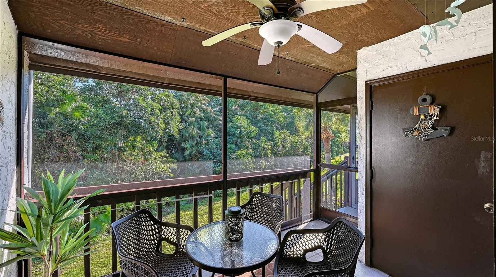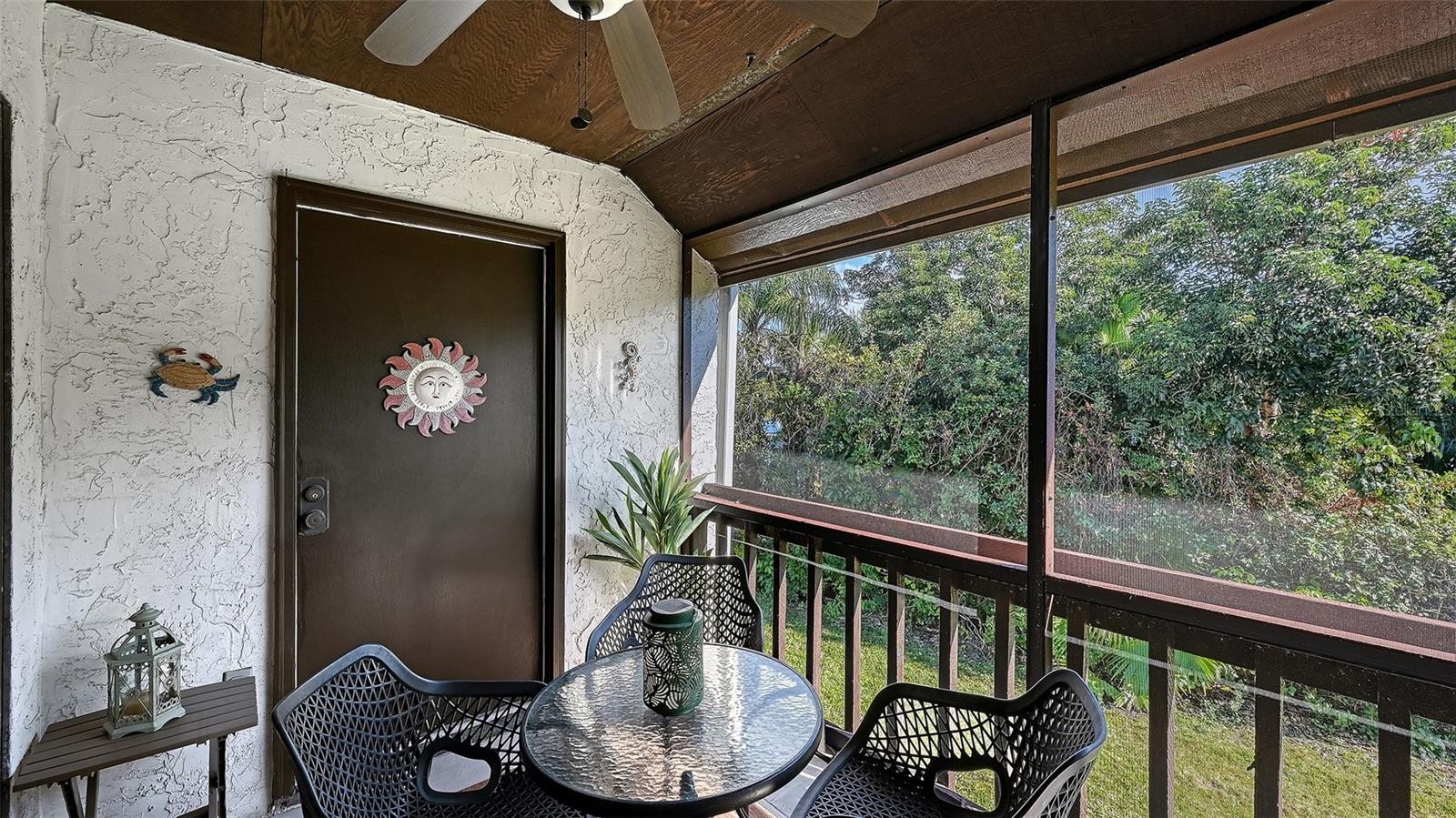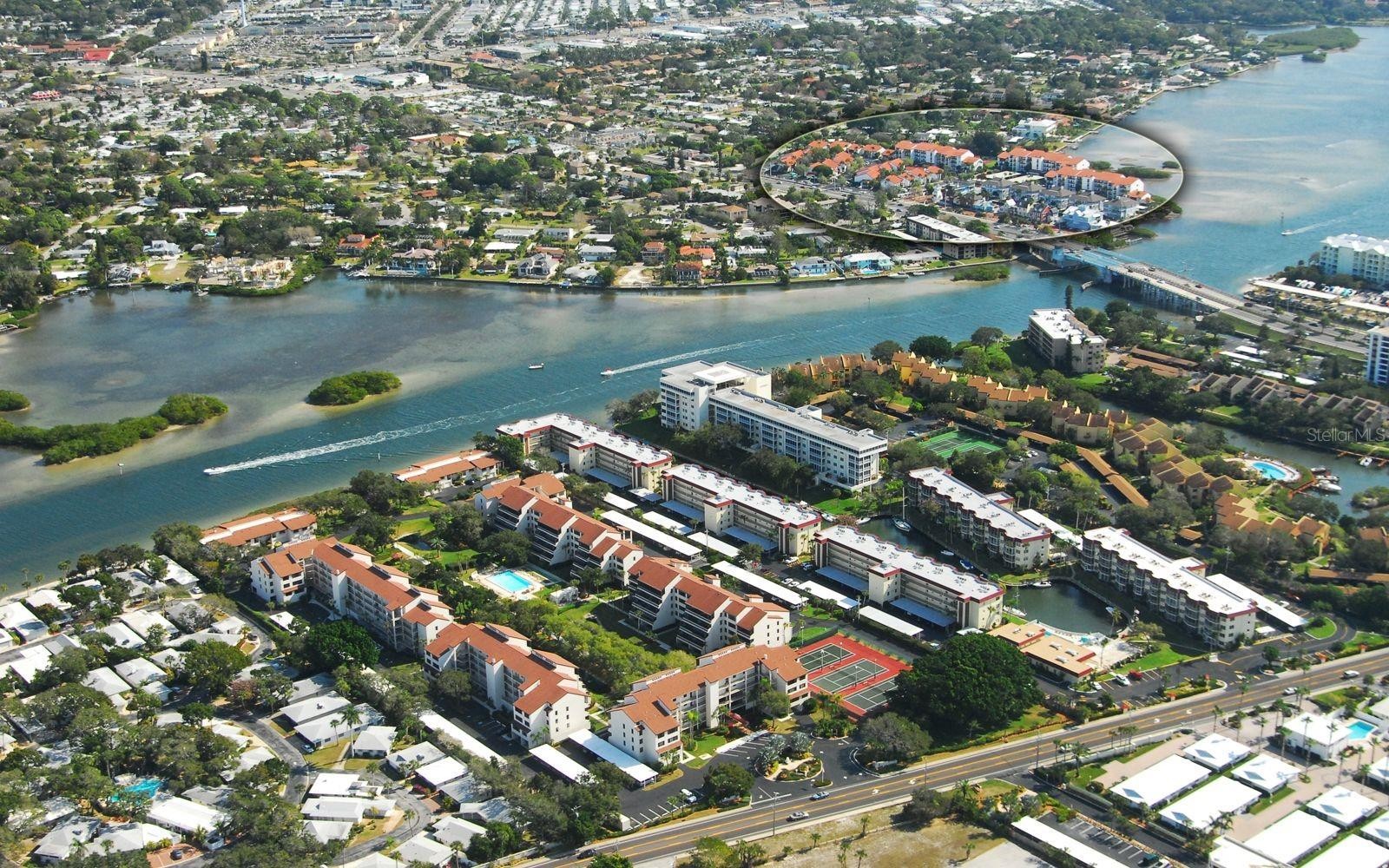 Welcome to Castel Del Mare, one of Sarasota’s most beloved waterfront communities, ideally positioned at the gateway to Siesta Key. This 2-bedroom, 2-bath residence on the second floor offers a perfect blend of comfort, location, and resort-style living. The condo features a thoughtfully designed layout with spacious living and dining areas, ideal for both everyday living and entertaining. The split-bedroom floor plan provides privacy for owners and guests, while the second-floor setting offers a peaceful retreat surrounded by lush tropical landscaping. The updated kitchen is both functional and inviting, featuring warm wood cabinetry, a built-in pantry with convenient pull-out shelving, granite countertops, and a beautiful mosaic-style backsplash that adds texture and visual interest. The primary bedroom offers a generous walk-in closet that discreetly houses the unit’s private washer and dryer-an appreciated convenience not found in all units within the community. Step outside to the screened-in lanai, where serene wooded views create a quiet, relaxing atmosphere with its own back staircase leading to the tennis and pool area. Castel Del Mare is known for its exceptional amenities, including two heated pools, one directly on the Intracoastal Waterway, where residents enjoy watching dolphins, passing boats, and breathtaking sunsets. Additional amenities include tennis and pickleball courts, shuffleboard, a bayside fishing gazebo, kayak storage with launch access, and a scenic boardwalk that winds along the water’s edge. Walk, bike, or hop on the trolley to the world-famous white sands of Siesta Key Beach, consistently ranked among the best beaches. Just steps away are waterfront dining, a marina, boutique shops, and boat club options, while everyday conveniences such as Publix, pharmacies, and excellent mainland restaurants are only minutes away. This is Sarasota living at its best!