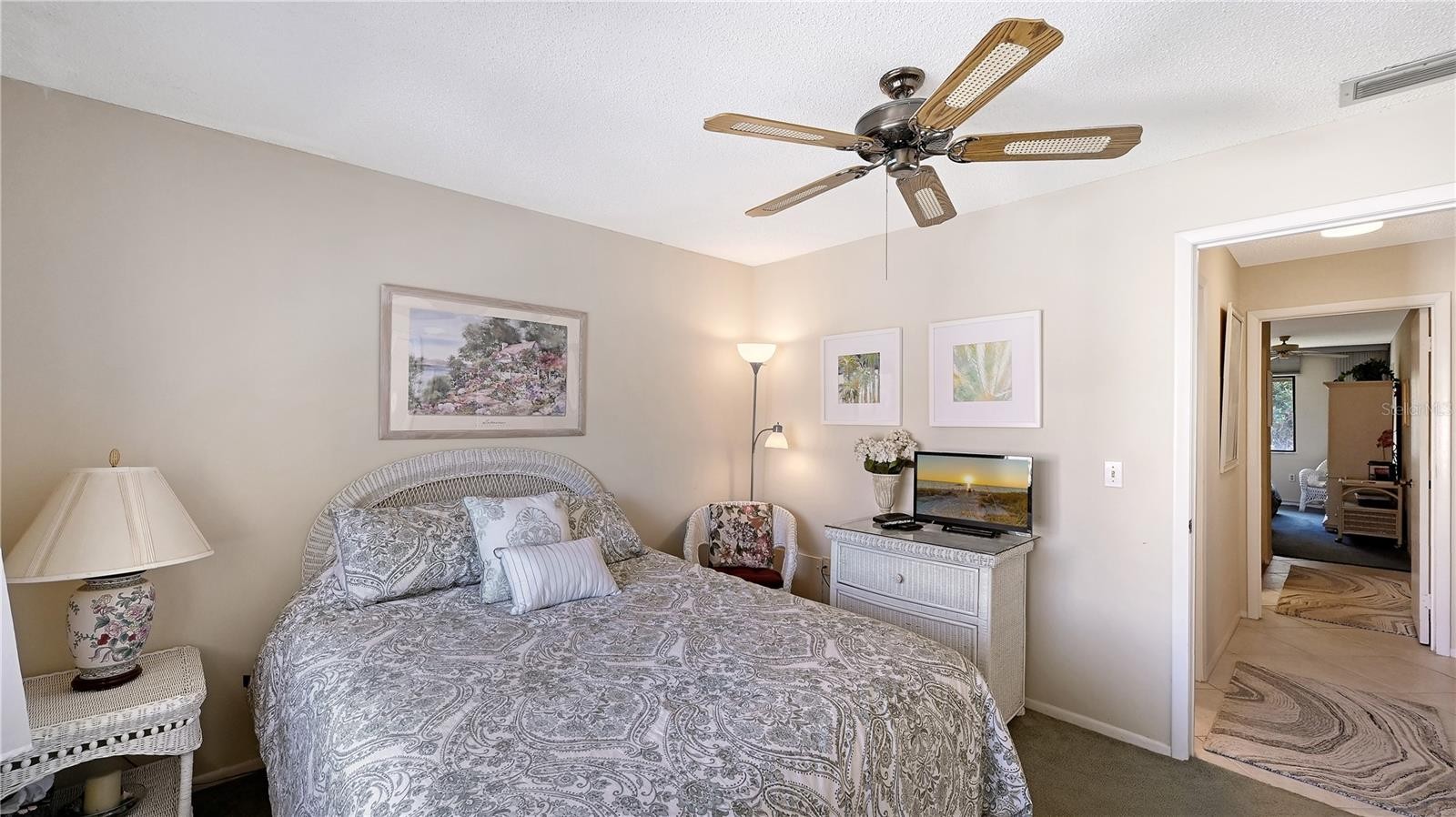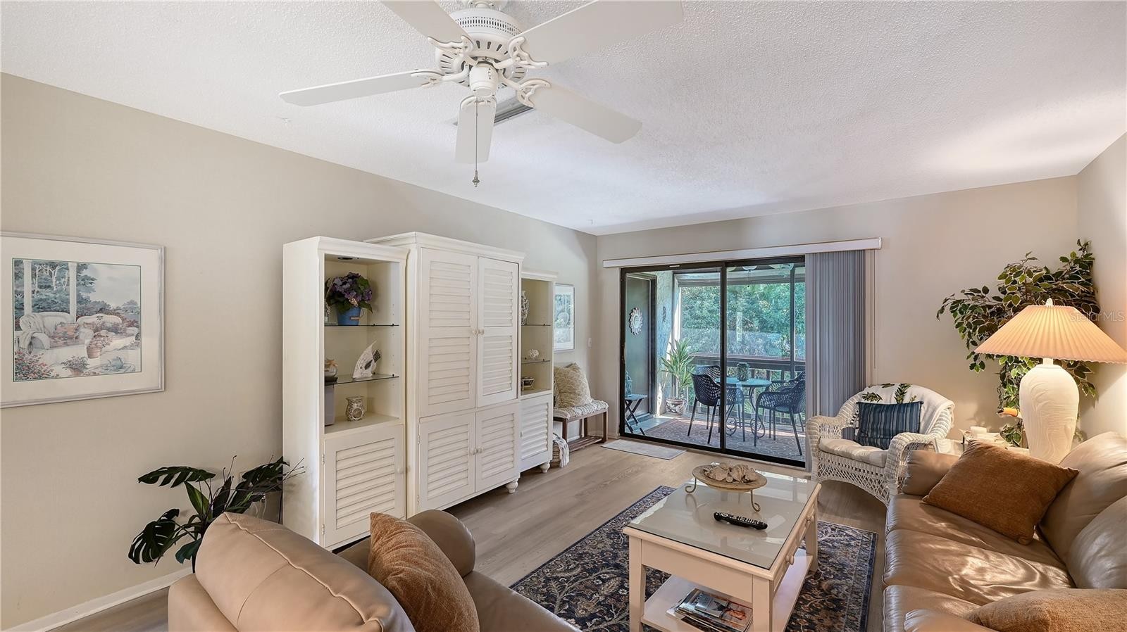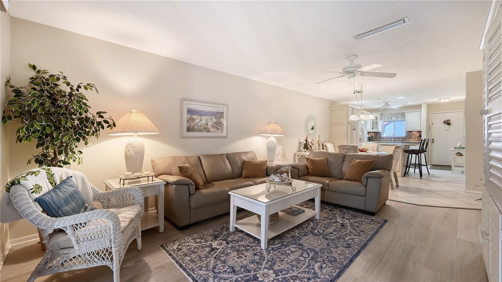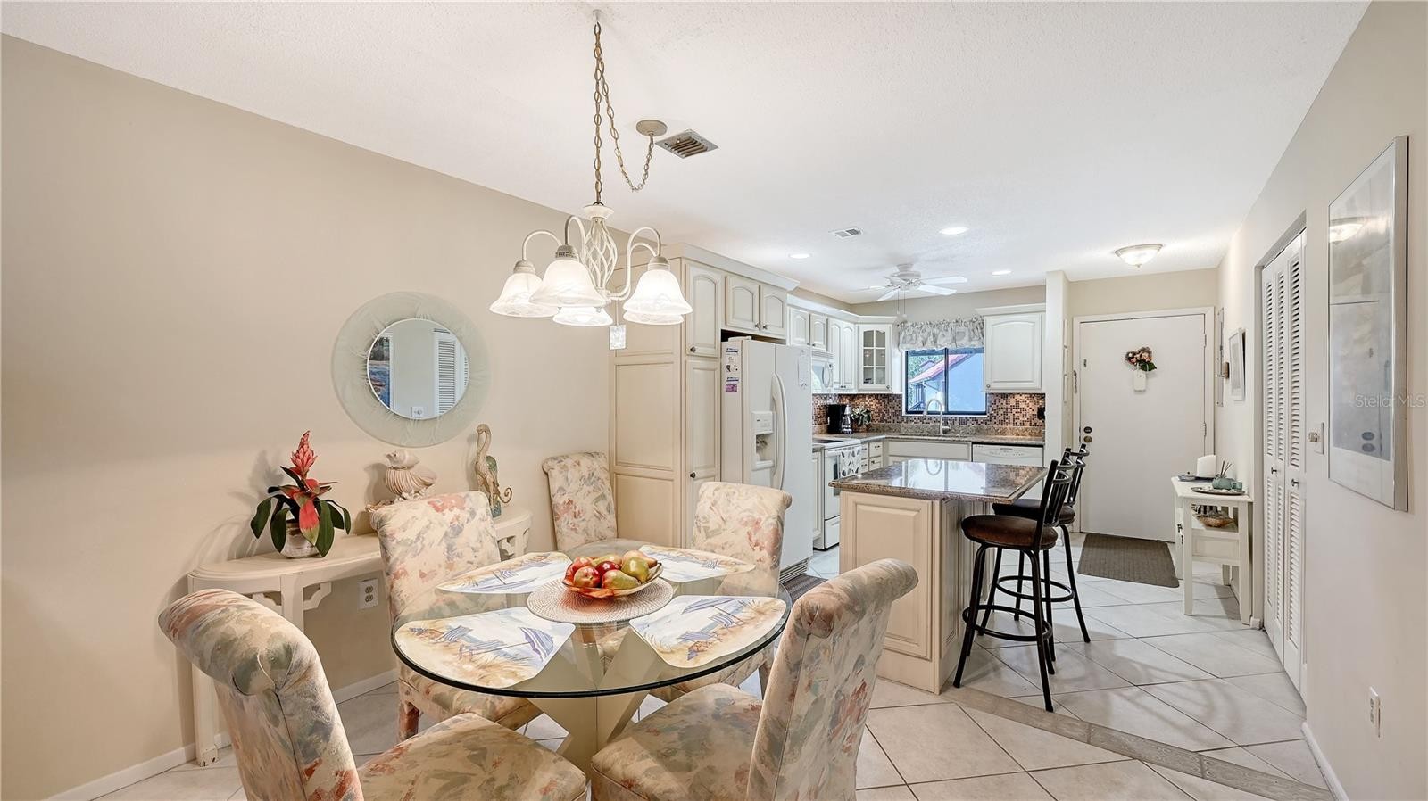 Welcome to Castel Del Mare, one of Sarasota’s most beloved waterfront communities, ideally positioned at the gateway to Siesta Key. This 2-bedroom, 2-bath residence on the second floor offers a perfect blend of comfort, location, and resort-style living. The condo features a thoughtfully designed layout with spacious living and dining areas, ideal for both everyday living and entertaining. The split-bedroom floor plan provides privacy for owners and guests, while the second-floor setting offers a peaceful retreat surrounded by lush tropical landscaping. The updated kitchen is both functional and inviting, featuring warm wood cabinetry, a built-in pantry with convenient pull-out shelving, granite countertops, and a beautiful mosaic-style backsplash that adds texture and visual interest. The primary bedroom offers a generous walk-in closet that discreetly houses the unit’s private washer and dryer-an appreciated convenience not found in all units within the community. Step outside to the screened-in lanai, where serene wooded views create a quiet, relaxing atmosphere with its own back staircase leading to the tennis and pool area. Castel Del Mare is known for its exceptional amenities, including two heated pools, one directly on the Intracoastal Waterway, where residents enjoy watching dolphins, passing boats, and breathtaking sunsets. Additional amenities include tennis and pickleball courts, shuffleboard, a bayside fishing gazebo, kayak storage with launch access, and a scenic boardwalk that winds along the water’s edge. Walk, bike, or hop on the trolley to the world-famous white sands of Siesta Key Beach, consistently ranked among the best beaches. Just steps away are waterfront dining, a marina, boutique shops, and boat club options, while everyday conveniences such as Publix, pharmacies, and excellent mainland restaurants are only minutes away. This is Sarasota living at its best!