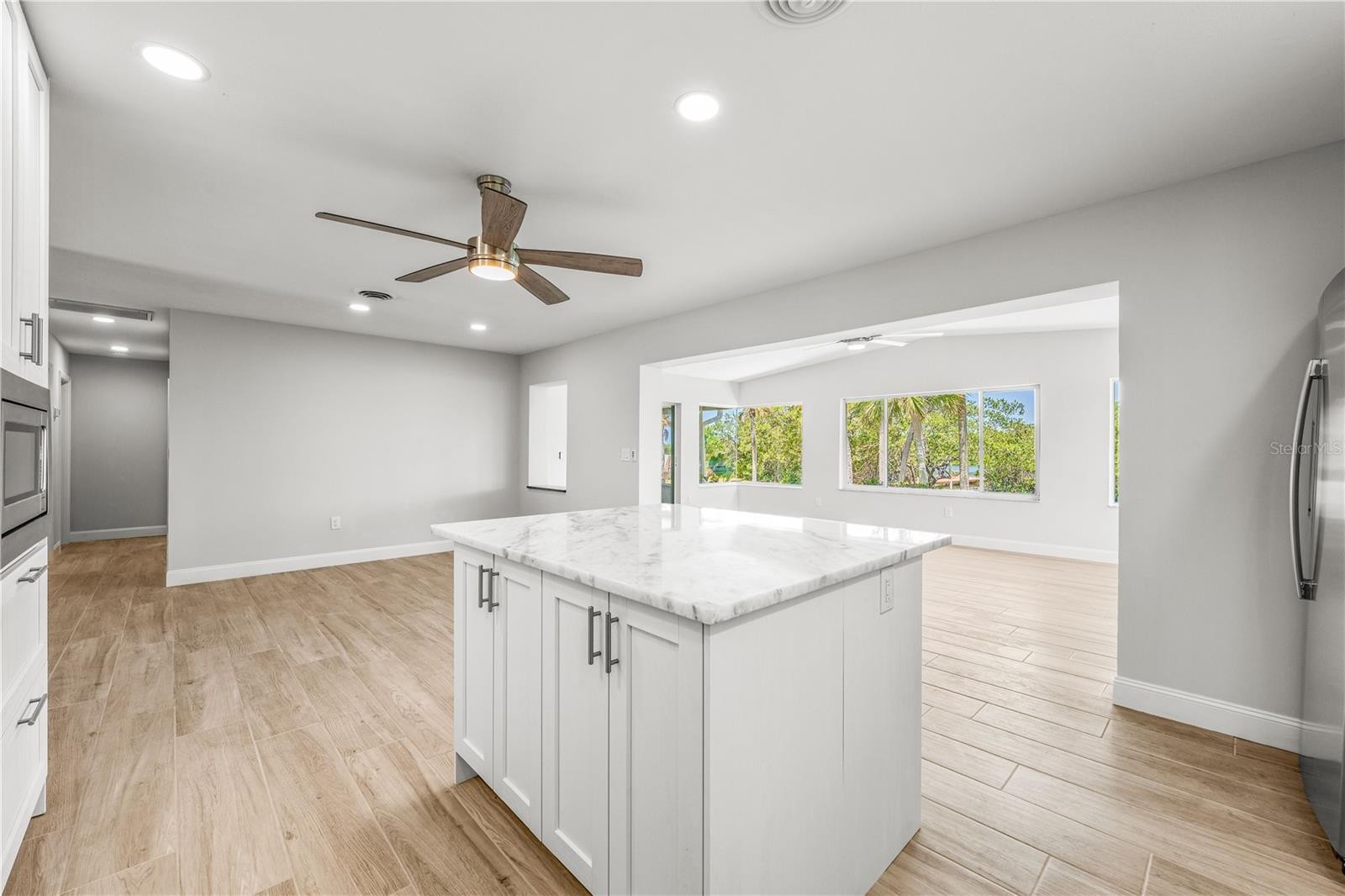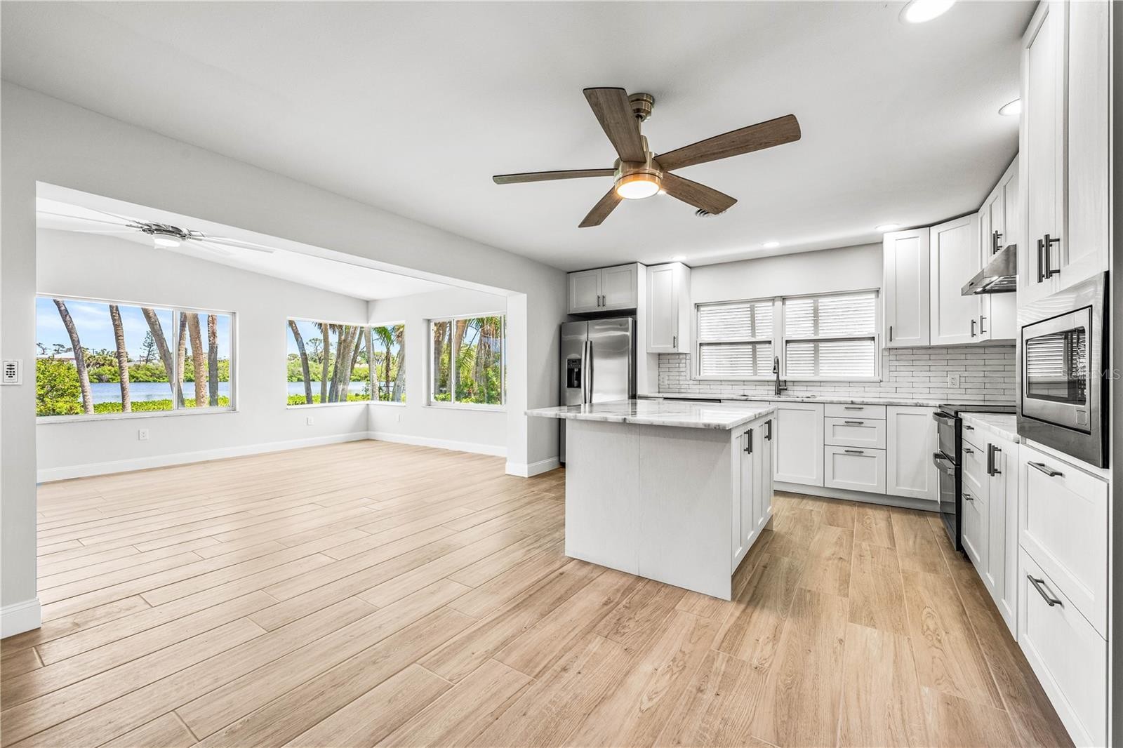 MAJOR PRICE REDUCTION!!! Highly Sought-After BOAT FRIENDLY, WATERFRONT Home, with PRIVATE BEACH ACCESS in South Venice. - Very recent remodel and renovation completed with quality craftsmanship, this stunning home features remarkable fit and finishes throughout. Located on a quiet waterfront street, 1680 Lemon Bay Dr. sits right at the mouth of the Intracoastal Waterway with unobstructed, direct access to the Gulf of America from your own backyard.The 100’ mangrove walk and dock has been completely rebuilt and offers optimal water depth for docking a boat. From your backyard dock you can easily paddle board or kayak within a couple minutes to your very own private beach oasis, available exclusively to you and your immediate neighbors. Thoughtfully designed with an open-concept floor plan, the kitchen and dining area flow seamlessly into the main living space, where panoramic bay windows frame breathtaking waterfront views and mature palm trees. The brand-new kitchen is a showstopper—featuring all-new stainless steel appliances, a large island and genuine marble countertops throughout, and bright, modern cabinetry. Retreat to the primary suite, complete with a beautifully remodeled ensuite bathroom and walk-in closet. The bathroom boasts a sleek double vanity with shaker cabinetry, while the walk-in shower steals the spotlight with floor-to-ceiling true marble tile and a bold blue glass accent, adding a modern touch. From the primary suite, enjoy direct access to the covered, screened lanai—perfect for relaxing and taking in the tranquil views. The private backyard is a peaceful escape, ideal for morning or evening paddleboard/kayak excursions or simply unwinding in a hammock strung between the palm trees. After the fun has been had, you can refresh in the outdoor shower. The possibilities are endless when it comes to enjoying Florida’s natural outdoor beauty from this home. ADDITIONAL UPDATES INCLUDE : This home has been extensively remodeled, also including interior and exterior paint, new tile flooring throughout, authentic marble finishes throughout. recessed lighting, rebuilt dock, 2025 HVAC, 2025 updated plumbing and electrical, 2025 well pump and filtration system. FEATURED LOCATION: 1680 Lemon Bay is situated as one of the closest homes to the South Venice Beach Ferry, offering exclusive access to a private beach for South Venice residents. Downtown Venice offers a quaint, historic atmosphere with a true small-town feel. it’s the perfect place to enjoy boutique shopping, local dining, and coastal culture with live performances at the Venice Theatre. You're also just minutes from Venice Municipal Airport, local public beaches, and main road; US-41 (Tamiami Trail), with a wide variety of shops and restaurants nearby. Schedule your private showing today to discover everything this remarkable home has to offer!
