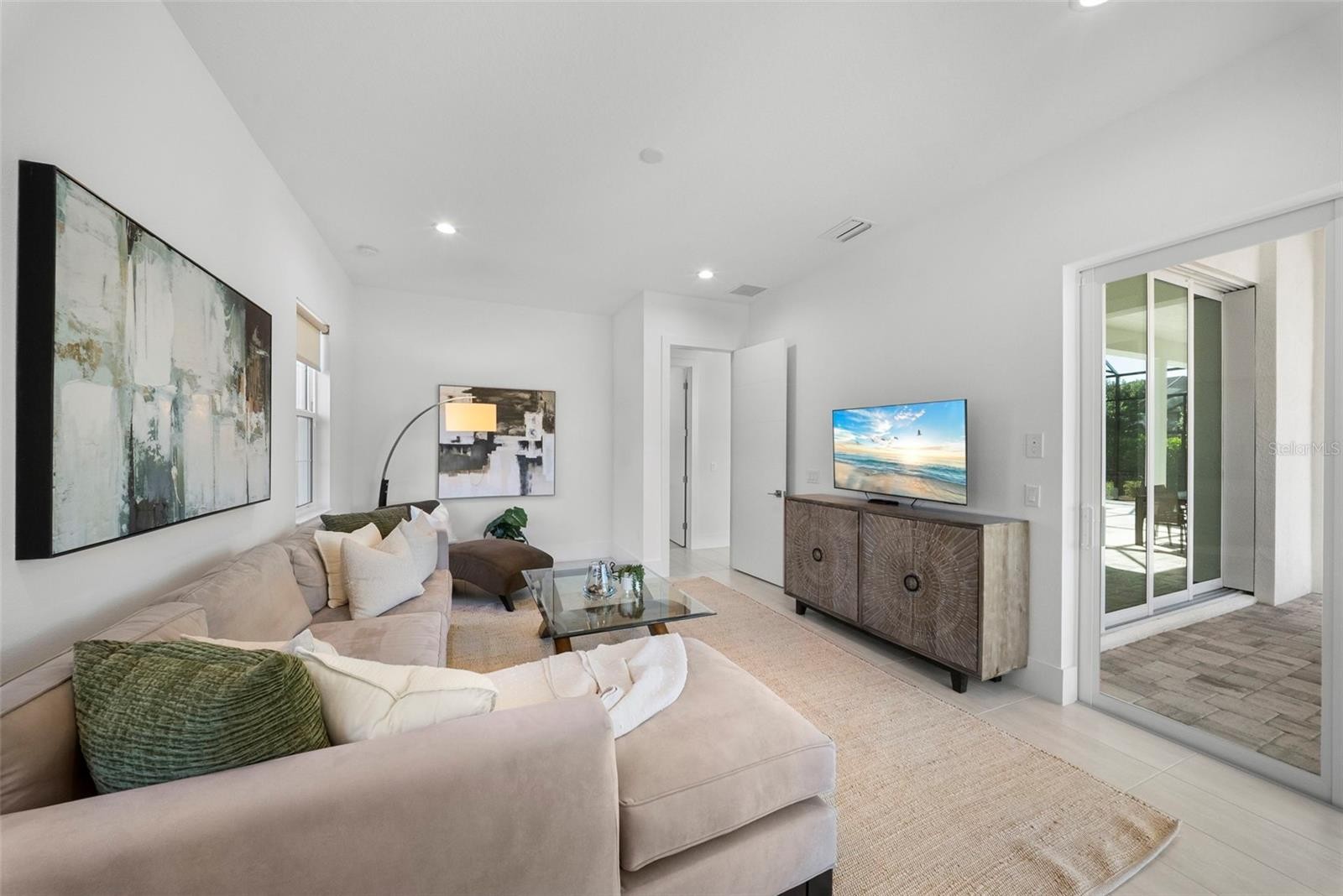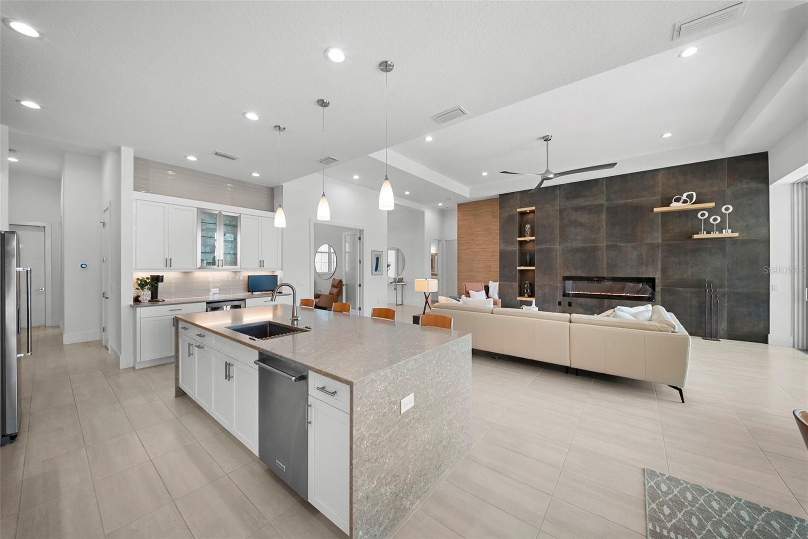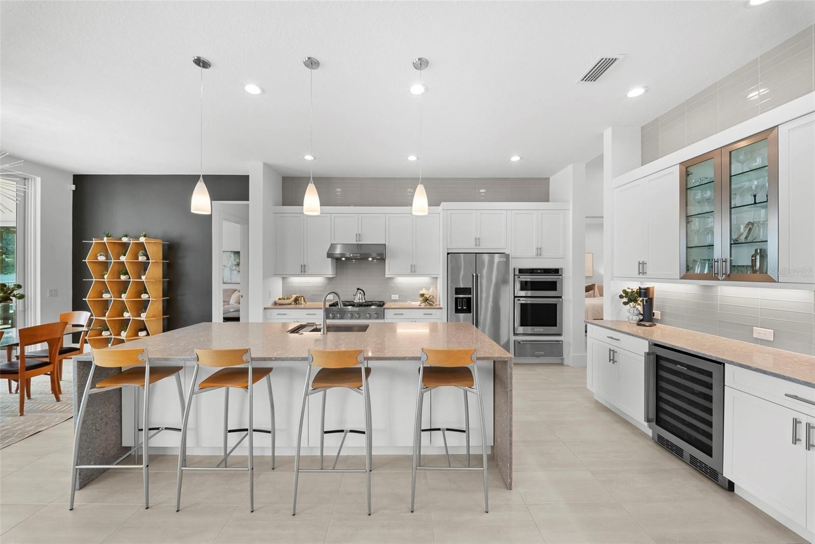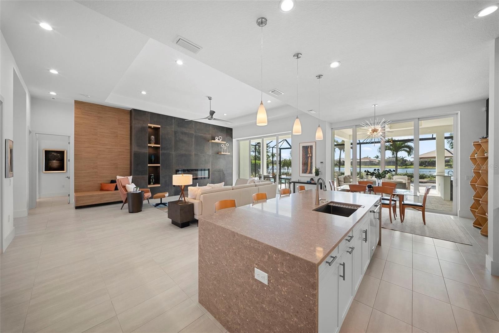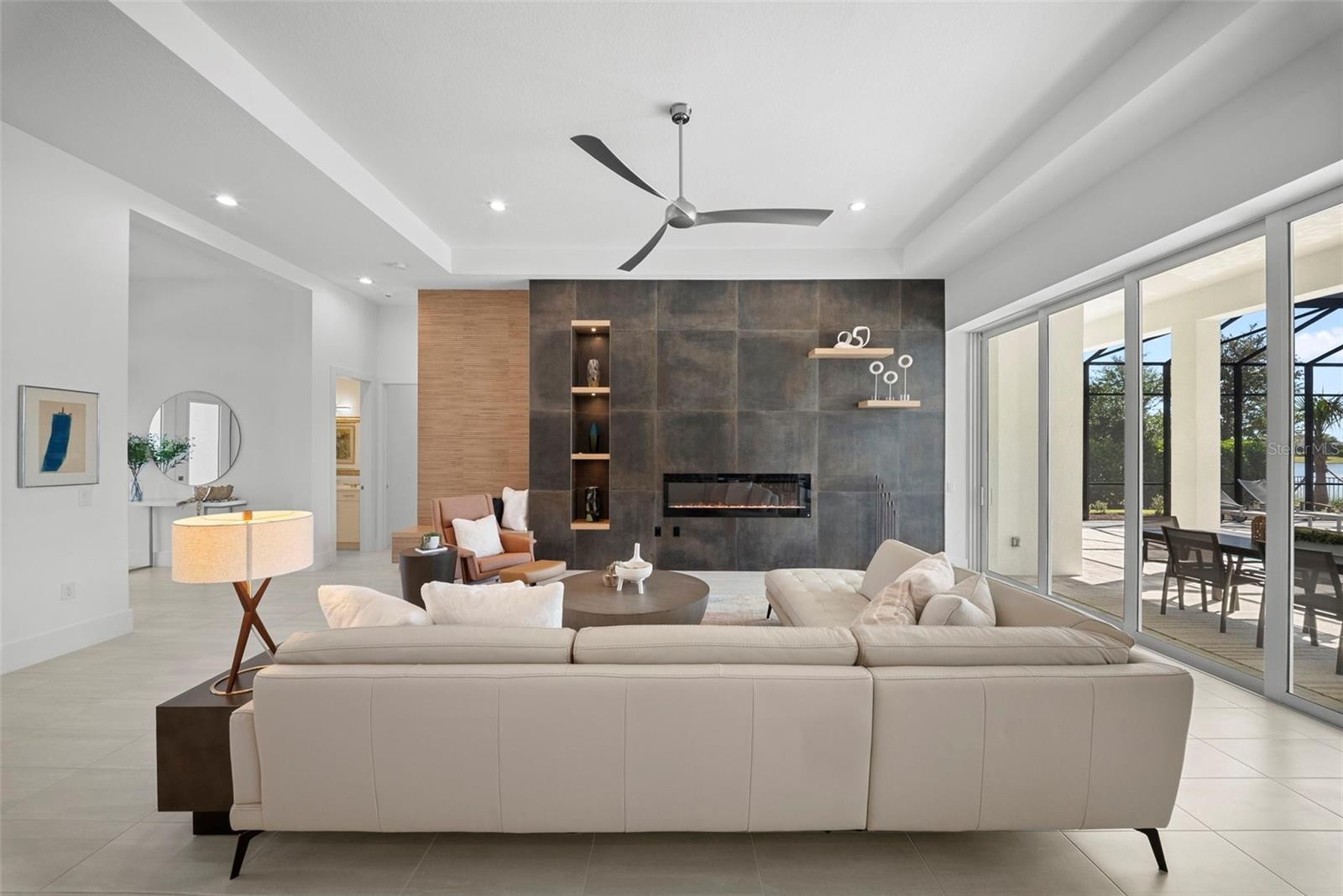 Welcome to 16826 Clearlake Avenue, an extraordinary residence nestled within the prestigious, gated community of The Lake Club in Lakewood Ranch — where refined luxury and modern design reach new heights. Built in 2020 and dramatically enhanced through a stunning series of renovations, this one-of-a-kind masterpiece stands apart from every other home in The Lake Club. From the moment you enter the foyer, the wow factor is undeniable. Soaring 12- to 13-foot ceilings in the principal rooms create an immediate sense of grandeur, while the dramatic 10-foot double sliding glass doors frame a breathtaking panorama of the resort-style pool and spa, lush landscaping, and serene water views beyond — a living work of art that greets you every single day. The open-concept kitchen, living, and dining areas have been meticulously reimagined with no detail overlooked. Every surface is finished in exquisite quartz, all light fixtures have been thoughtfully upgraded, and the primary bedroom and living spaces reflect a level of sophistication rarely found in any market. Retreat to the primary suite, a true sanctuary where elegance meets tranquility. Gorgeous wide-plank blonde engineered hardwood floors flow through all the bedrooms, adding warmth and understated sophistication to every private space. A private walkout opens directly to the lanai and pool area, where sweeping water views create a serene and indulgent backdrop — whether you're starting your morning with a quiet cup of coffee or winding down at the end of a perfect Florida day. This exceptional home features 4 bedrooms, 4.5 bathrooms, and a private office. The fourth bedroom has been thoughtfully transformed into a sophisticated media room, complete with its own walkout to the pool — ideal for movie nights or entertaining guests in style. A spacious 3-car garage and a fully fenced backyard provide both practicality and privacy. Step outside to your personal resort — an expansive lanai complete with a stylish pool and spa, elegant outdoor living and dining areas, a fully equipped outdoor kitchen with island, and a rare climate-controlled storage room accessible directly from the lanai. Designed for those who demand the very best, every inch of this home has been curated for the discerning buyer. Peace of mind comes standard with a whole-home Generac generator and surge protection, ensuring uninterrupted comfort regardless of the season. Beyond your private retreat, The Lake Club delivers an unrivaled lifestyle with its grand Clubhouse featuring a restaurant, bar, fitness center, and spa services, plus two resort-style pools, tennis and pickleball courts, a half-court basketball court, a dog park, and miles of beautifully landscaped walking paths. There is simply nothing else like this in The Lake Club. Come fall in love with this masterpiece and begin living life superbly.