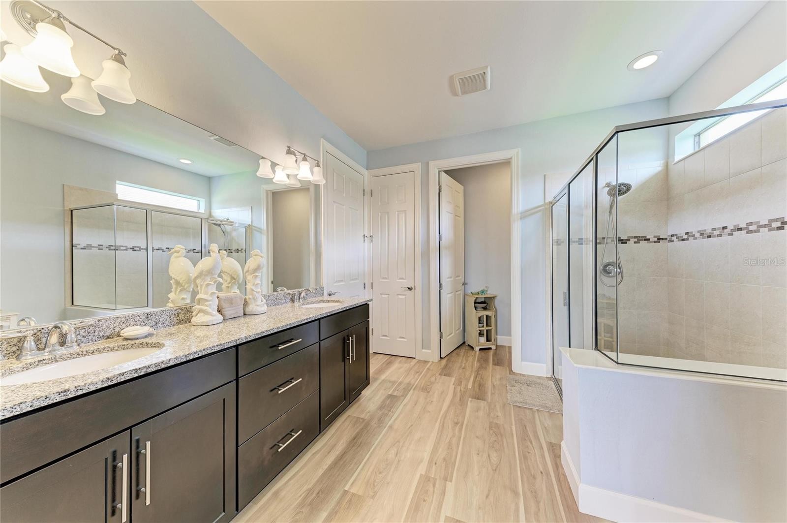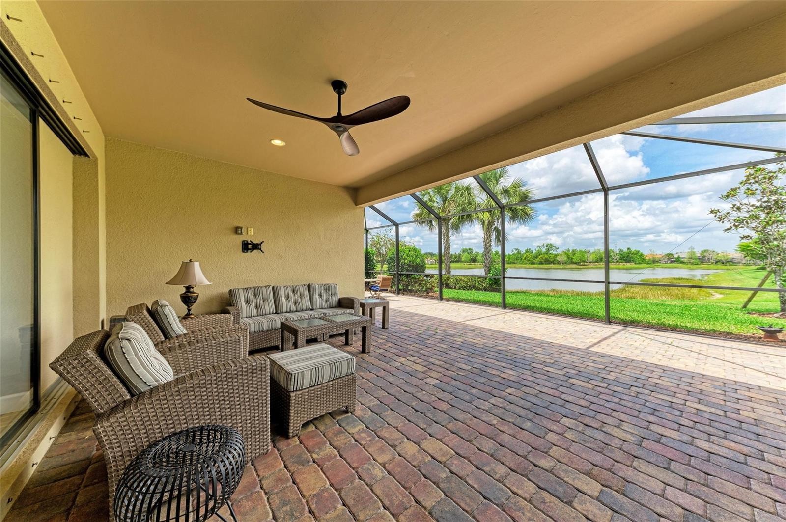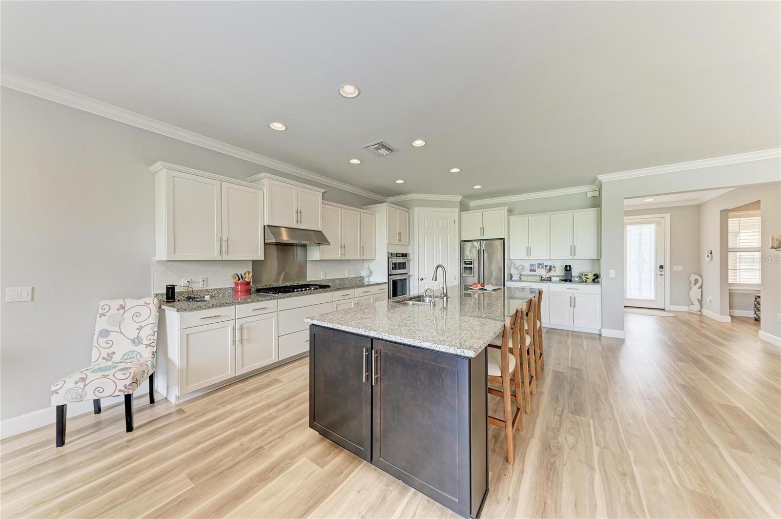This Exceptional Pinnacle residence presents a masterful blend of sophistication, Premier location, and effortless lifestyle in this 55+ Del Webb community. Perfectly situated on a tranquil and very private cul-de-sac with north/south exposure, this home enjoys a prized waterfront setting. Spanning 2,488 square feet, this impeccably appointed Smart home with a WHOLE HOUSE GENERATOR showcases an open-concept design curated for both refined living and elegant entertaining. From the moment of arrival, its striking curb appeal introduces the elevated finishes and thoughtful details found throughout. A desirable split floor plan offers 3 spacious bedrooms, 3 beautifully appointed bathrooms, and a versatile den—ideal for a private office, library, or additional guest space. Luxury vinyl plank flooring flows seamlessly throughout, complemented by crown molding and substantial five-inch baseboards, creating a timeless and cohesive aesthetics. At the heart of the home, the chef’s kitchen is both stunning and functional, featuring an expansive center island, granite countertops, and premium KitchenAid stainless steel appliances, including a five-burner gas cooktop, built-in oven, and microwave. The kitchen opens effortlessly to the grand living and dining areas, forming an inviting space designed for gathering and entertaining. Pocketing sliding glass doors dissolve the boundary between indoors and out, revealing an extended lanai that captures serene water views—an idyllic setting for morning coffee or sunset evenings. The owner’s suite is a true sanctuary, distinguished by a tray ceiling, designer accent wall, and a spa-inspired ensuite. Indulge in dual vanities, an oversized walk-in shower, an expansive walk-in closet, and refined finishes that evoke a sense of everyday luxury. Two additional guest suites with large guest closets —one with its own private ensuite—offer comfort and privacy for visitors. The well-appointed laundry room enhances functionality with custom wood cabinetry, a utility sink, and generous workspace. Extended 3-car garage with a four-foot extension, epoxy-coated floors. Seamlessly blending elegance, comfort, and modern convenience, this remarkable residence offers an unparalleled opportunity to experience the very best of the Del Webb lifestyle in Lakewood Ranch. Enjoy Pickleball, resort style pool, Gym, classes, Restaurant, a Full time director for activities all day everyday !! Minutes to Waterside, UTC mall, and many shopping and Restaurant opportunities. Just a short drive to the worlds most beautiful beaches. Seller will pay 5,000 towards closing cost expires 4/30/2026